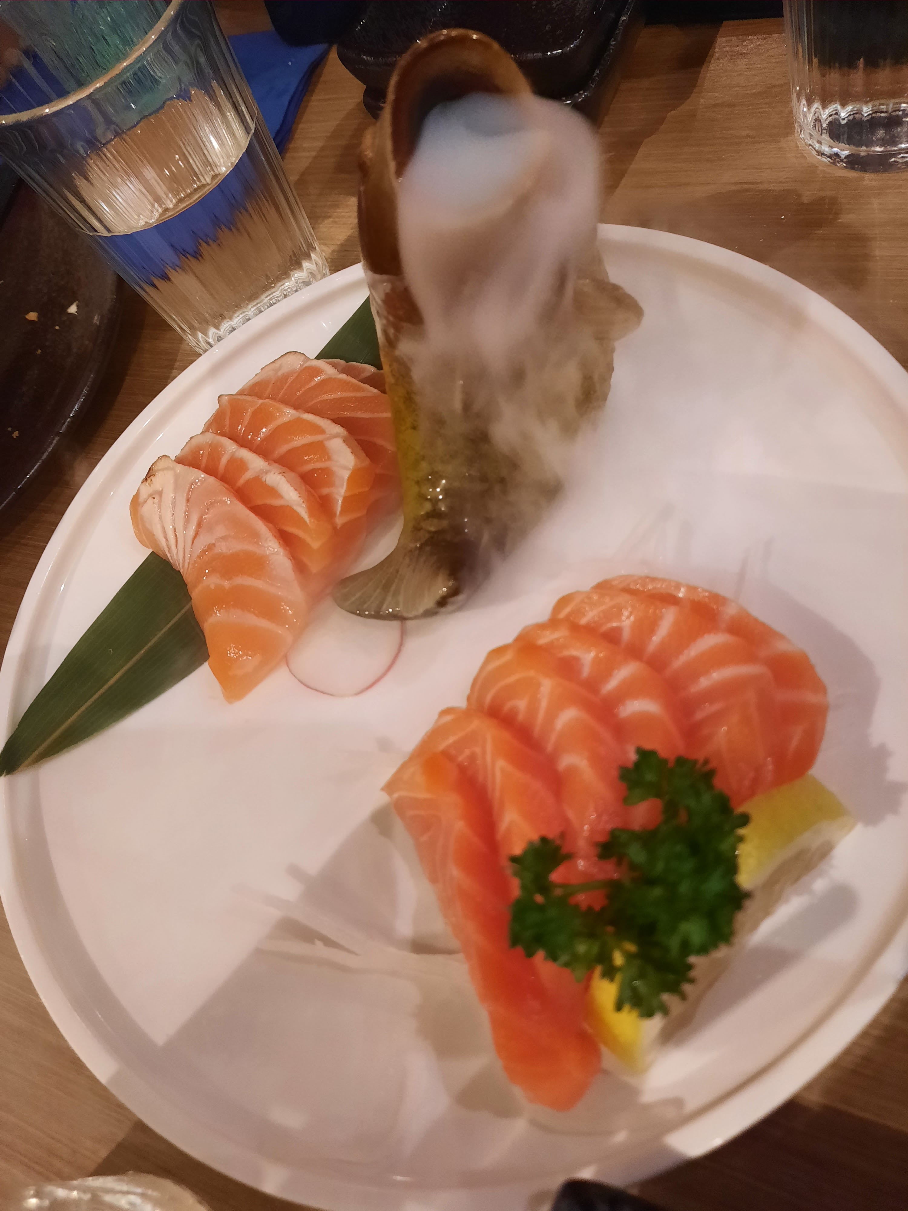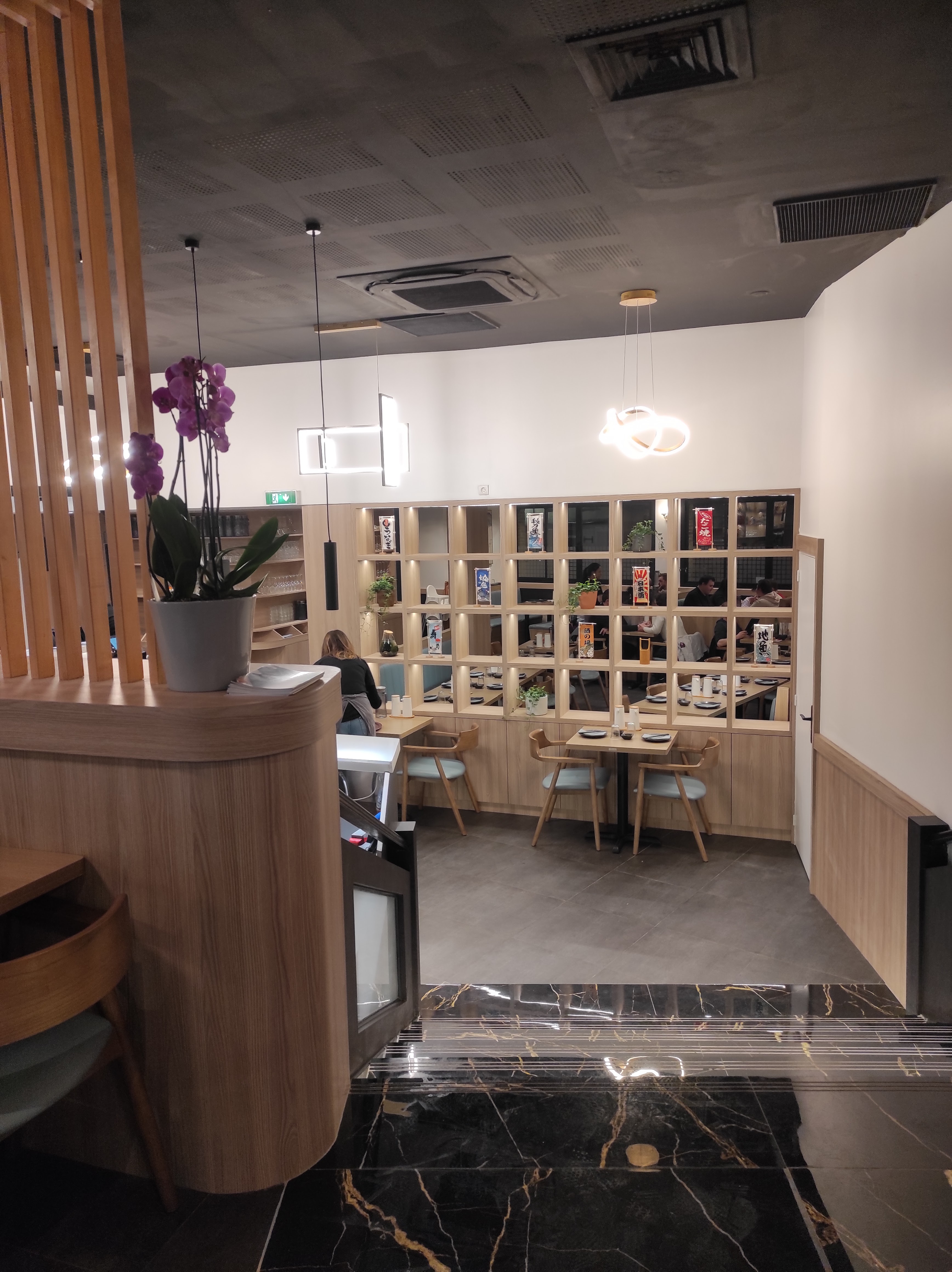 Incroyable. A propos de la nourriture, les plats sont d'une excellente qualité. Le concept du restaurant à évolué vers le numérique, ce qui vous permet de commander a l'aide d'une tablette depuis votre table; Formule de cinq services avec cinq produits par personne. La carte à évolué également, puisqu'elle se retrouve étoffée de nombreux mets et plats supplémentaires. La presentation du menu est assez intuitive, chaque produit est accompagné d'une photo et de differents logos pour signaler la présence de potentiels allergènes, en plus de produits veggie pour ceux qui le souhaitent. Jamais je n'ai vu un si large choix au niveau des sushis, makis et rolls dans un restaurant japonais. Je me suis délécté des nems au poulet qui comptent parmis les meilleurs que j'ai pu goûter. Un bémol cependant sur les beignets de calamar et d'oignon qui, selon moi, manquent de garniture (ou alors trop de panure). Pour ce qui est du service, celui-ci est relativement rapide, et toujours avec le sourire. L'ensemble du personnel est avenant et poli, les serveurs et serveuses prennent le temps de vous mettre a votre aise et de répondre a vos questions. La salle à été revue pour un style chic mais épuré, et l'ambiance musicale est bien gérée: de la bonne musique est difusée a un volume tout à fait convenable. Au niveau des prix, il faut compter 16,90€ le midi et 24,90€ pour le soir et les weekends (formules évoquées ci-dessus) puis un supplément pour les boissons et desserts. Un peu plus cher donc que son prédecesseur, mais un prix en adéquation avec les services proposé et qui en vaut la peine. Ma seule hâte est désormais d'y retourner afin de m'essayer au reste de la carte.