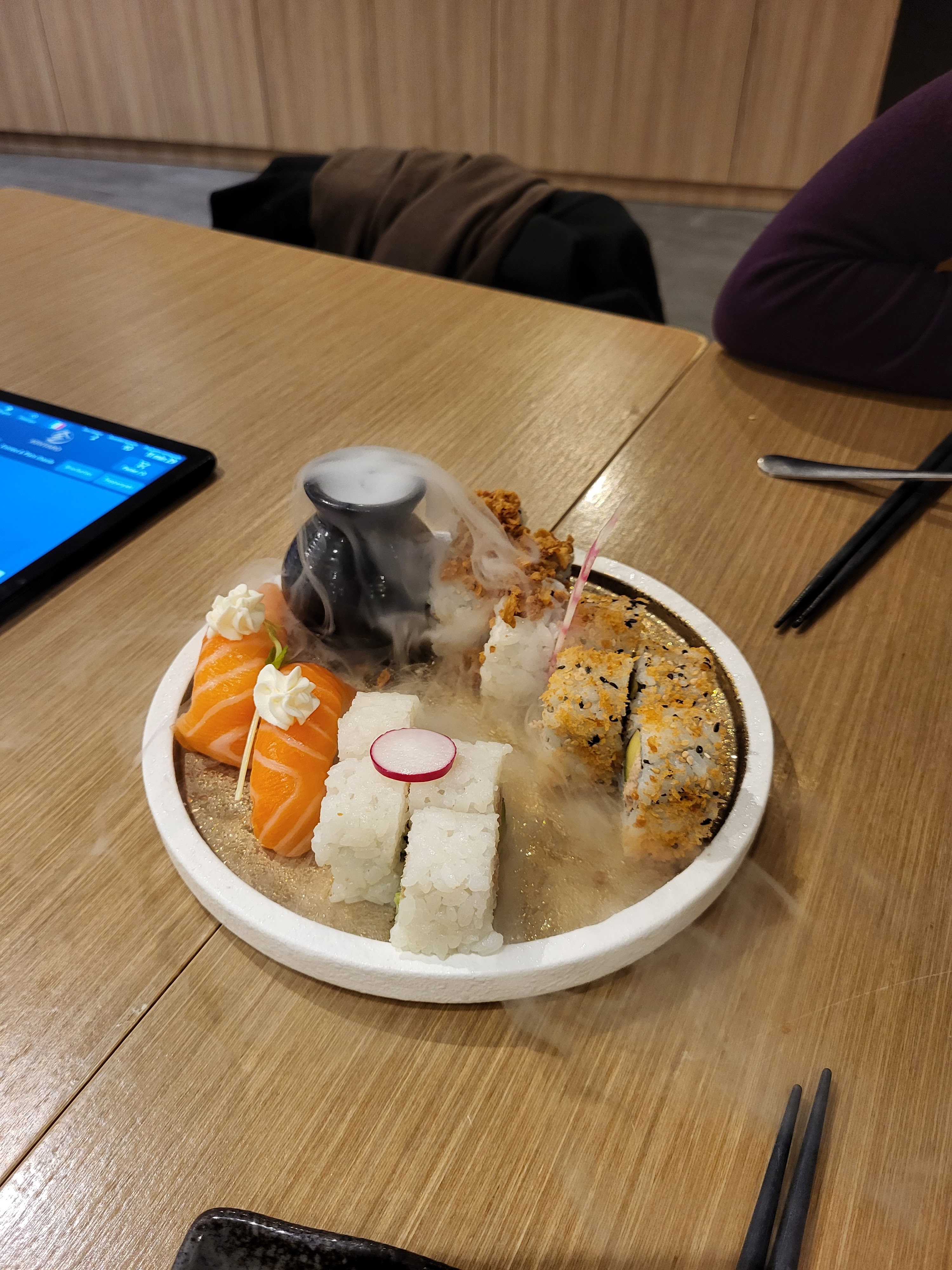 Restaurant de sushi sympa, choix qui changent de l'ordinaire, prix un peu élevé le week-end et soir mais très grandes quantités