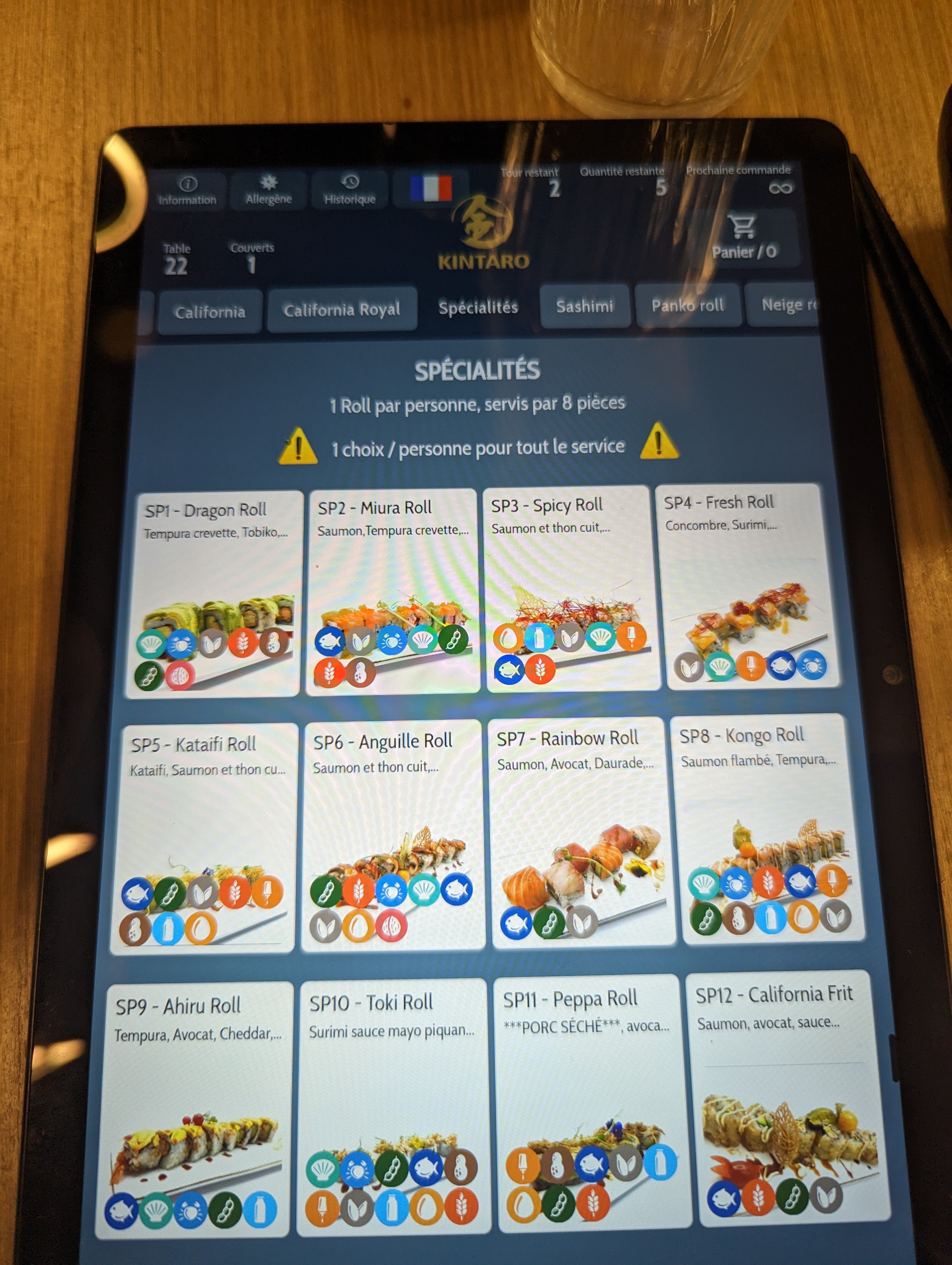De loin le meilleur restaurant japonais à volonté sur Amiens. Service sur tablette numérique : - 5 commandes par personne - 5 plats par commande - 15 minutes entre chaque commande = 25 plats en tout Croyez moi je suis un bon mangeur et je ne commande en général que 3 fois. Prix midi 16€90 Prix soir et week-end 24€90 Prix très abordable compte tenu de la qualité et de la quantité servie. Le personnel est très bien formé. Le service est RAPIDE ! Très important lorsqu'il y a du monde, et en général je recommande aussitôt que les 15 minutes sont passées donc timing parfait. Je viens y manger depuis leur ouverture, chez Oki**** je me voyais refoulé parce que je venais manger seul, chez Kintaro j'ai TOUJOURS une table pour manger ! 🧡 Edit : Je vis maintenant dans sur Metz... quelle déprime ! Rien à la hauteur du Kintaro ! Pour celle qui se plaind de ne pas pouvoir emporter de doggy bag, dans un restaurant à volonté... La lumière est éteinte à tous les étages on dirait... Pour celui qui se plaind d'avoir eu une intoxication alimentaire, vous ne vous rendez pas compte de la chance que vous avez d'avoir ce restaurant... Les gens se plaignent pour avoir des remises, tarifs réduits, ou juste parce qu'ils n'ont rien d'autre à faire...