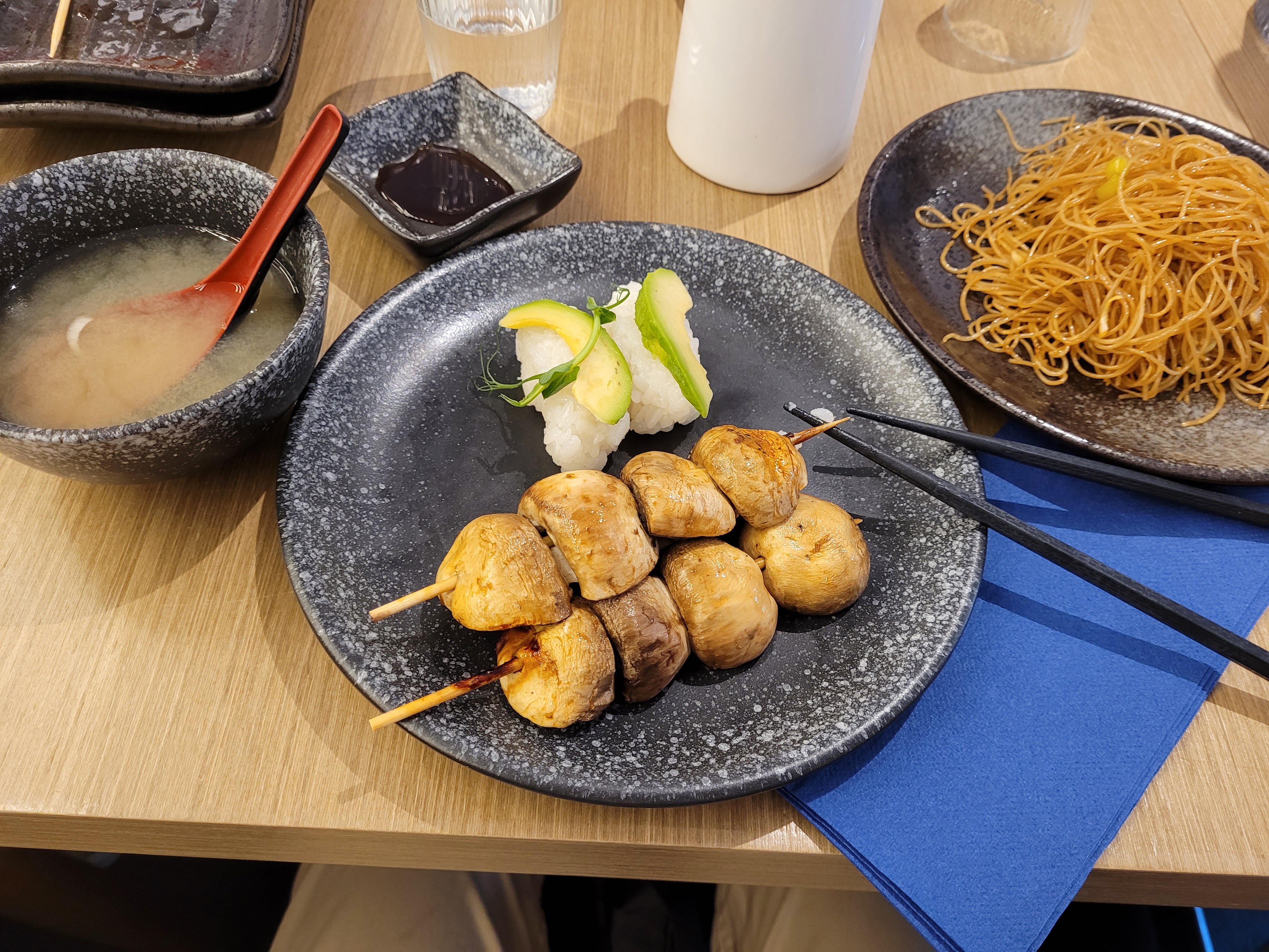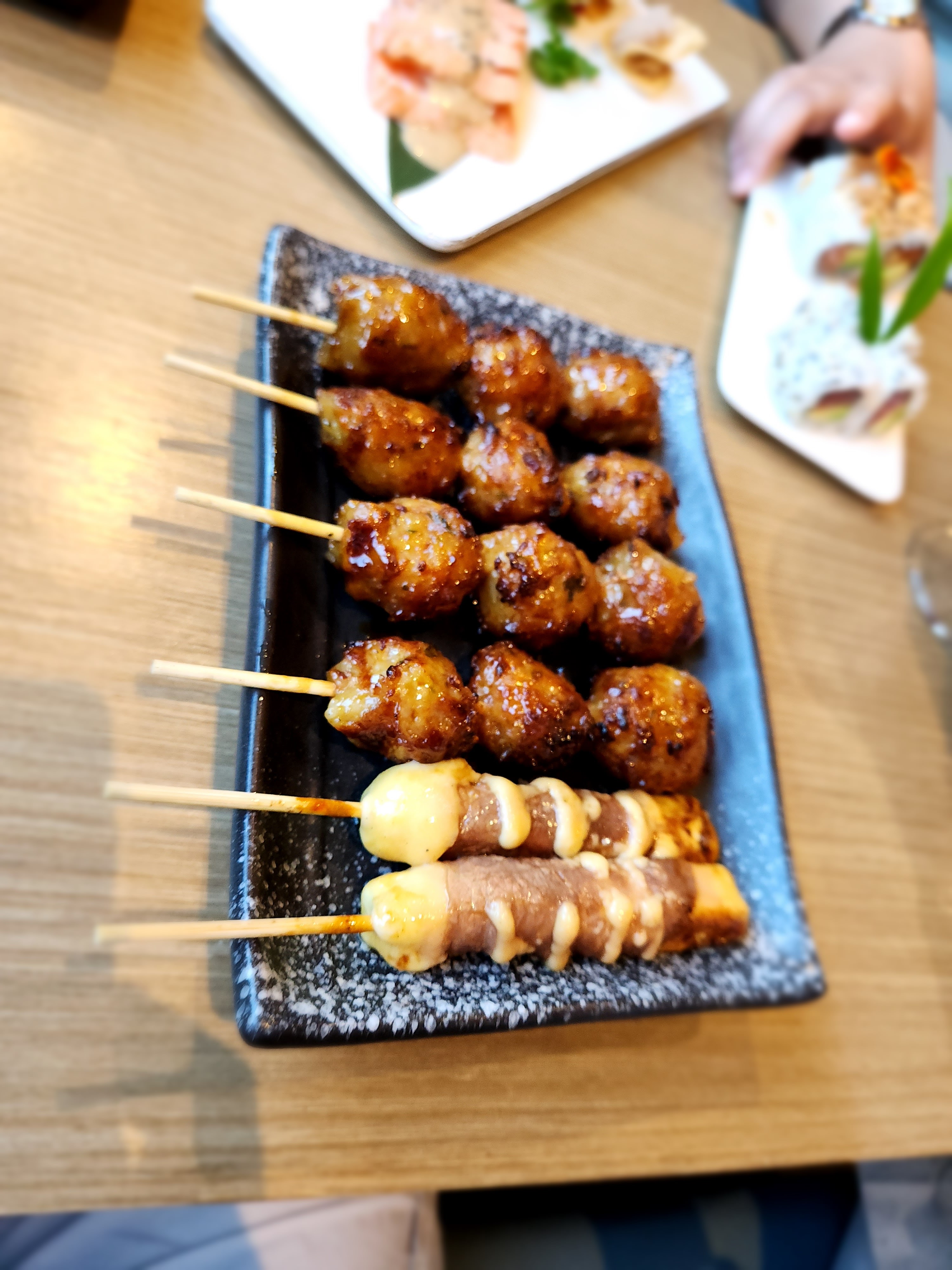 Premièrement, le menu est plus cher que dans tous les autres restaurants japonais : 25€/pers. Pas de souci si la qualité ET la QUANTITÉ sont au rendez-vous. Or, ici, contrairement aux autres restaurants concurrents, nous sommes très limités en termes de quantité. Je m’explique : Nous avons le droit à 5 plats/personne/tour. Prenons l’exemple des brochettes de bœuf au fromage, servies par 2, qui comptent pour un plat. Si vous en voulez 3, cela compte pour 3 plats. Admettons que vous preniez en plus 2 sortes de sushi (4 pièces) et voilà, vous ne pouvez commander guère plus. Donc, suis-je censé manger 6 minuscules brochettes et 4 sushis ? Puis attendre 15mn de plus (imposé bien sûr) pour commander au second tour ? Sans parler du fait qu’on doit faire l’impasse sur énormément de produits, en raison des quantités limitées. De plus, les tables de deux personnes dans le fond du restaurant sont juste imbuvables. Vous vous retrouvez au milieu d’un étroit couloir, collé aux autres personnes derrière et sur le côté. Sans exagérer, j’ai à peine pu reculer ma chaise pour m’assoir… Malheureusement, je ne recommande pas du tout.