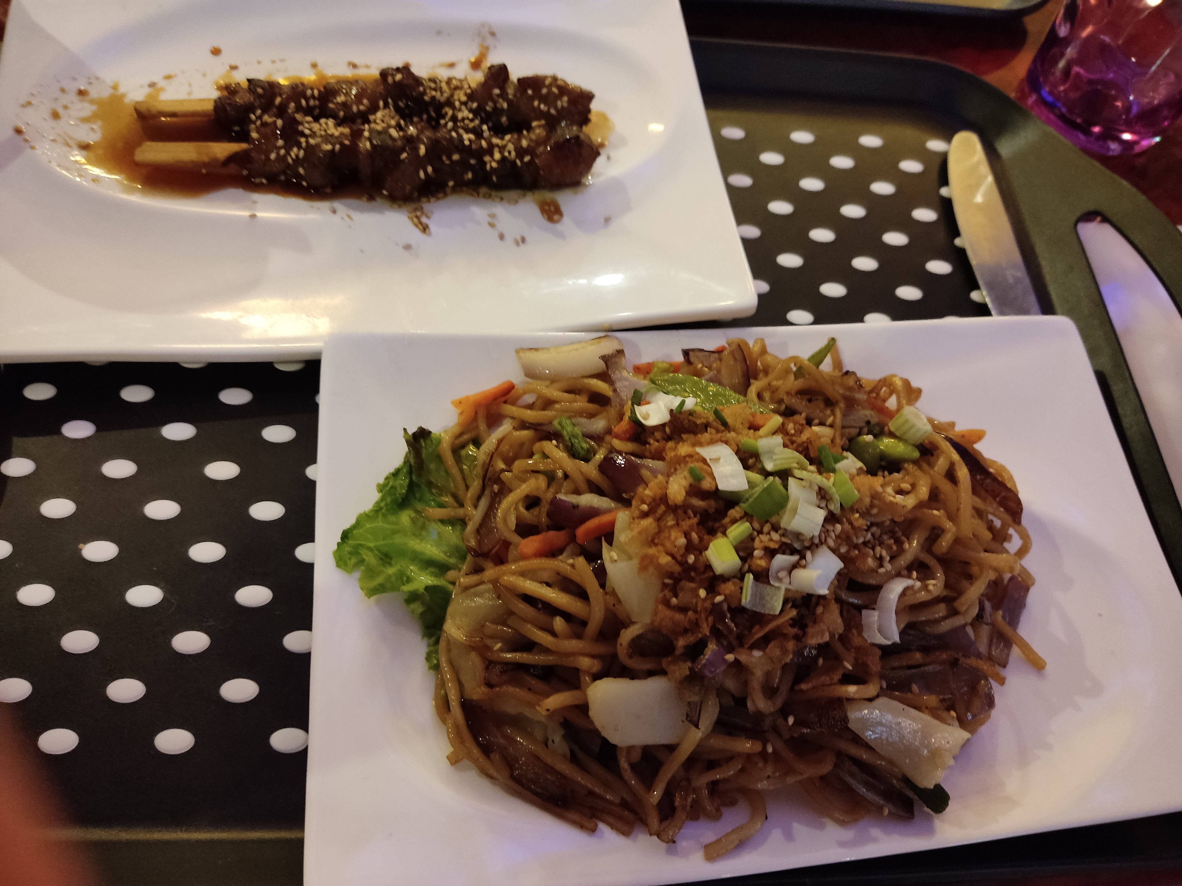 Plat super bon! Les sushis sont excellents, le riz, les nouilles, les brochettes également. Les nems au chocolat sont très bonnes. Prix global un peu cher. Personnel sympathique. Possibilité de commander sur les plateformes ou d'acheter sur place pour emporter ou manger sur place sur les tables du restaurant à côté qui leur appartienne aussi.