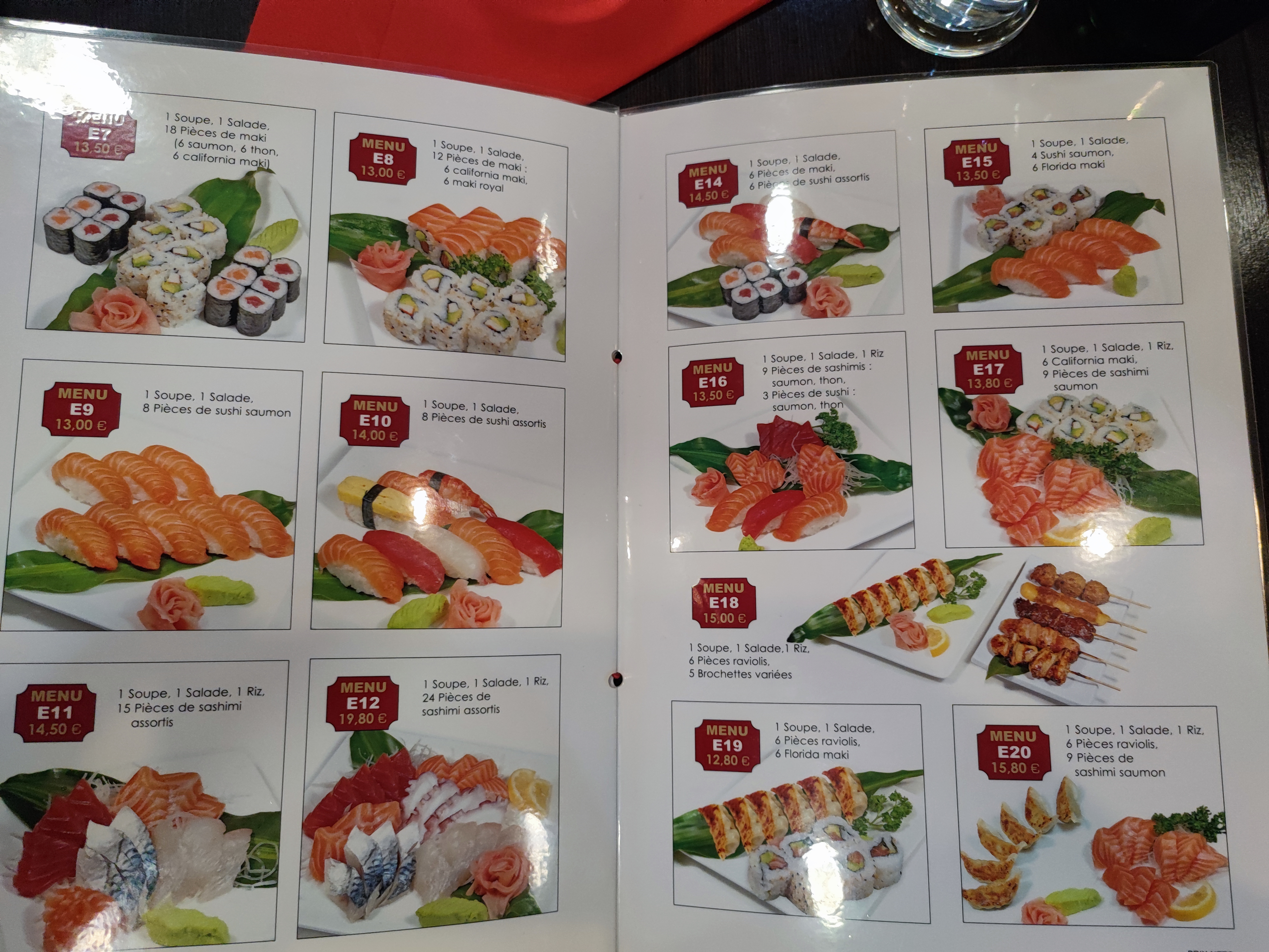 Après avoir lu les commentaires je suis déçu, Accueil très très timide, salle un peu désuète Prenant des brochettes de poissons je suis dubitatif sur la fraîcheur car l’odeur du thon était inquiétante... Bref, moment décevant, il y mieux sur Auxerre En spécialités japonaises, passez votre chemin.