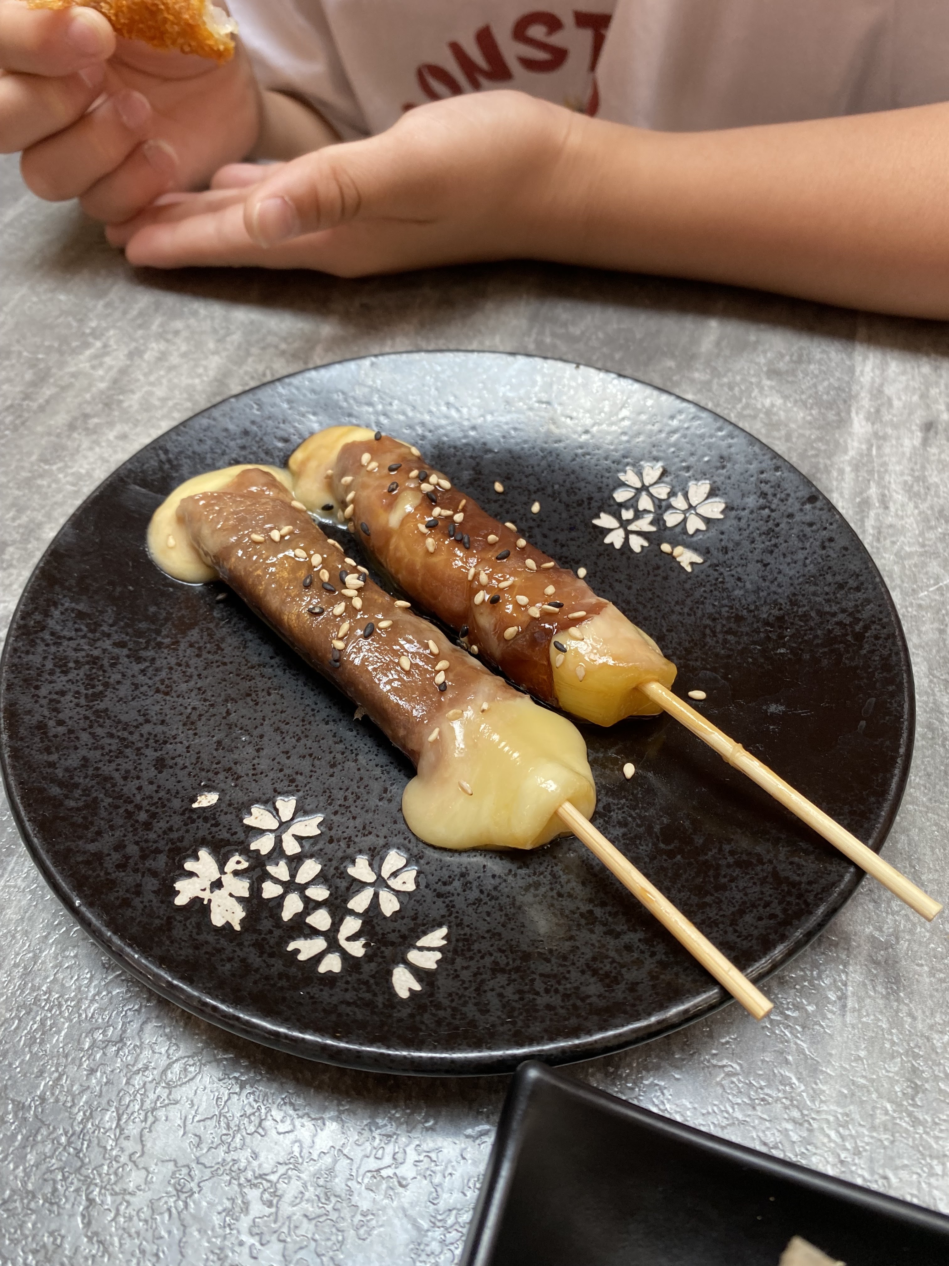 C'est hyper bon ! Je n'ai jamais autant kiffé mes brochettes au fromage. Elles sont caramélisées et le fromage ne fait pas plastique. J'ai même mangé ma salade de chou, car elle ne baignait pas dans la sauce et en plus elle n'était pas sucrée. Par contre j'ai trouvé la soupe miso un peu trop salé. Je n'ai pas photographié mes plats mais j'aurais dû car il y a une jolie et simple présentation. Nous sommes allés sans réservation un midi mais apparemment il vaut mieux prévoir surtout si vous souhaitez manger sur le balcon sous les plantes avec comme pour compagnie 2 chats 😉