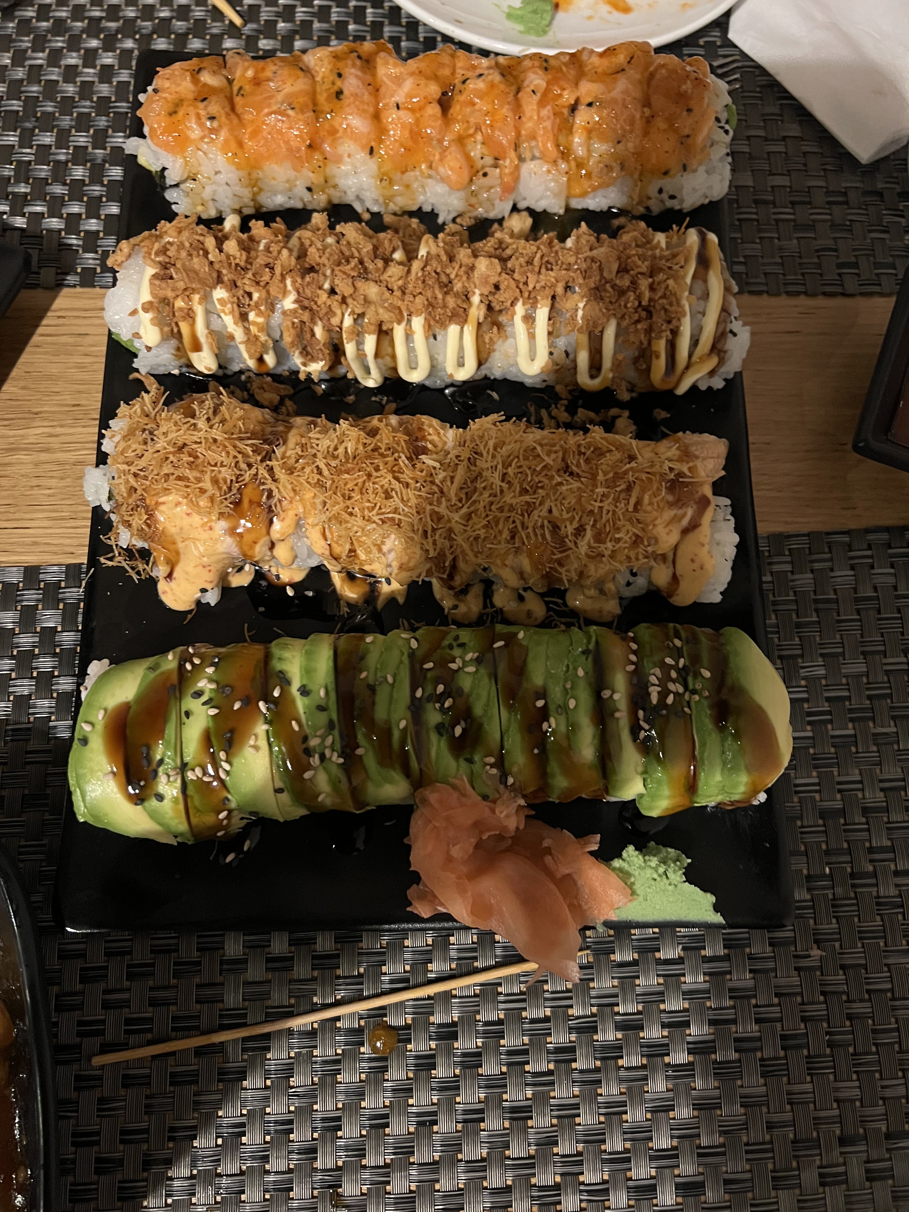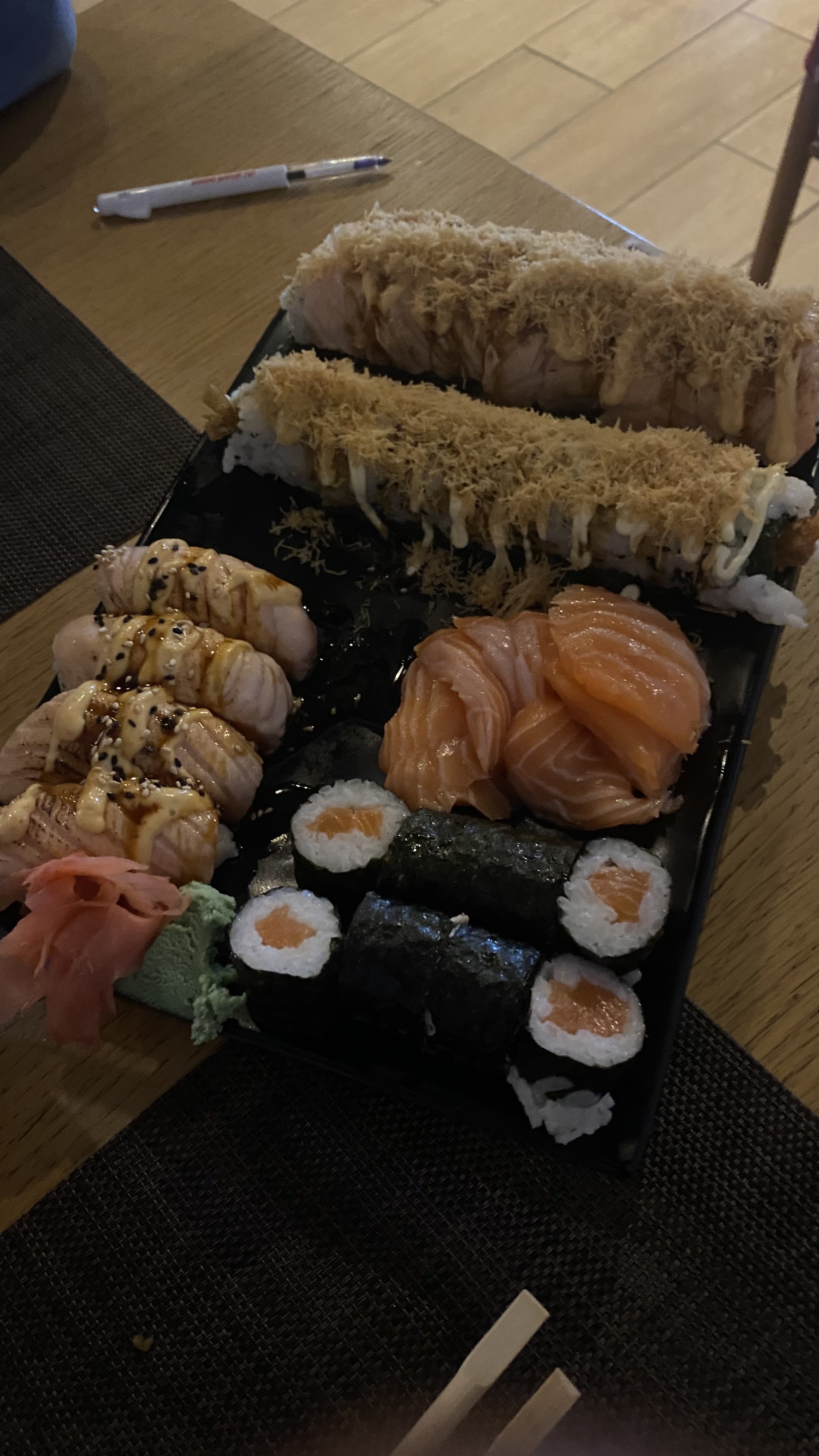 Adorant les sushis je voulais tenter l'expérience d'en commander dans un restaurant. Et franchement je ne suis pas déçue. Tout était très bon et j'ai encore plus adoré une nouveauté : sushis à la mangue. Excellent Je reviendrais avec grand plaisir de je conseille si vous souhaiter manger de bons sushis et choix divers.