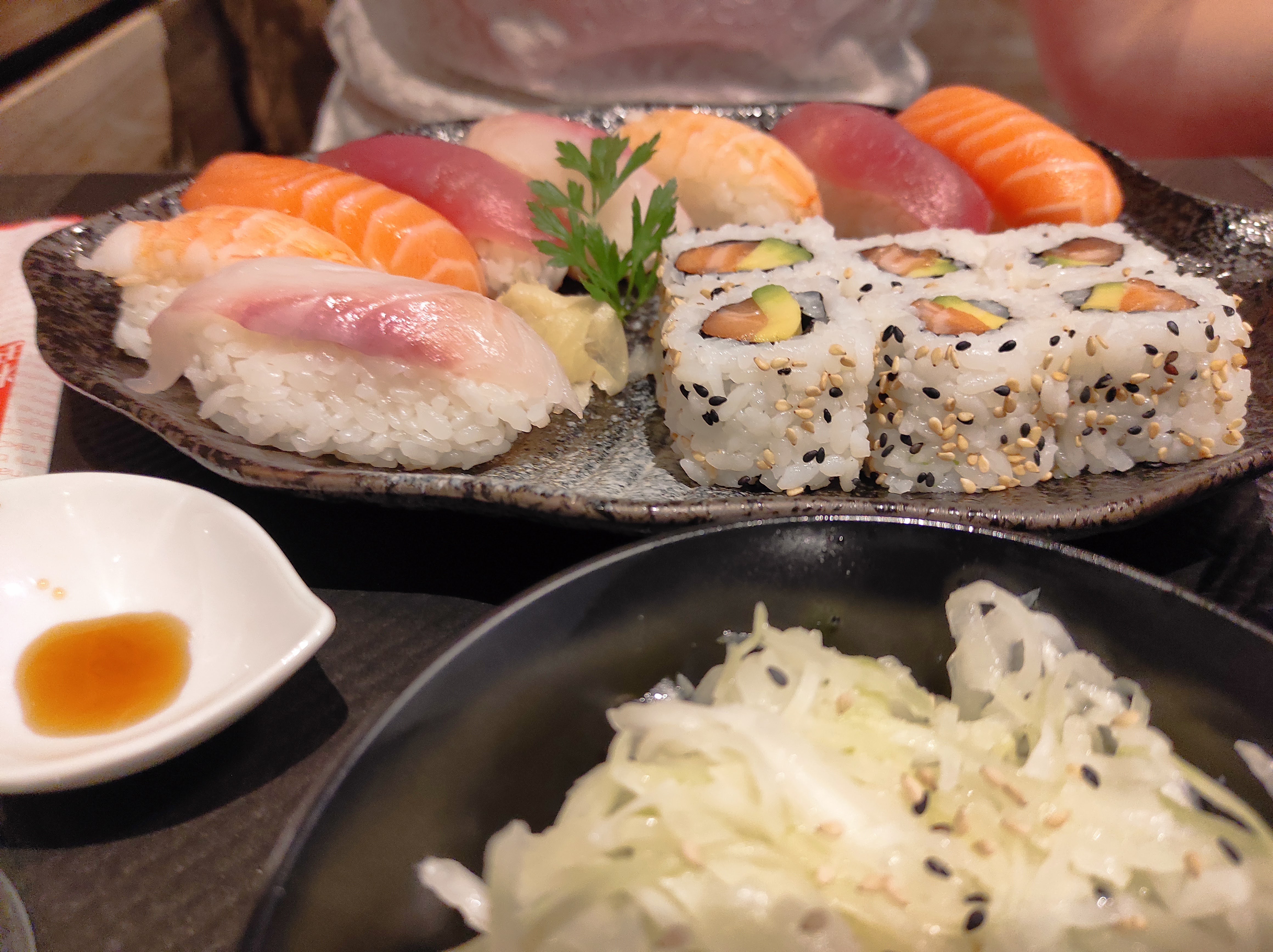 Les sushis (california rolls, saumon avocat et salmon rolls) n’étaient pas terribles. Le riz avait un goût spécial qui n’était pas agréable en bouche. Les nouilles poulet bœuf étaient bonnes mais pas exceptionnelles d’où la note. Globalement ça peut aller pour depanner