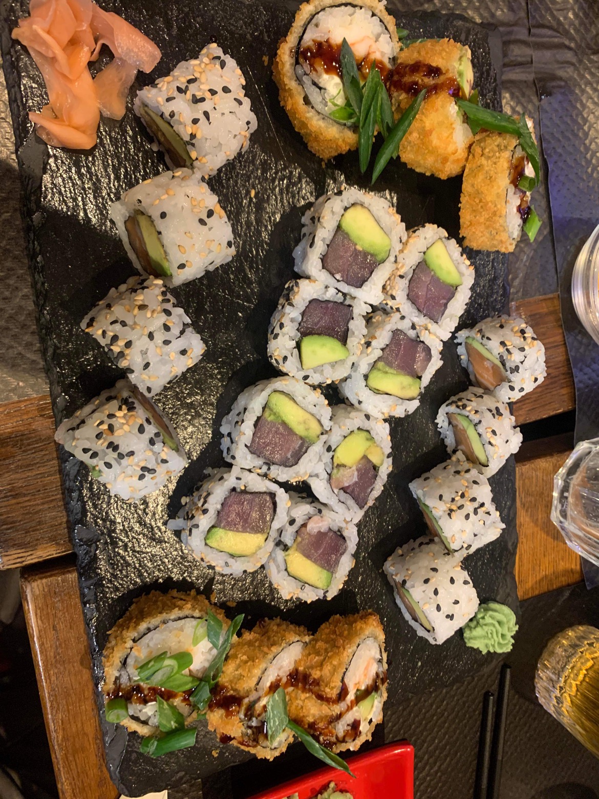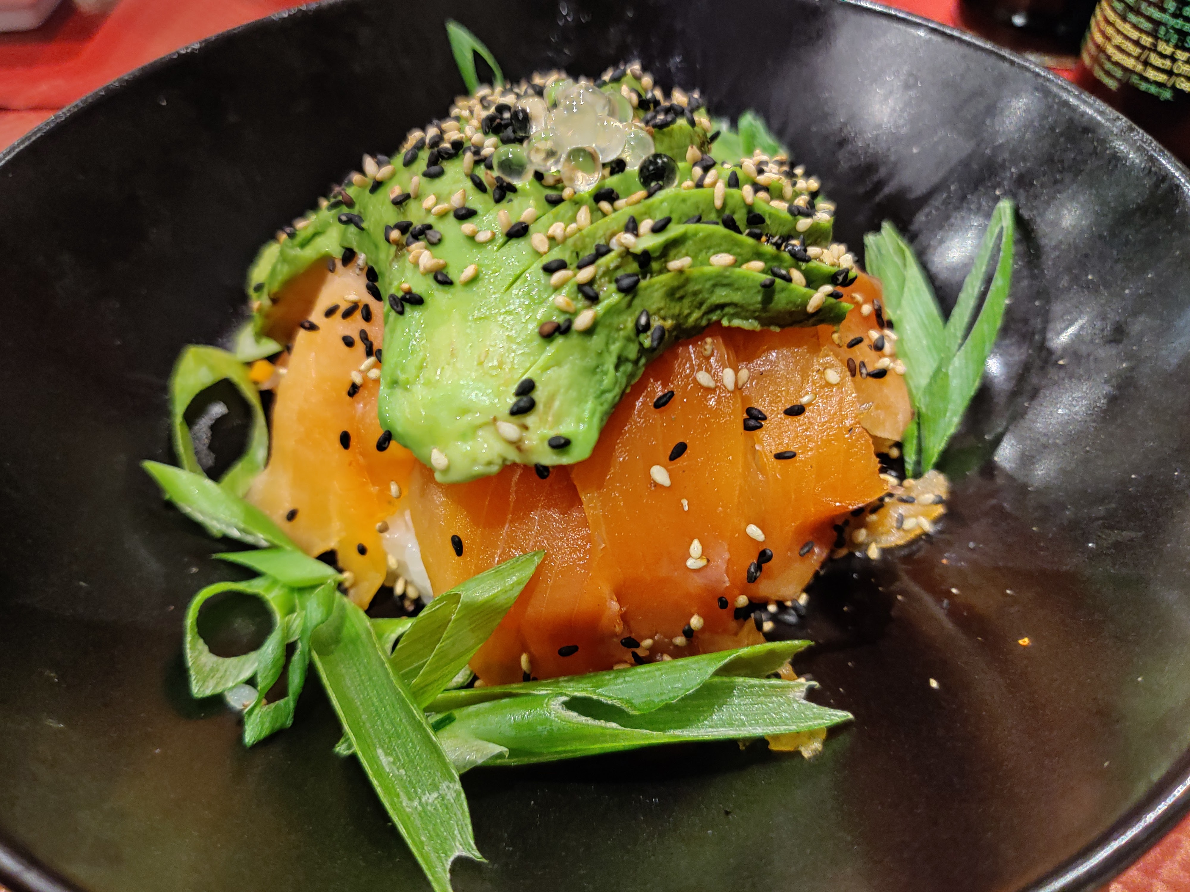 Ersatz de cuisine asiatique. Sushi saumon avocat avec des avocats durs absolument pas murs. Cuisine asiatique type français. Déçu