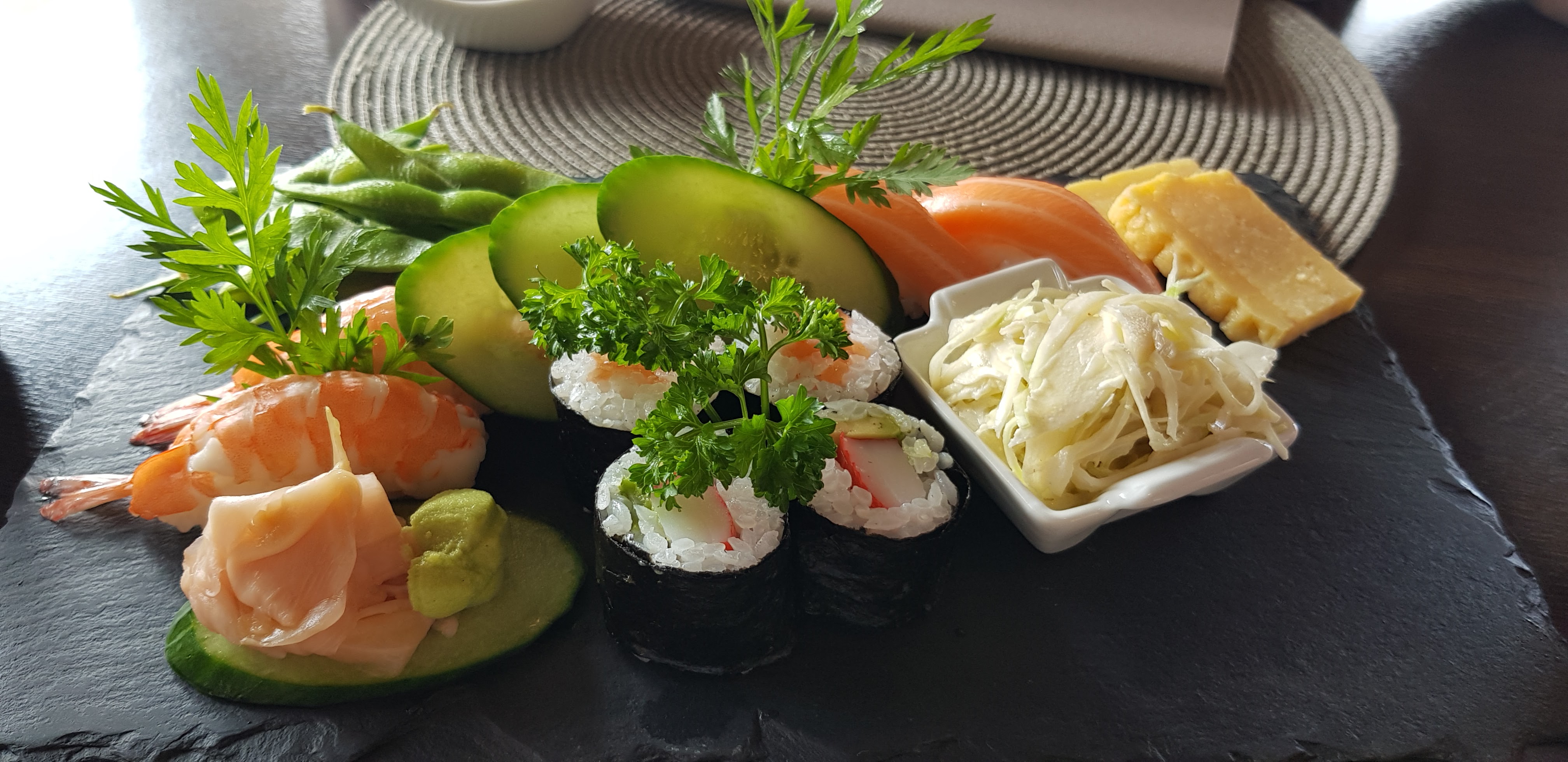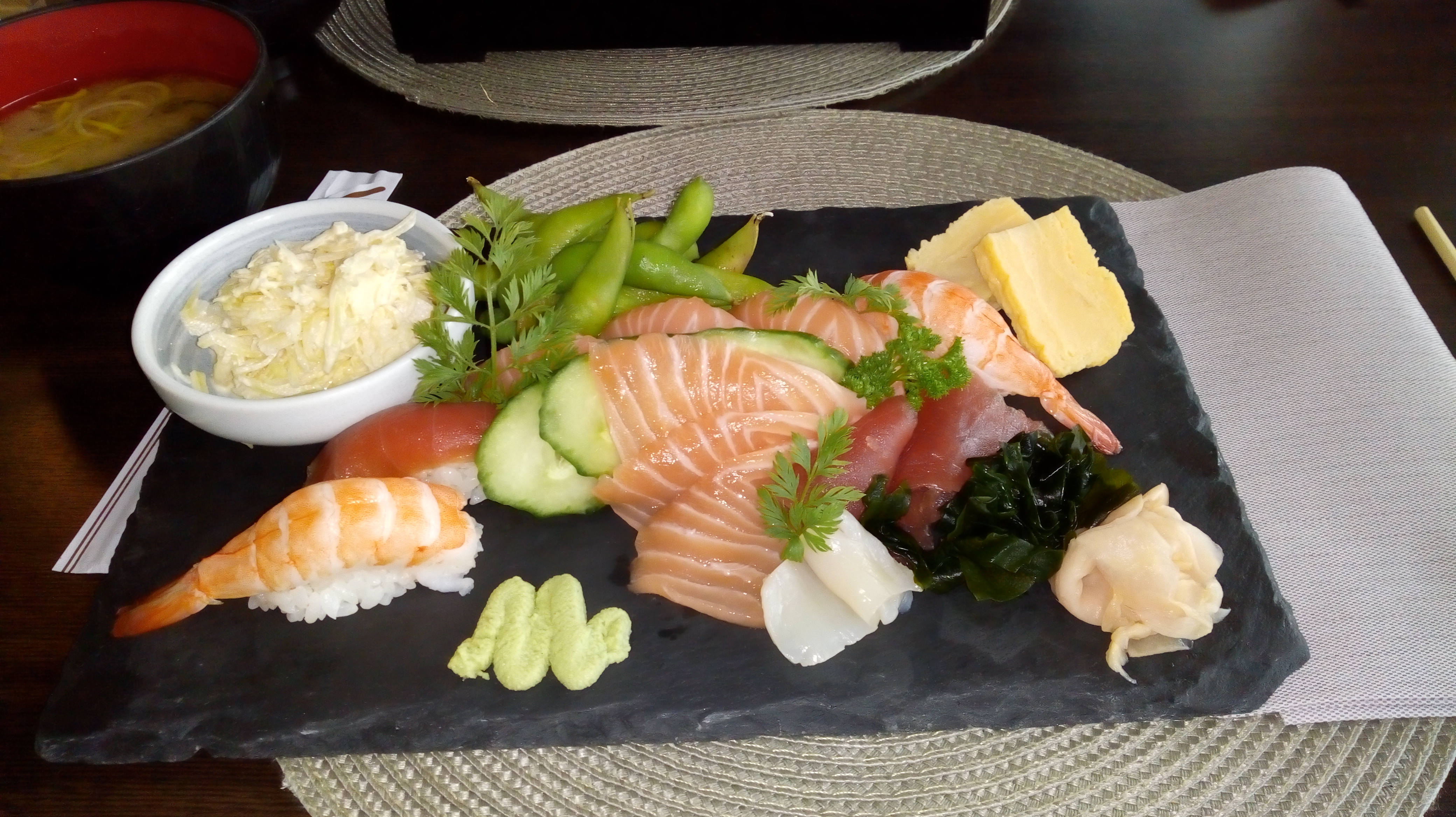 Bon restaurant japonais, mais je trouve un peu cher pour la qualité. Les accompagnements sont délicieux, comme la salade de choux ou l'omelette, mais les makis et sushis ne sont pas différenciables de certains buffets chinois.