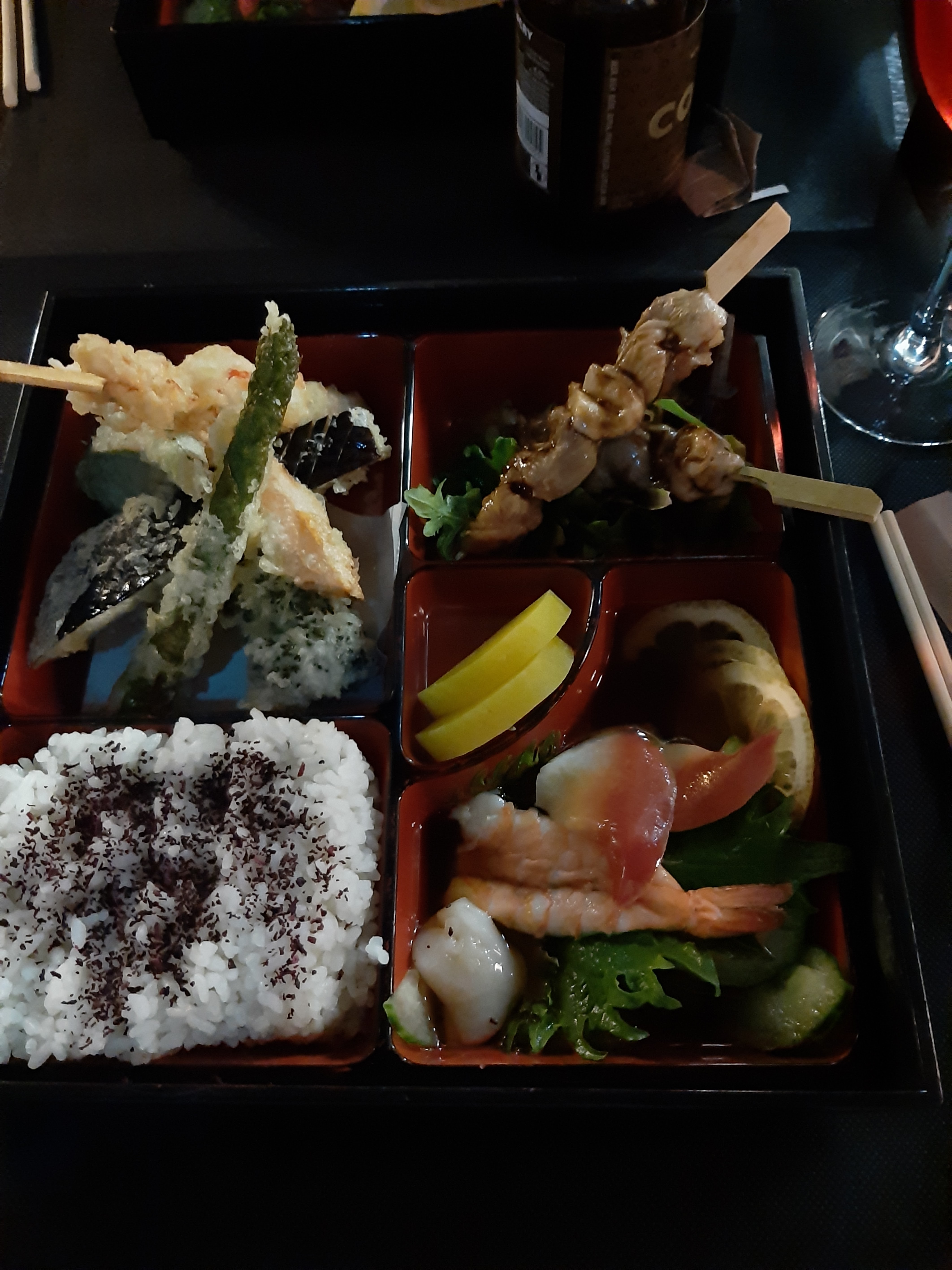 "Un vrai japonais (pour ce que ca veut dire), c'est pas non plus du high-end style kaiseki, etc. Assez classique dans le menu proposé, mais bien cuisiné/maitrisé et vaut largement son prix (surtout que les autres jap'/overrated-sushi/asian/buffet à la carte tout autour, quand on en sort, tout additionné, sont pas forcément cheap non plus par rapport à ce qui est proposé). Pour une première, j'irais clairement vers les bento."