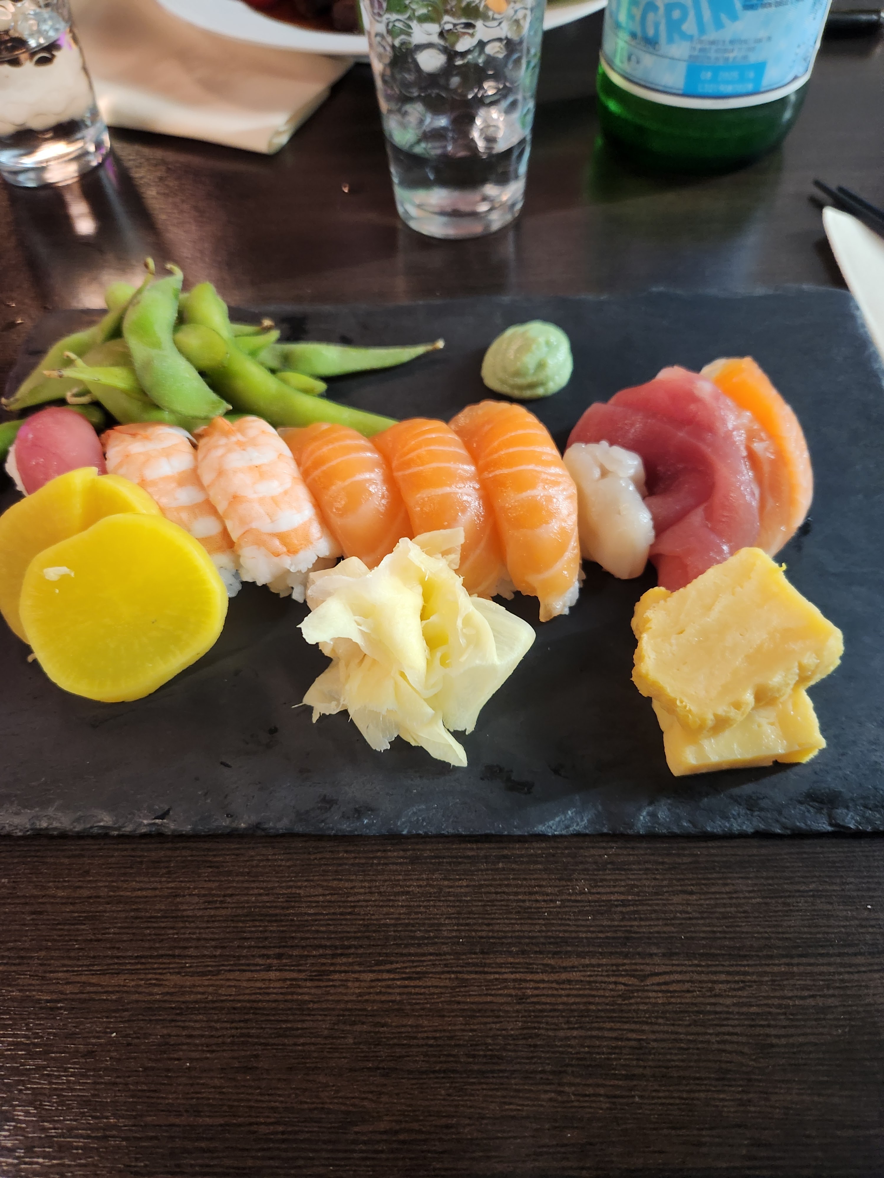 😑🙂 MOUAIS 😑😑 Un restaurant Japonais normal sans plus. 🙂😑On sent que la qualité est au rendez vous, le repas est bon, mais payer 32€ pour quelques légumes... c'est cher payé! 💰💰 Pour les sushis 🍣... tout était super froid 🥶et d'un gout normal comme un autre sushi standard. Aucunes innovations, ne serais-ce au niveau du goût, qu'au niveau de la présentation. 😞 La réception était neutre par une dame 😑 et le monsieur a relevé le niveau avec une ou deux petites blagues que l'on a apprécié 😆 mais nous avons senti que les habitués du restaurant ont le droit d'avoir un meilleur service. Bref, l'addition était la seule chose gastronomique de la soirée.