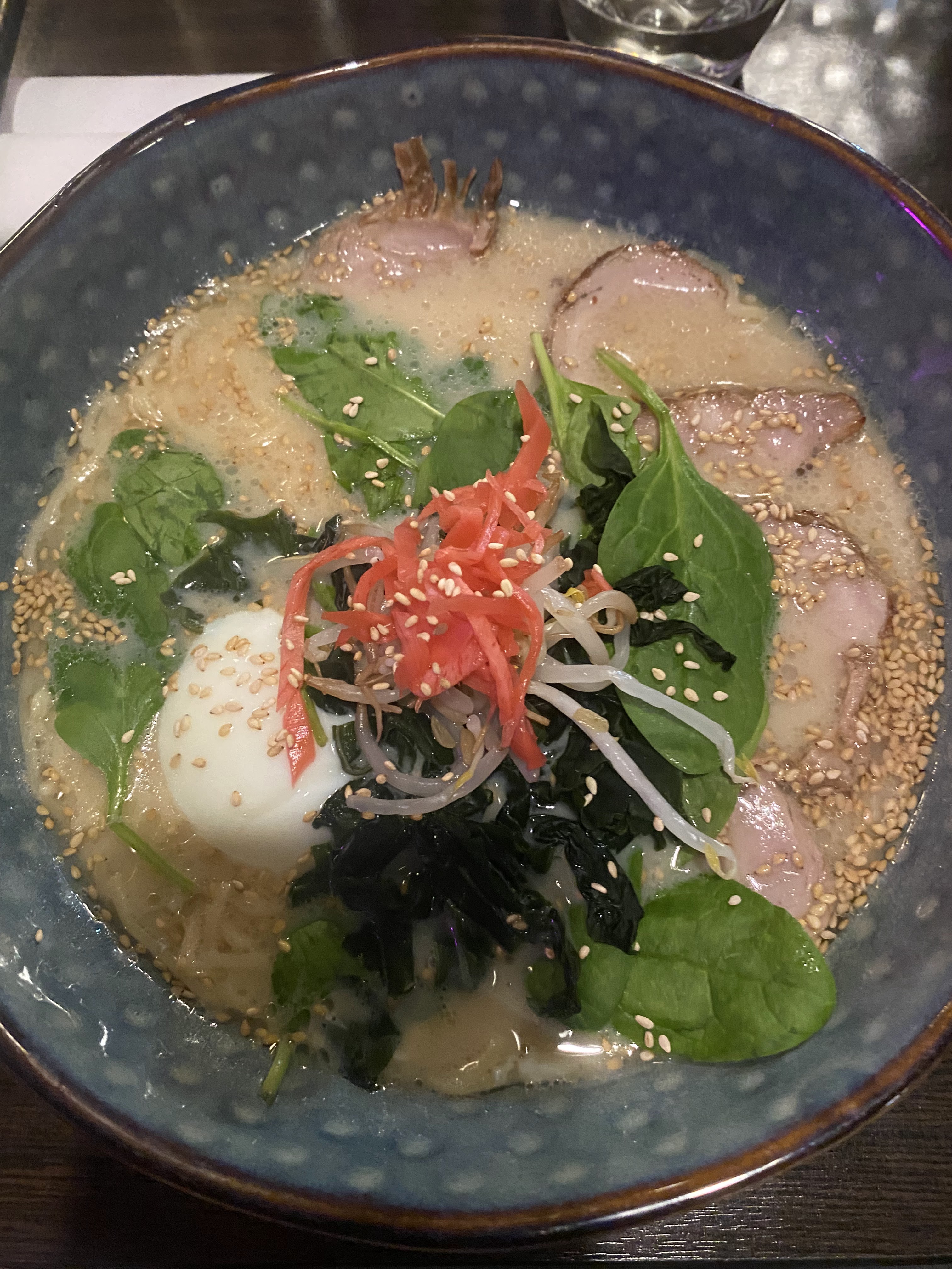 Je suis allé dans ce restaurant un vendredi soir, assez tôt dans la soirée. C'est quand même assez fréquenté mais l'ambiance est bonne. J'étais un peu déçu du ramen que j'avais pris. Il avait des points très positif et des points assez négatif. Les nouilles faisait très industriels et l'oeuf était noyé dans le ramen. Par contre le bouillon était très bon. La quantité de viande et la quantité globale était excellente.