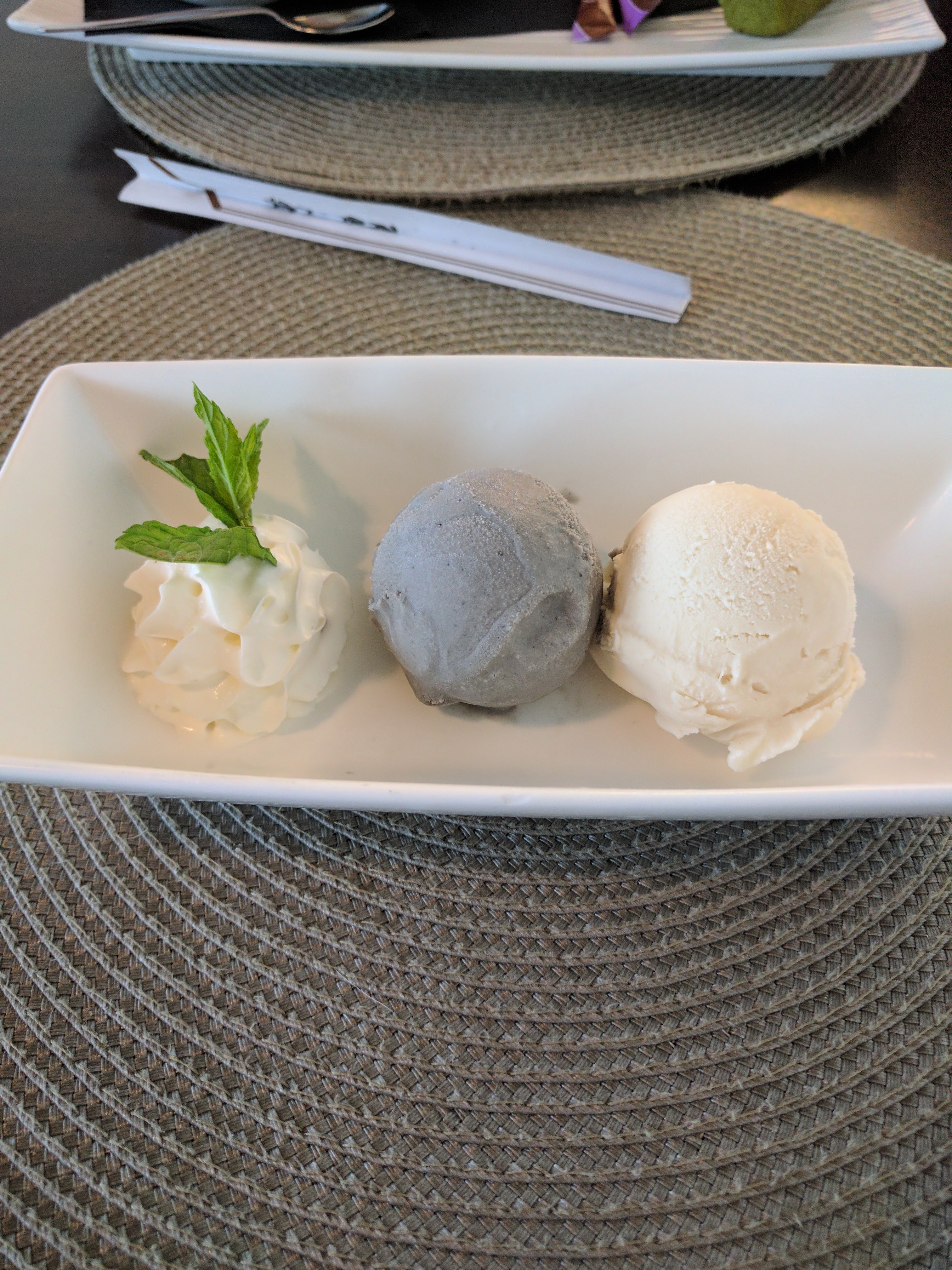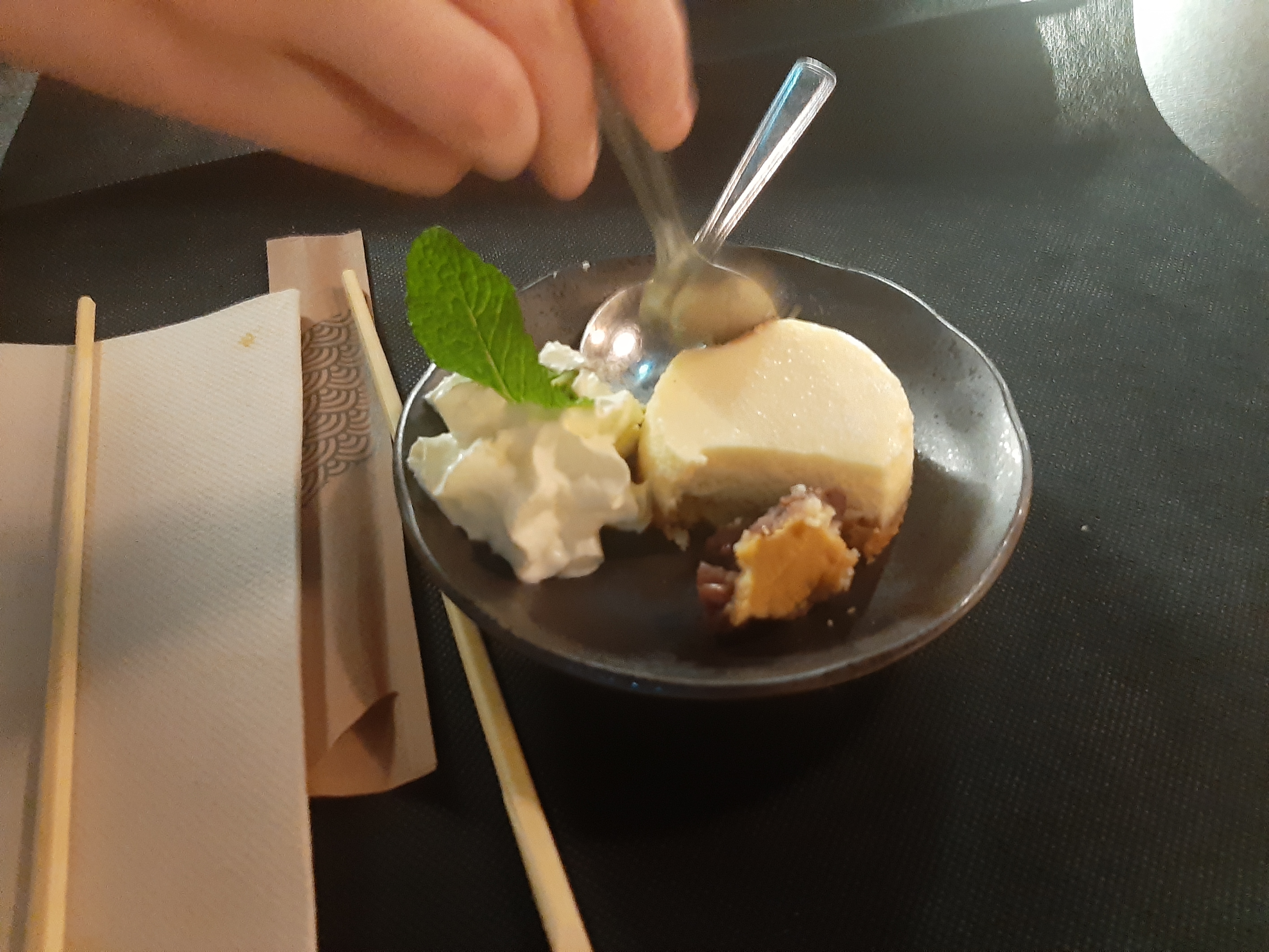 3 pauvres sushis dans l’assiette, nous avions encore faim avec mon compagnon, nous avons donc pris des dessert, qui se trouvaient être très décevants et tout aussi ridicules en terme de quantité. Restaurant à fuir. Cependant service agréable !