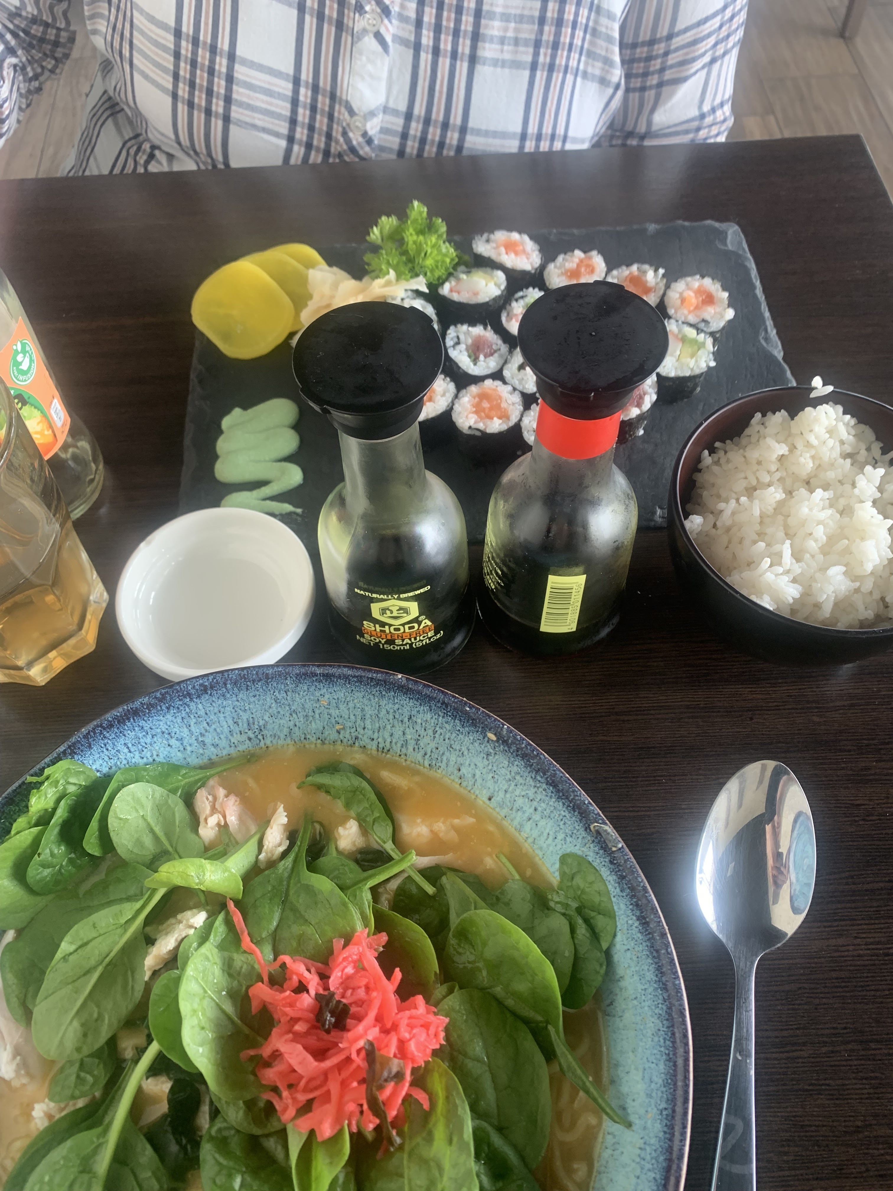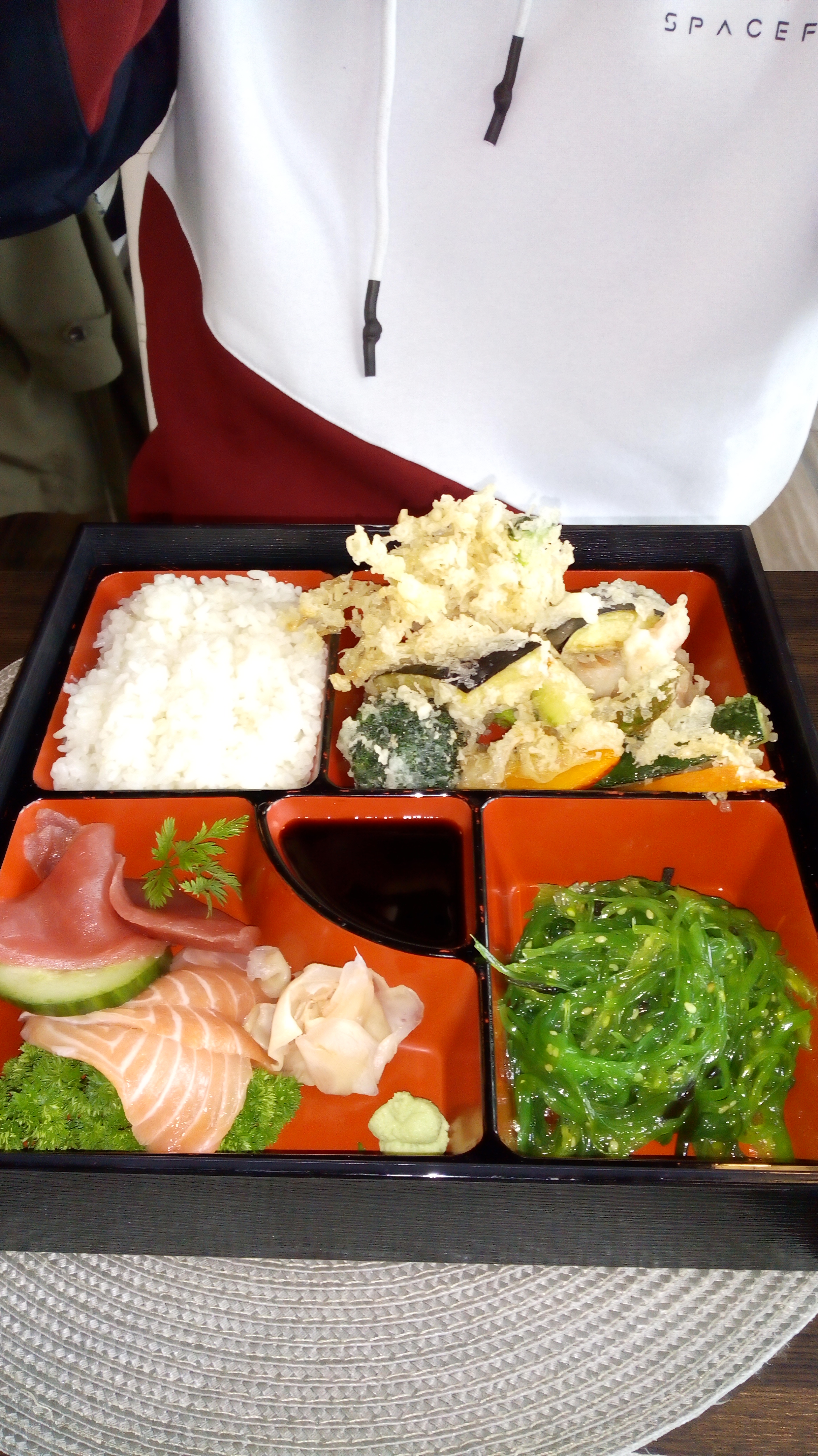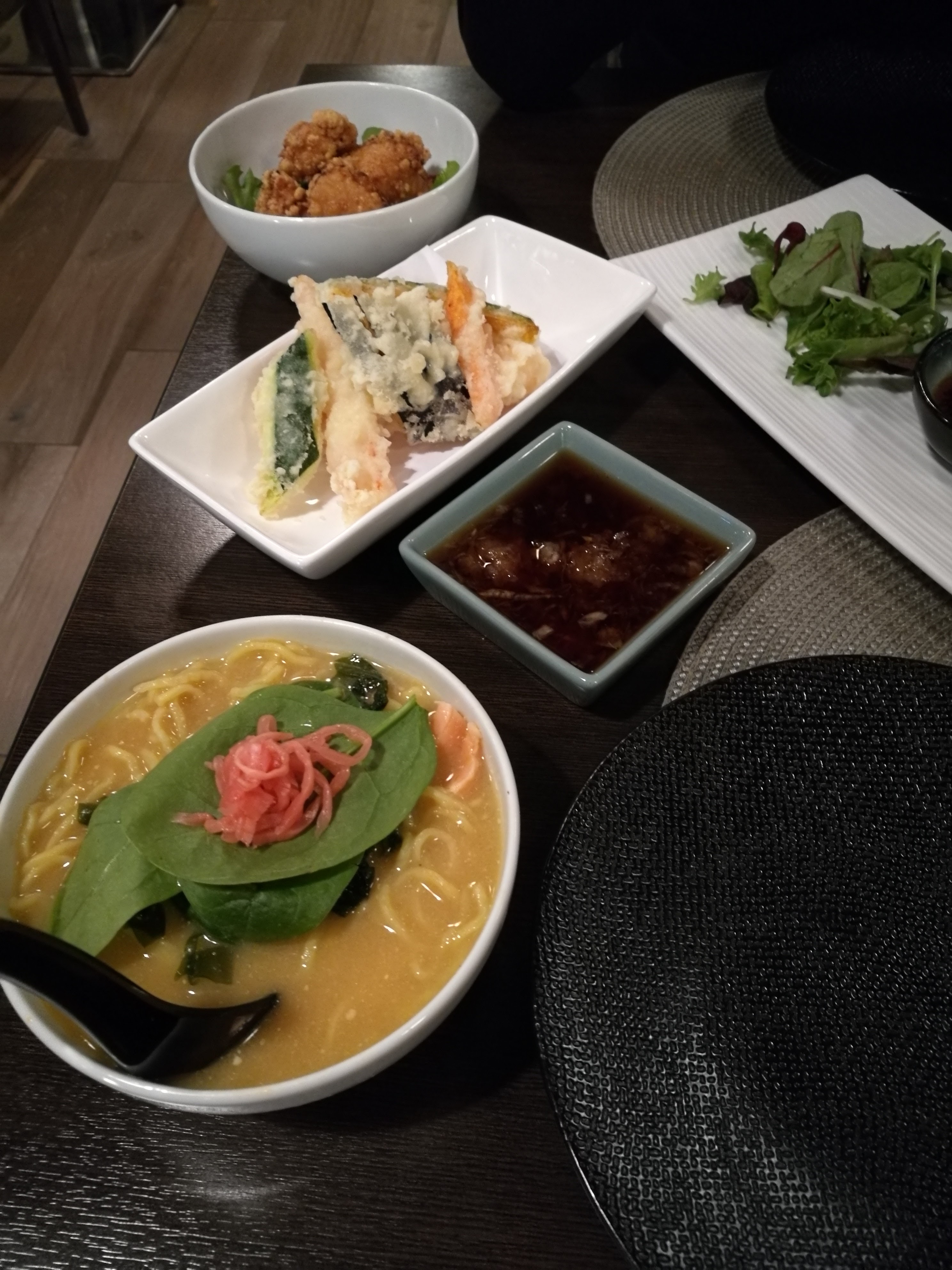 On vient de terminer notre ramen, notre katsudon, tonkatsu et plateaux de sushis et sashimis. Toujours aussi excellents. Merci les proprios 😉 Céline et David. La prochaine fois, on mangera au resto pour les tempuras ^^