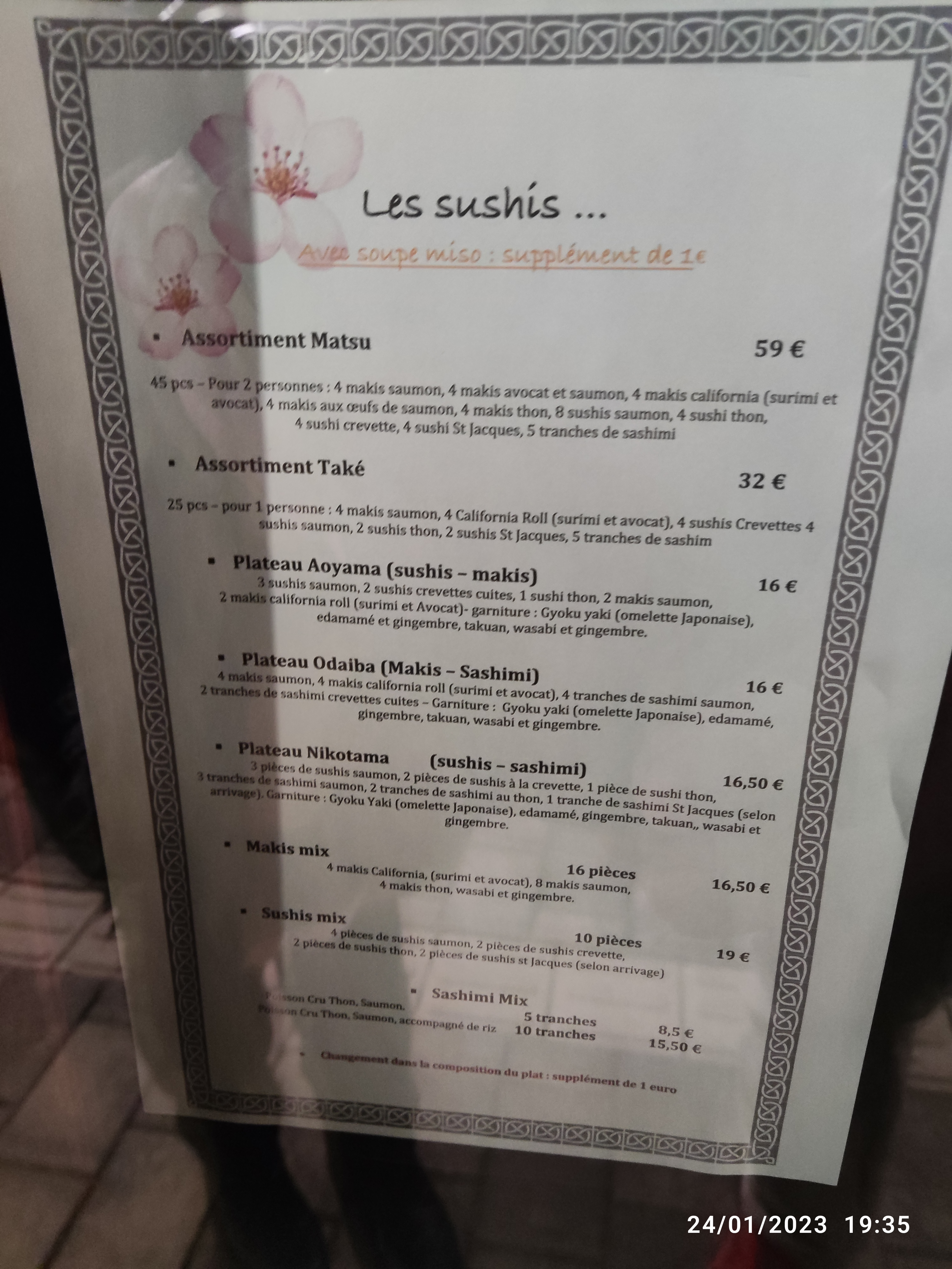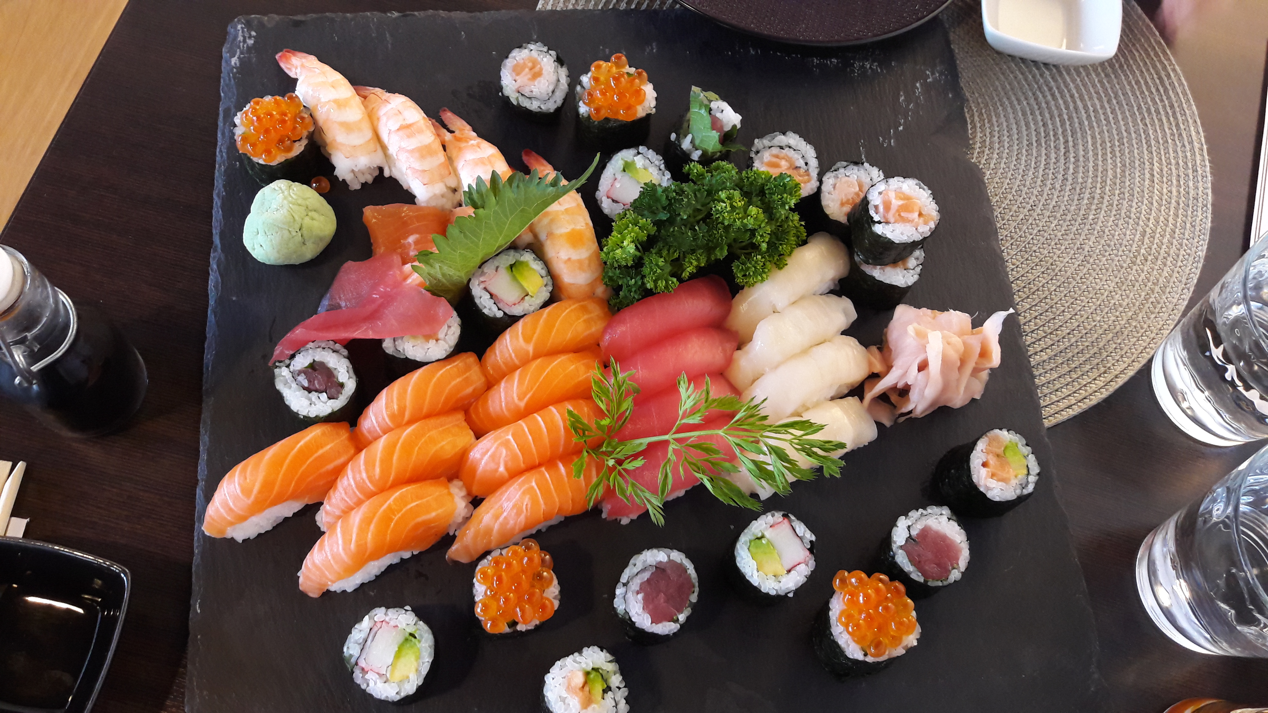 Prix ok service ok, qualité des sushis bof bof bof pas terrible, la qualité des produits en général je n’ai pas trop apprécié , mais il faut y aller et faire son propre avis, il y a souvent du monde alors je dois être difficile aussi.