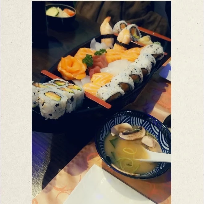 Seul dans le restaurant, en prenant un menu sashimi et ravioli, service très lent. Les sashimis arrivent en premier. Les raviolis arrivent ensuite avec le riz. Le saumon est de qualité très moyenne, absolument pas fondant. C'est pas mauvais en soi mais c'est juste si on a faim et que l'on veut manger qqch qui ressemble à du japonais. Le rapport qualité prix n'est pas bon.