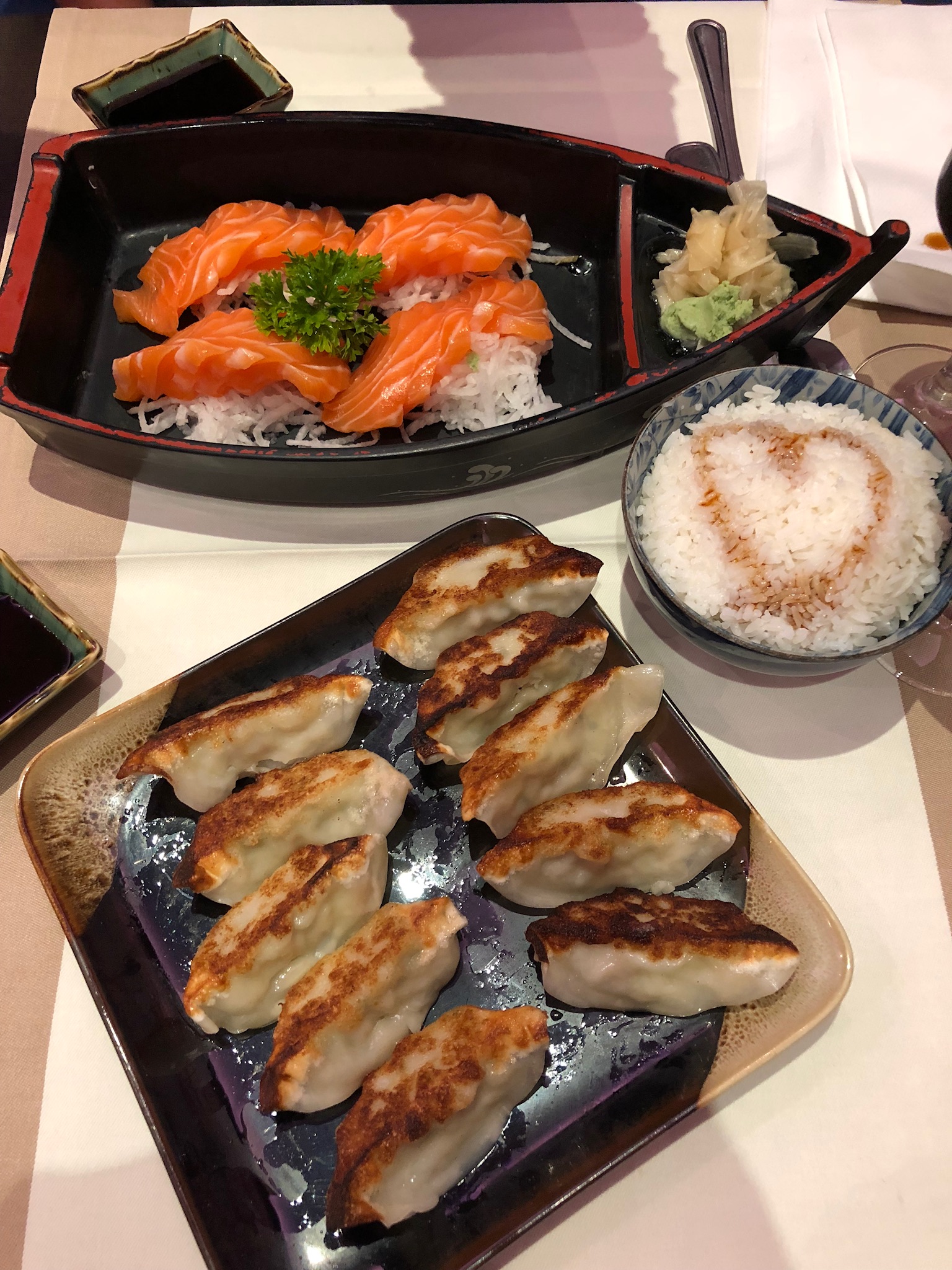 "Excellents sushis/makis/brochettes, etc. Les serveurs sont très sympathiques, tout est bien. La déco est moyenne mais je pense qu'elle se situe dans la moyenne supérieure pour un restaurant japonais... Par contre c'est un peu cher."