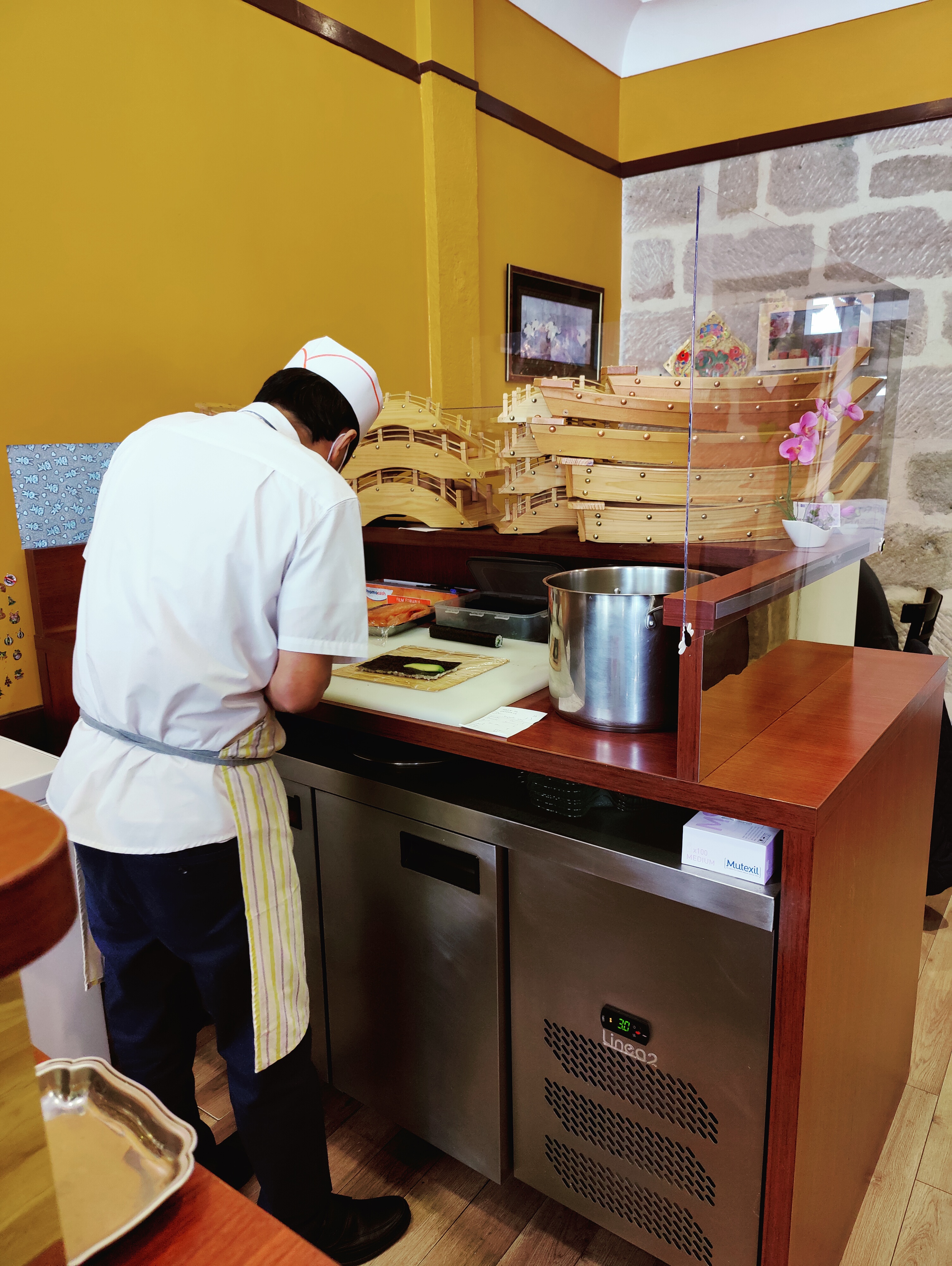 Petit restaurant familial où il y a la clim ce qui n est pas negligeable avec cette chaleur, le chef prepare les sushis devant vous et c est un vrai regal! Tout le monde est adorable rapport qualité prix top je recommande vivement!