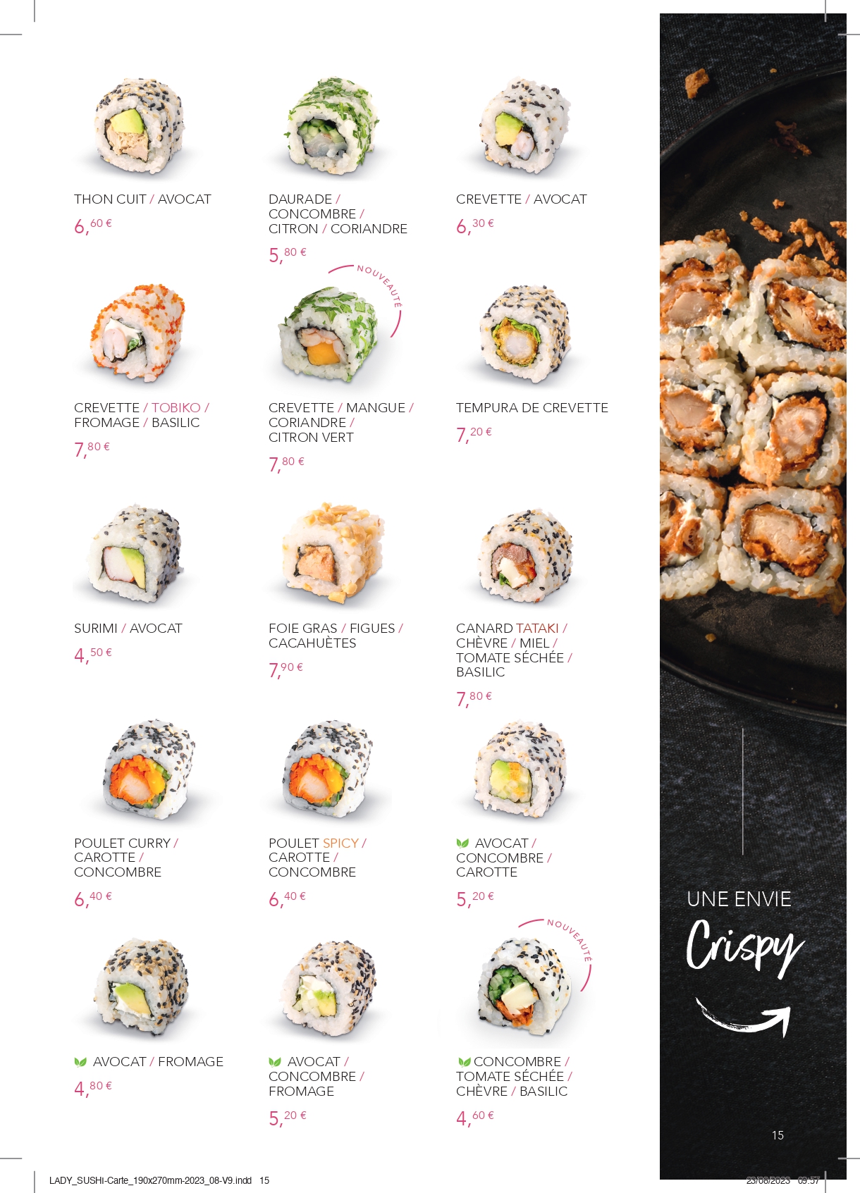 De plus en plus déçu… J’étais une grande cliente à l’époque mais ce n’est plus le cas. En effet, la qualité et la quantité ont grandement diminués. J’ai voulu retenter récemment, mais encore plus déçu d’avoir payé 7,10€ pour des springrolls poulet curry concombre et avocat, dans lesquels j’ai juste retrouver du concombre… j’ai l’impression de m’être encore faites avoir. Malheureusement ce n’est pas la première fois mais ça sera peut-être la dernière.