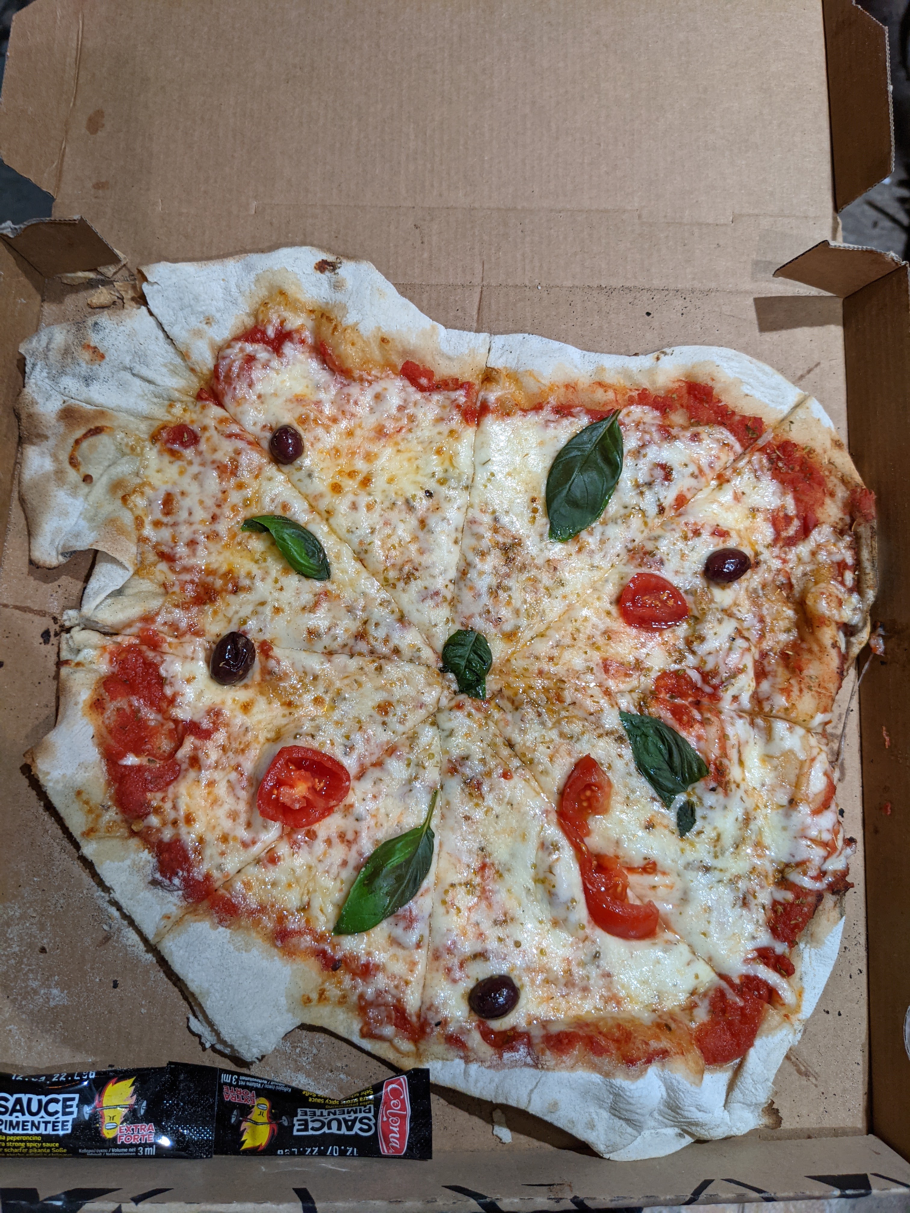 Nouvelle pizzeria, pourquoi ne pas l'essayer avec le test de pizza Margherita ?!? Personnel sympathique et très accueillant ! Le pizzaiolo a certainement mis un peu de créativité dans la forme, de très bons ingrédients et du basilic super frais. Des pâtes très très fines, mais avec un peu de retard en cuisson... Je l'aurais laissé 1 minute ou deux de plus au four ! Prix pas mal par rapport aux pizzerias d'à côté.