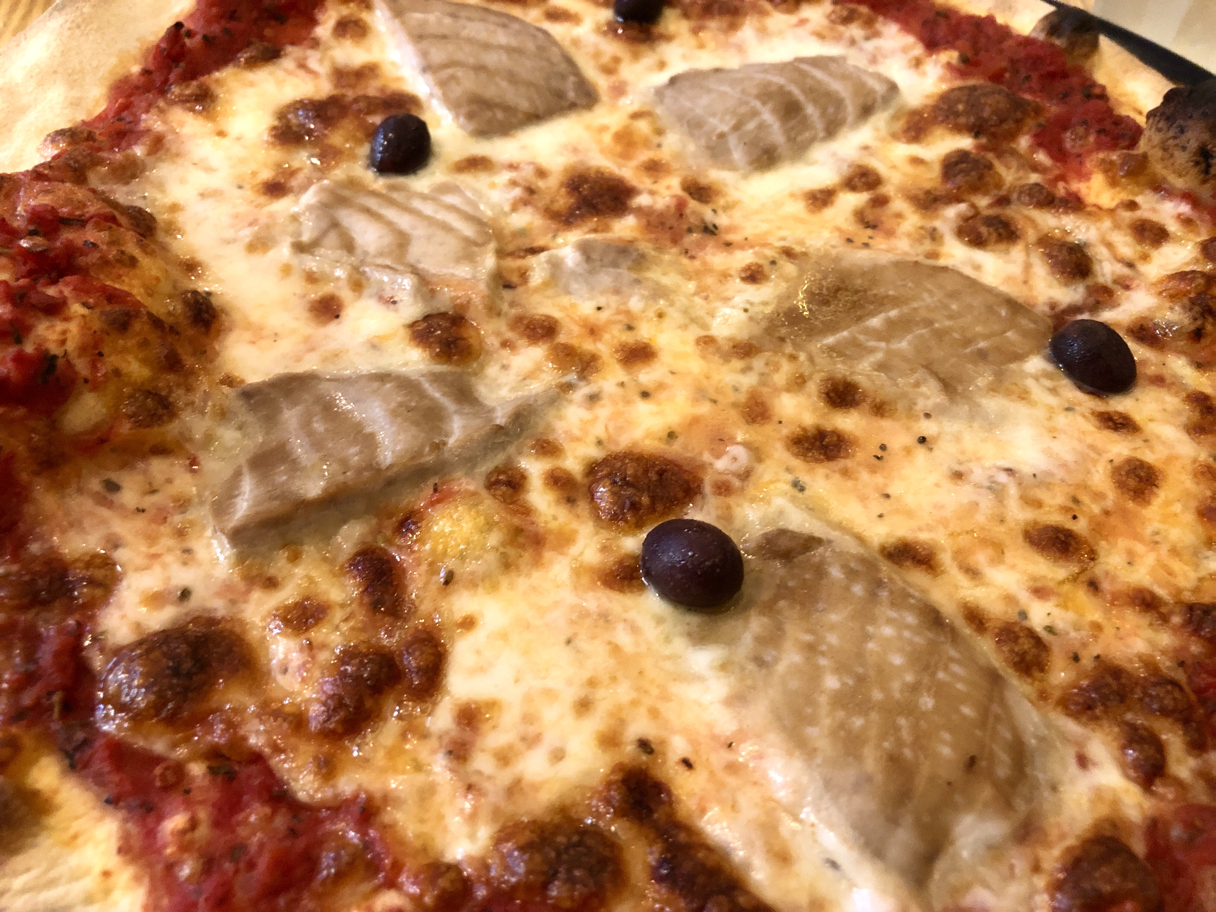 j’ai commandé une pizza au thon ce soir chez eux. la pizza froide et vide avec des bouts 4 bout de thon à se demander si elle n’était pas congelé à l’avance. la pâte croustillante et fine avec un bout de charbon en dessous en guise de surprise