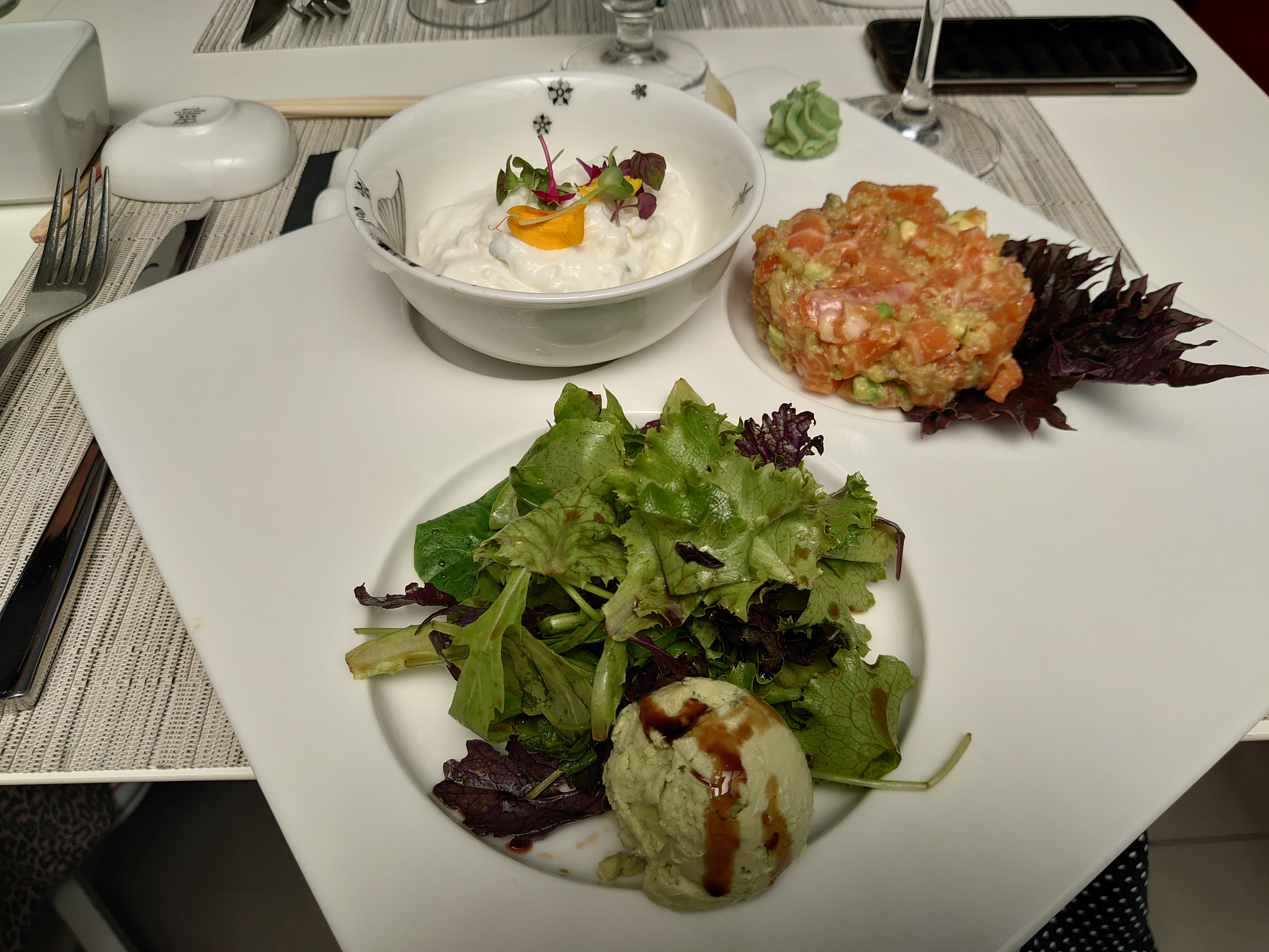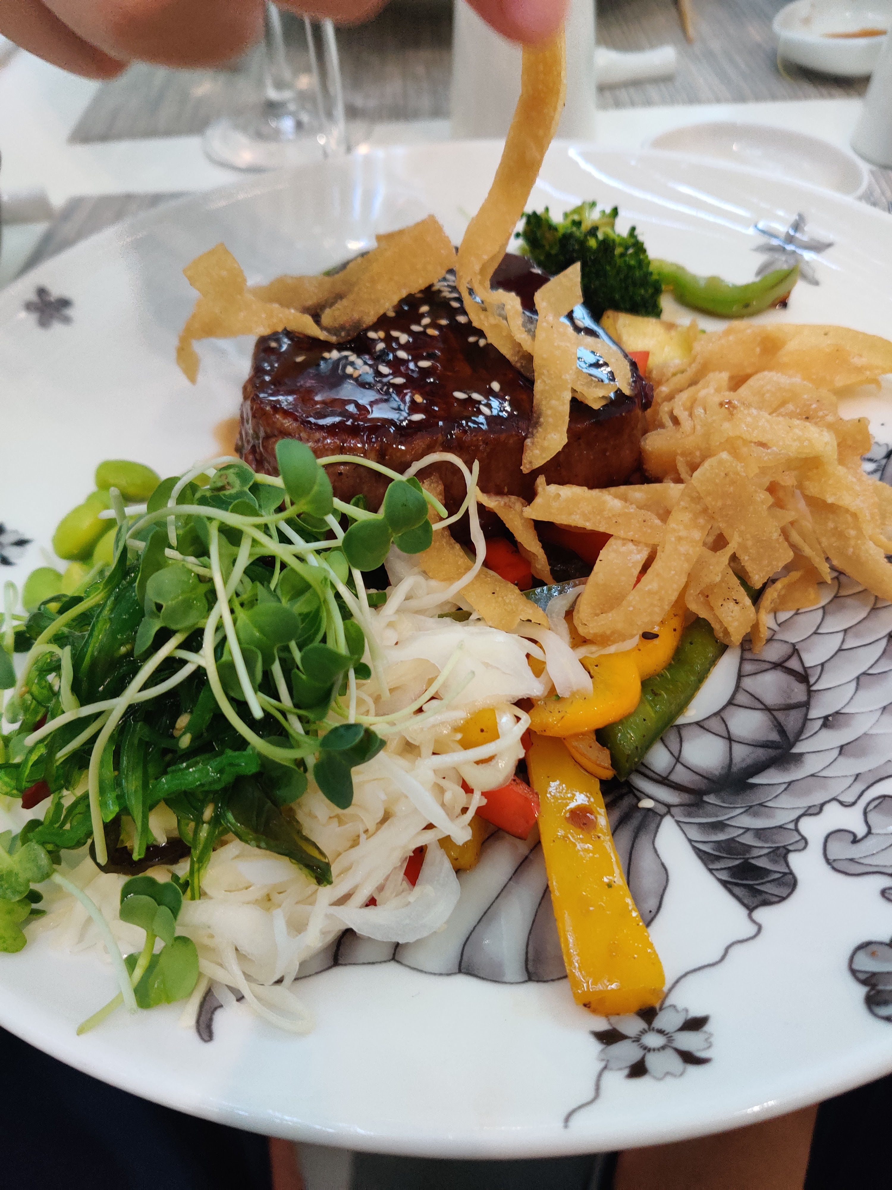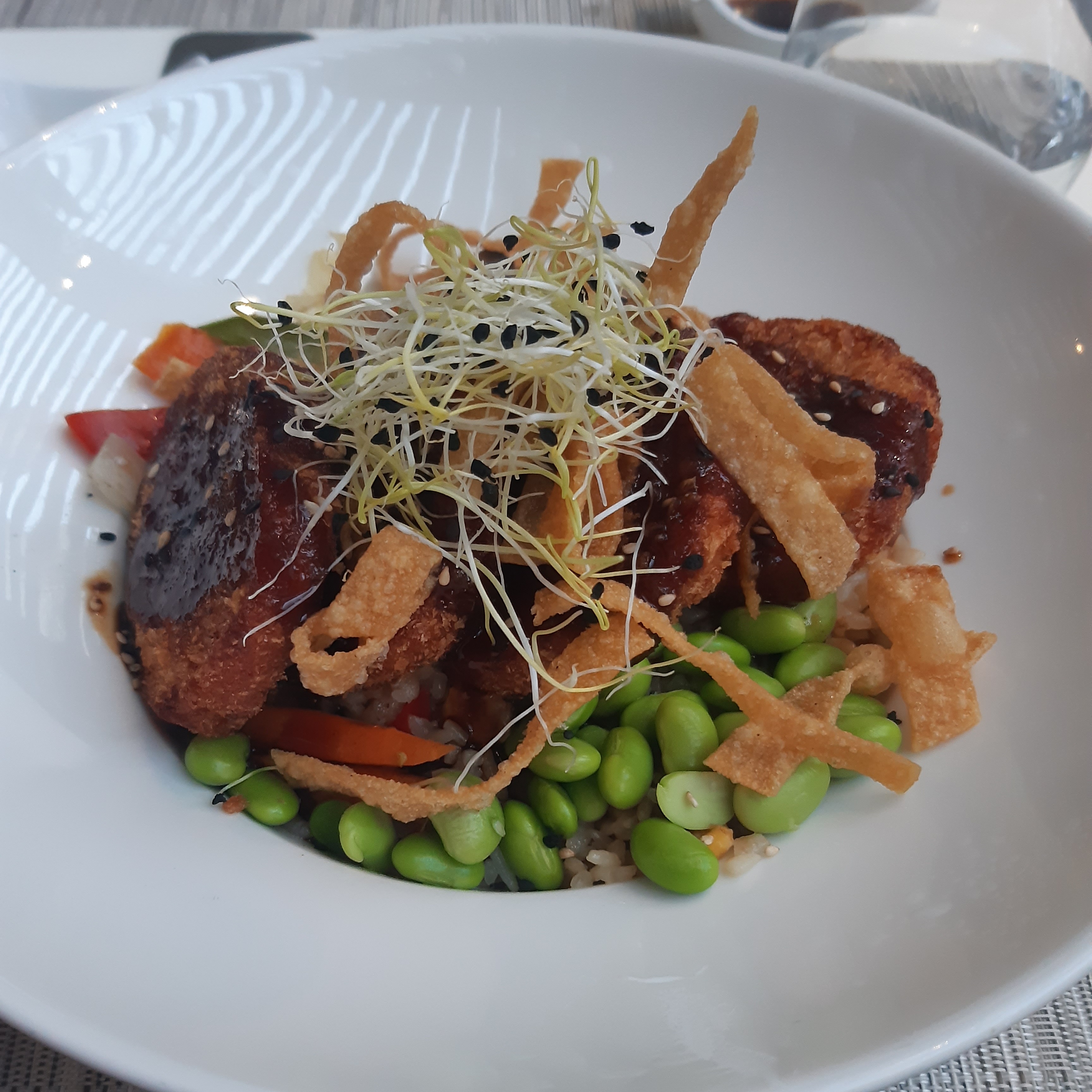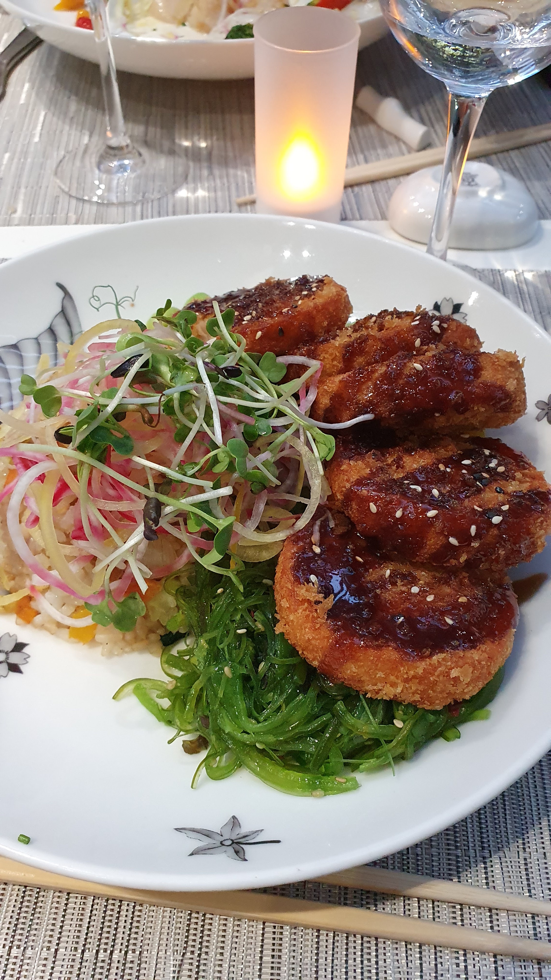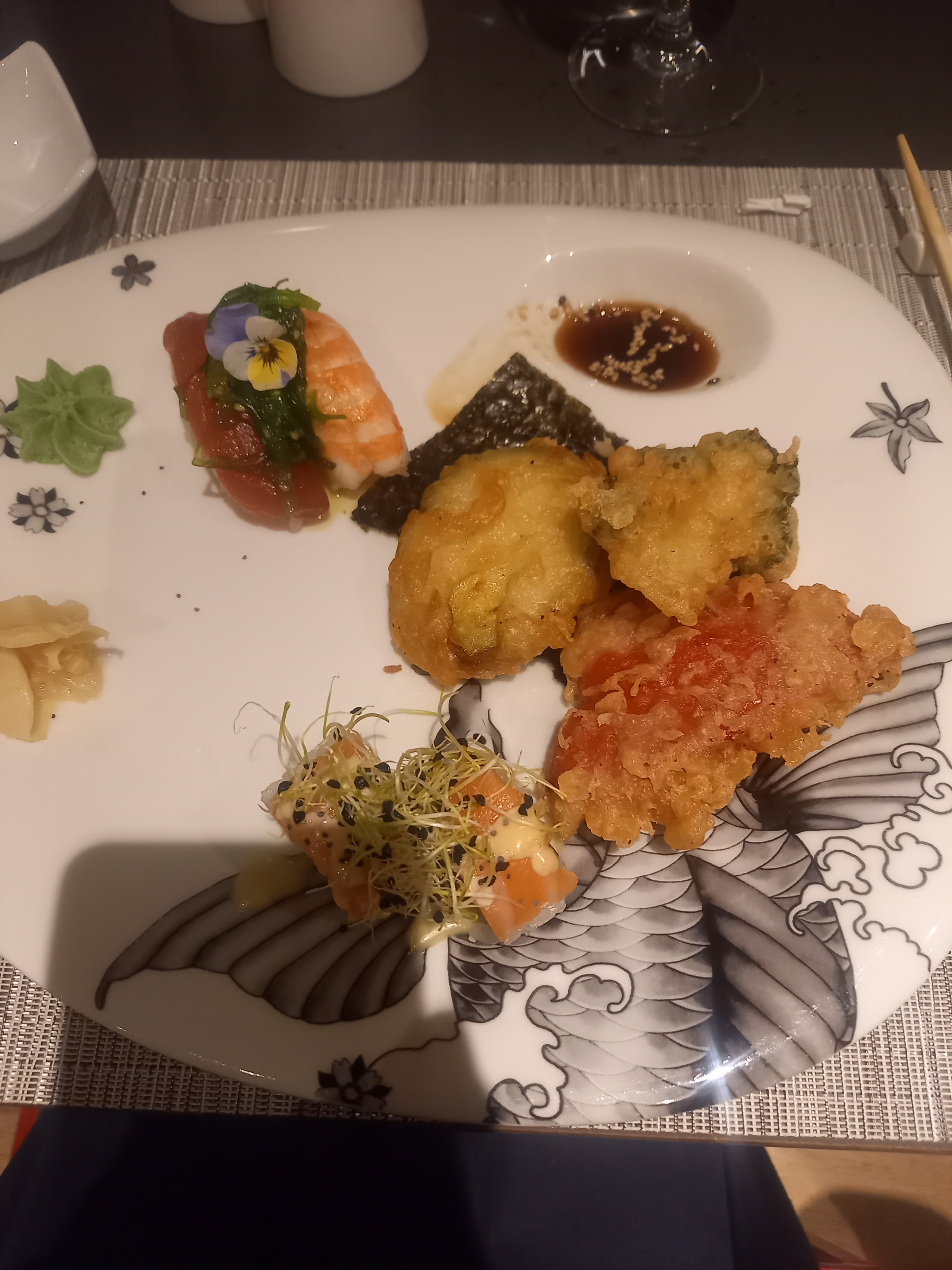 Bonne cuisine, mais pourrait avoir plus de saveur japonaise, ça aurait mérité d'être plus marqué en goût, mais long très long pour le service, peut être un ou de cuisiner en plus et les plats principaux qui n'arrivent pas ensemble obligé de renvoyer le premier pour le réchauffer. Sinon belle ambiance belle salle