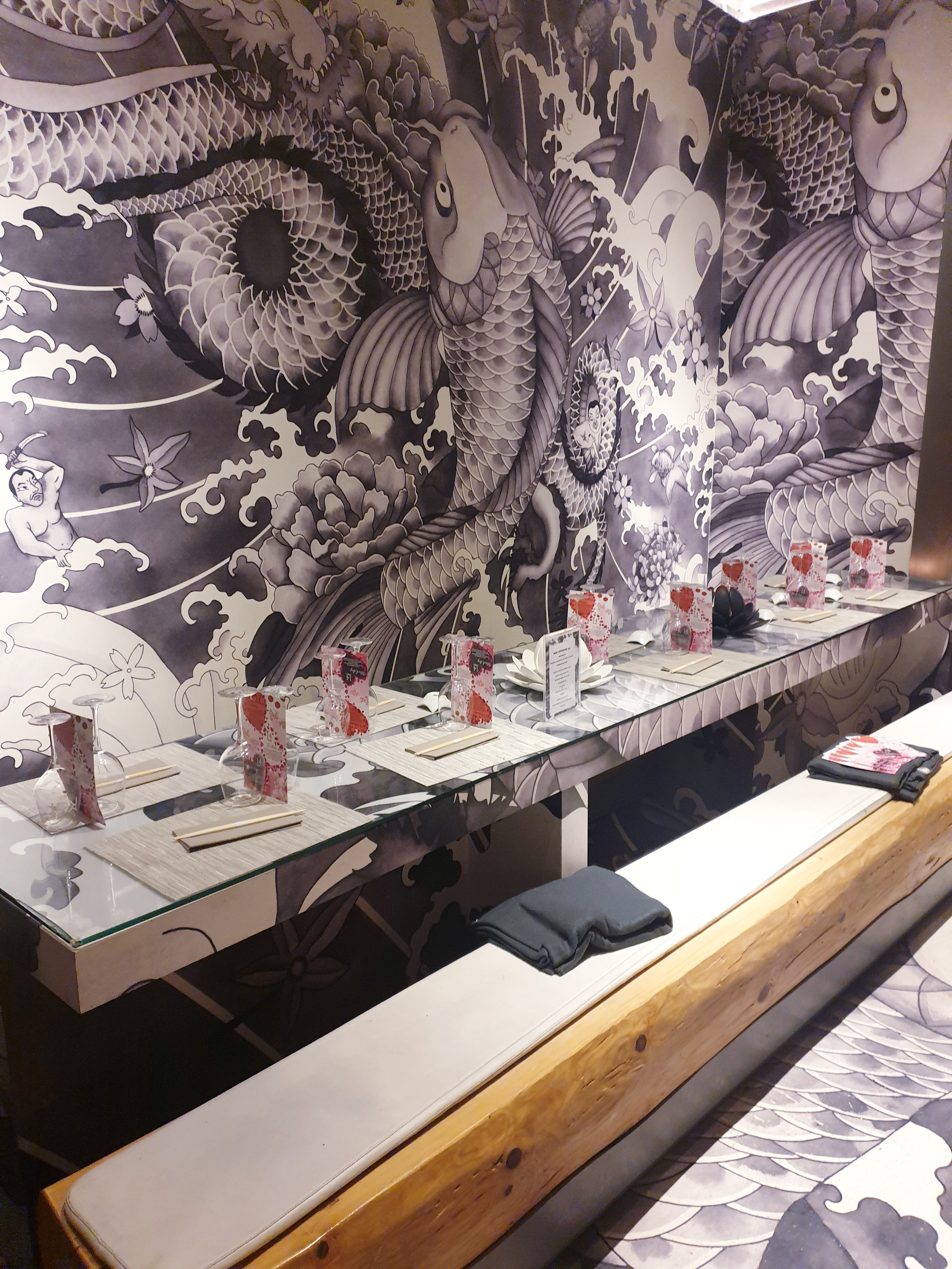 Restaurant avec ambiance très chic et japonais. Le service était long, une demi-heure d'attente avant de pouvoir payer l'addition. Les sushis sont bons mais sans plus, le tigre qui pleure était bon et raffiné. Beaucoup de monde et très à l'étroit, je conseille ce restaurant la semaine et non le week-end.