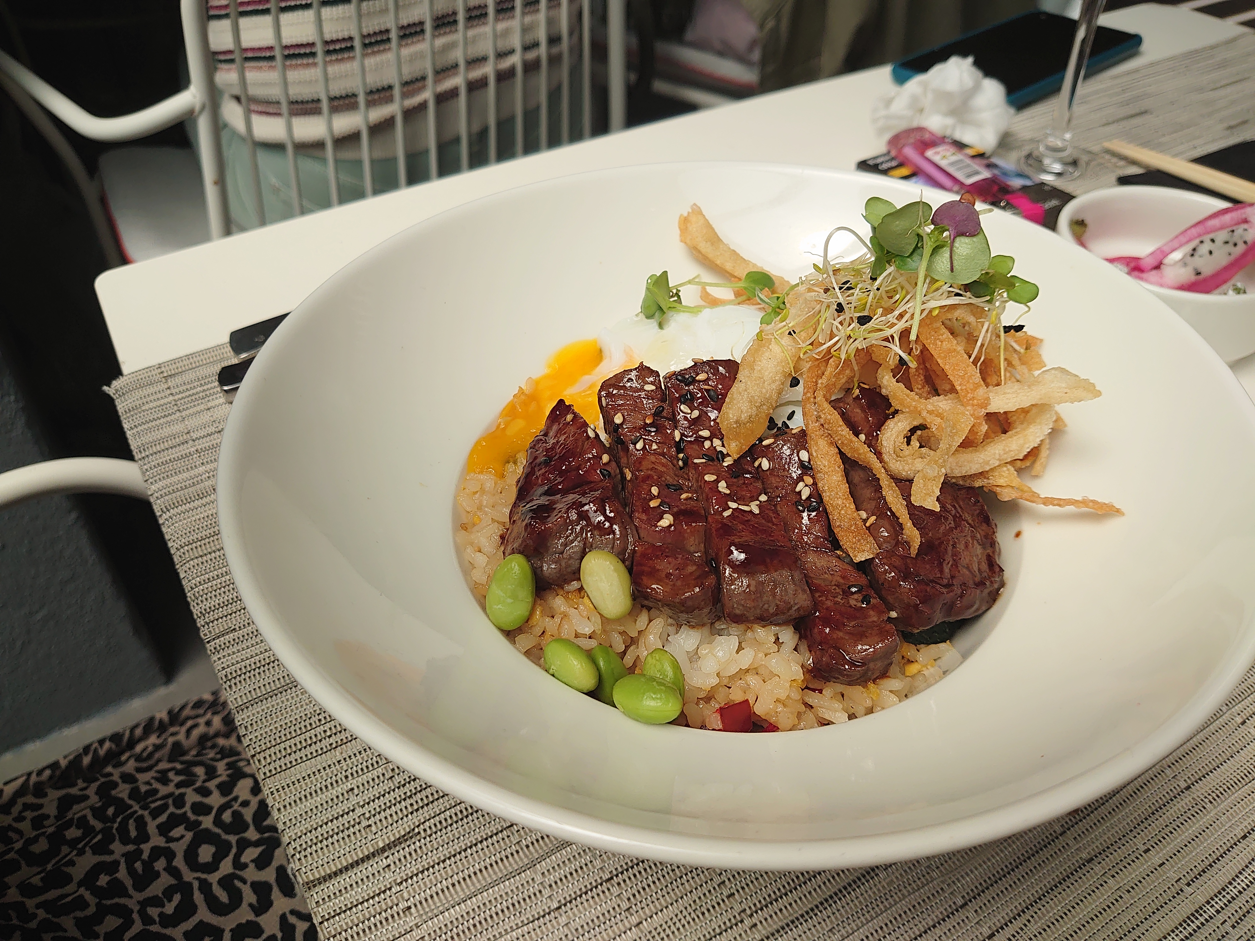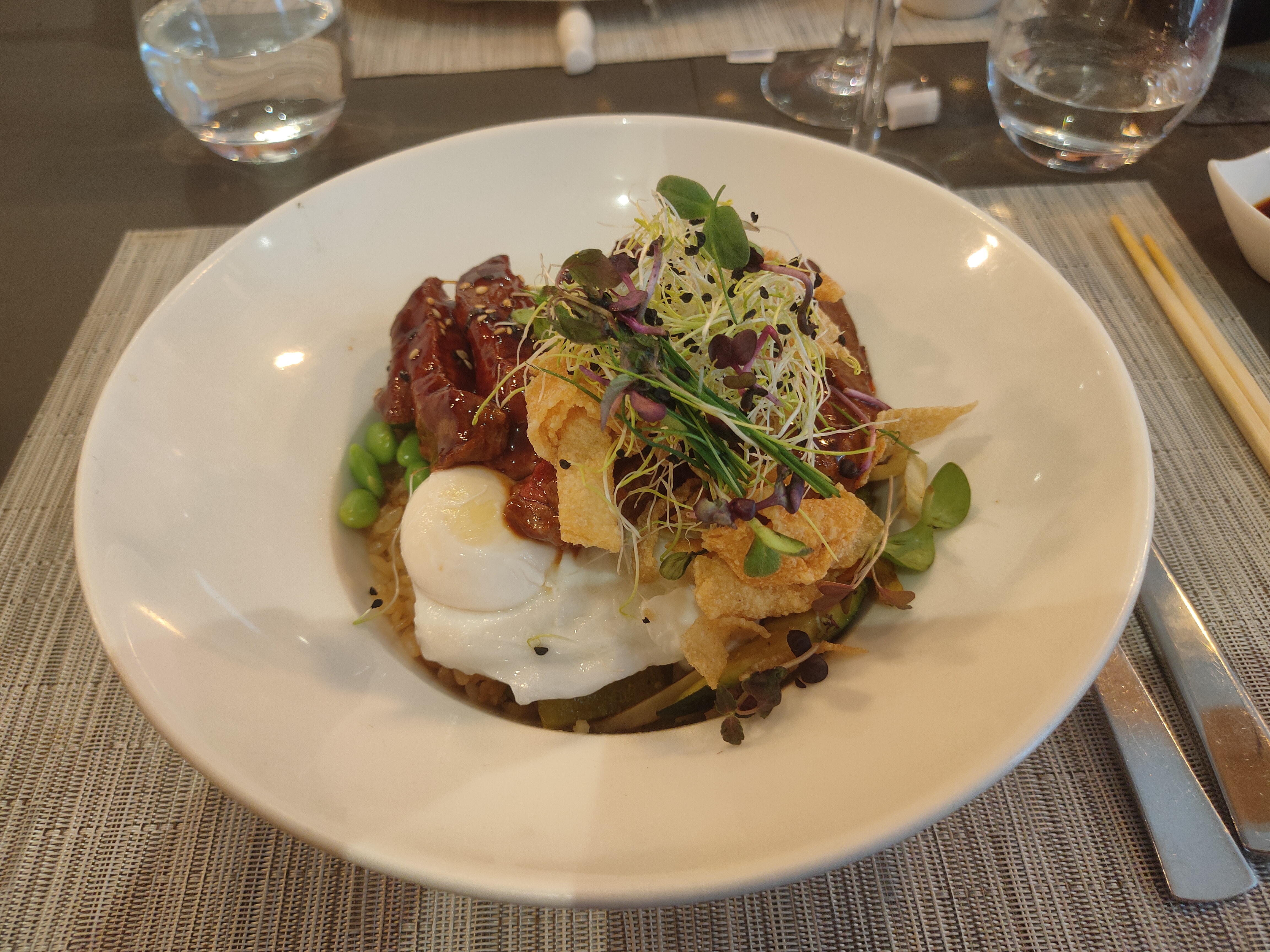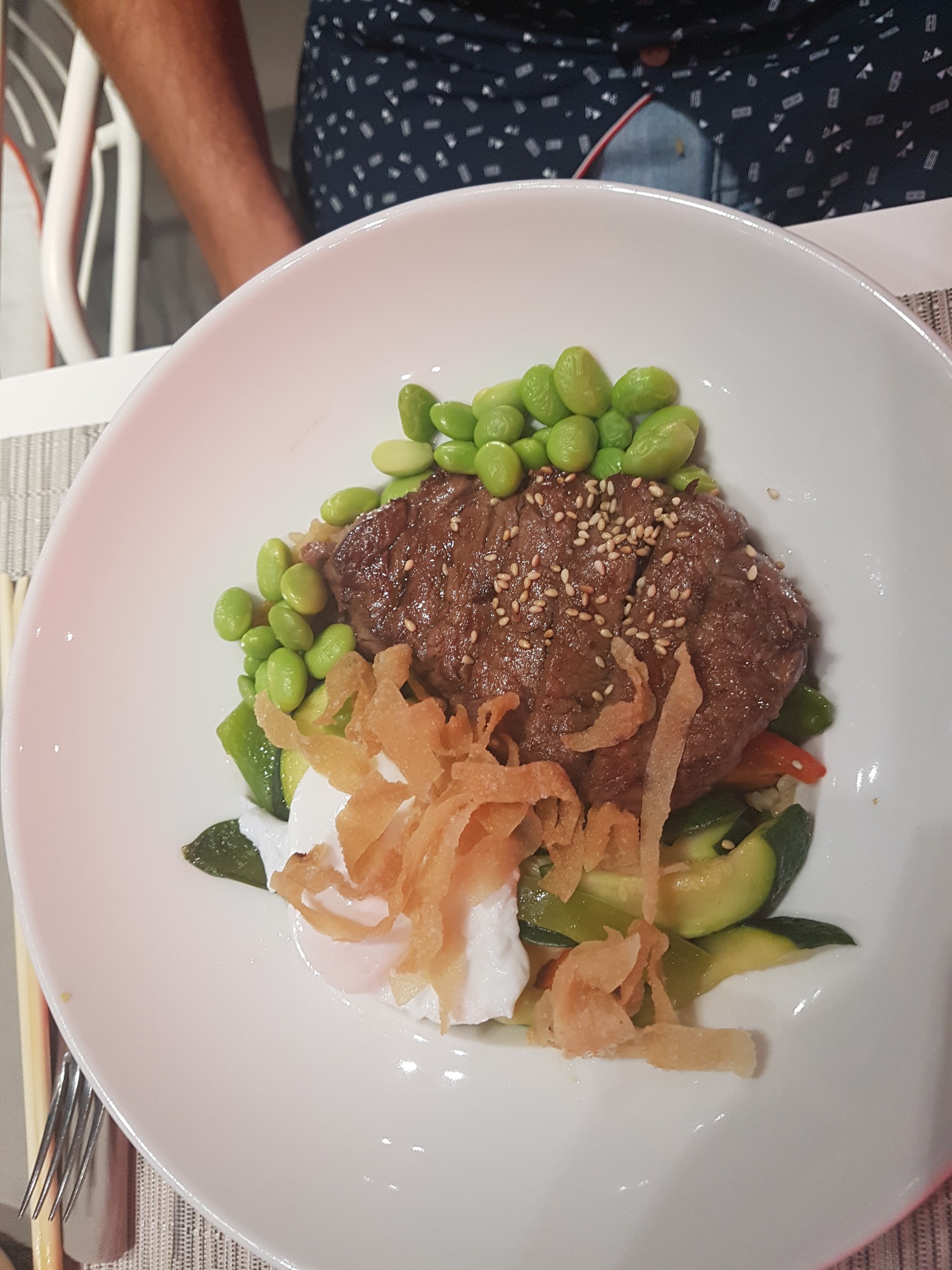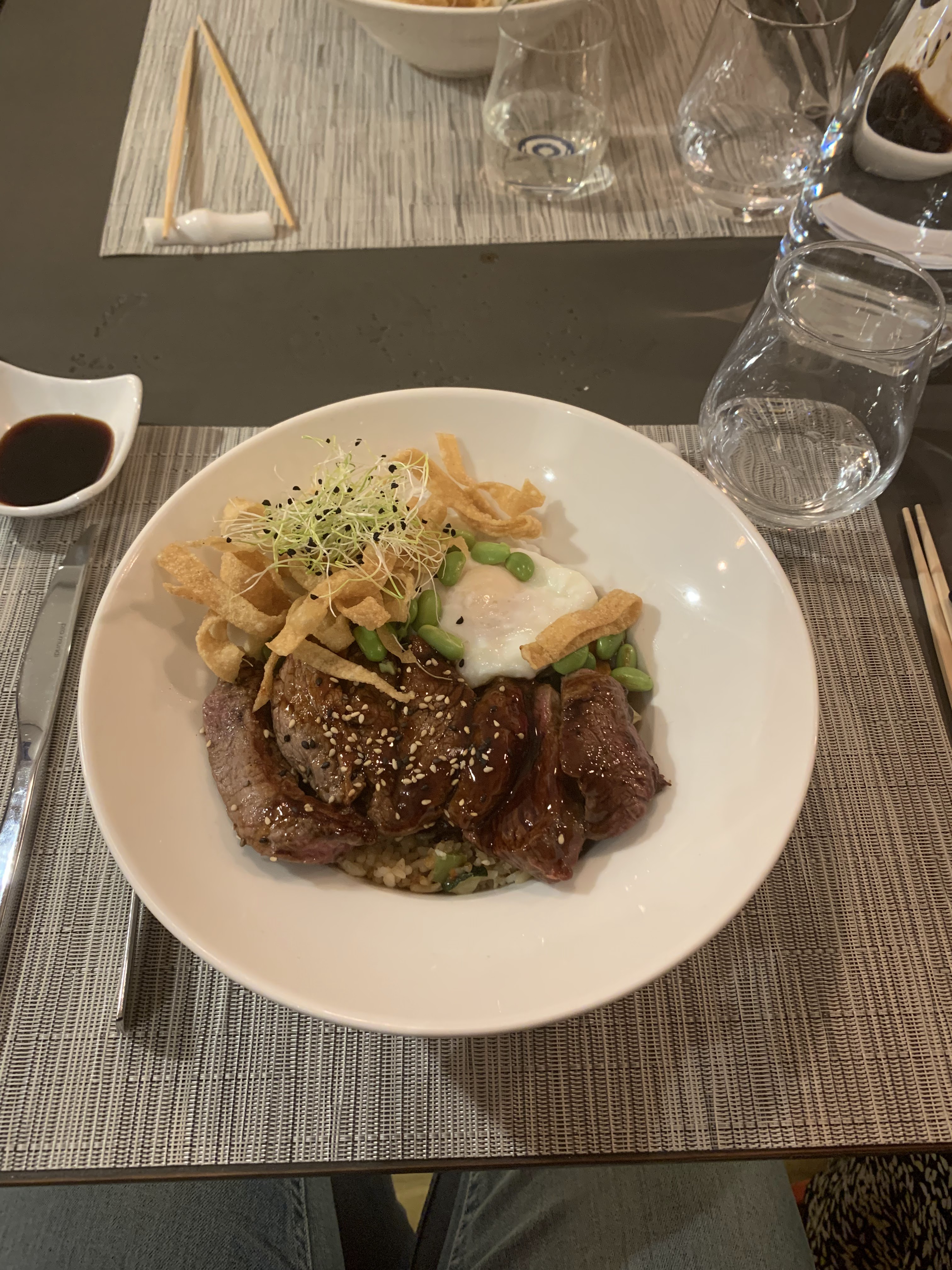 Grand restaurant au design soigné, personnel très accueillant et service aux petits soins. Les plats sont raffinés et servis rapidement. Première fois nous avons pris les ramen qui sont très bons. Deuxième fois nous avons pris des kara age a l’apéro ils sont vraiment bons ,le pad thaï gambas est délicieux , et alors le tigre qui pleure c’est franchement excellent !!! Je vous conseille fortement de venir y manger et nous nous allons y retourner c’est certain !