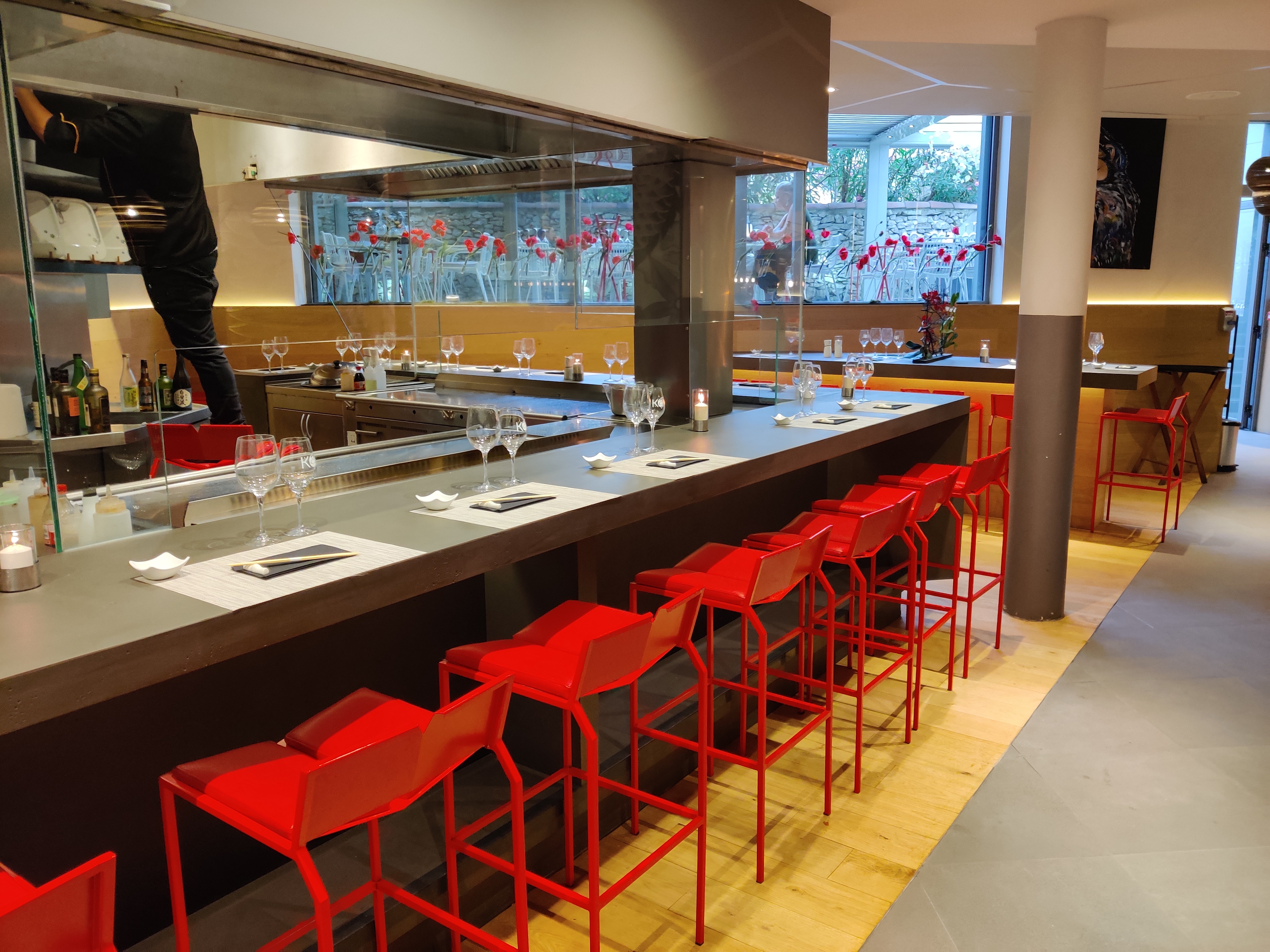 Très beau restaurant. La qualité et la fraîcheur des plats sont au RDV. Le serveur est très agréable, dynamique et serviable. Nous nous sommes régalés du spectacle offert par le chef cuisinier sous nos yeux. Seul bémol= La femme qui s'occupe de l'accueil n'est pas du tout agréable... En tout cas, nous avons hâte d'y retourner..