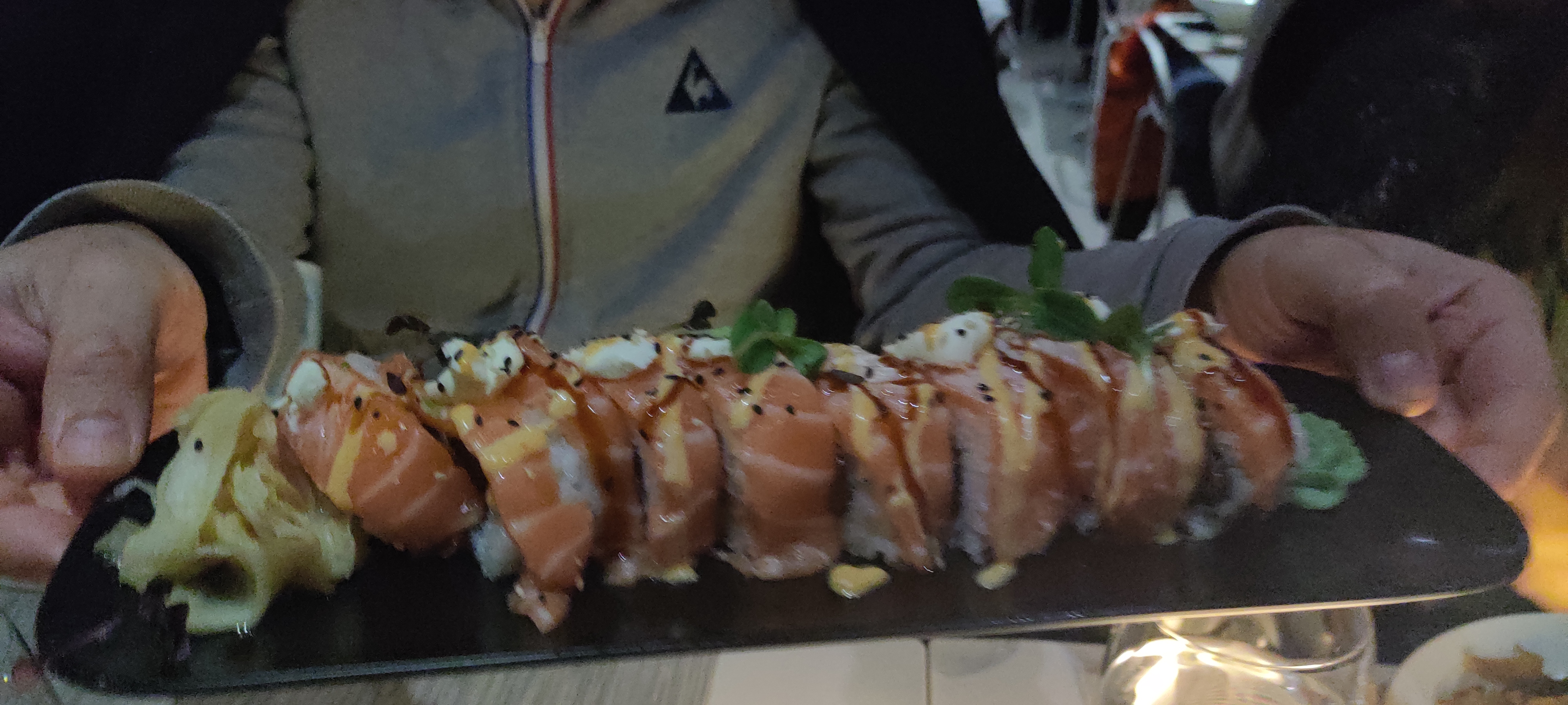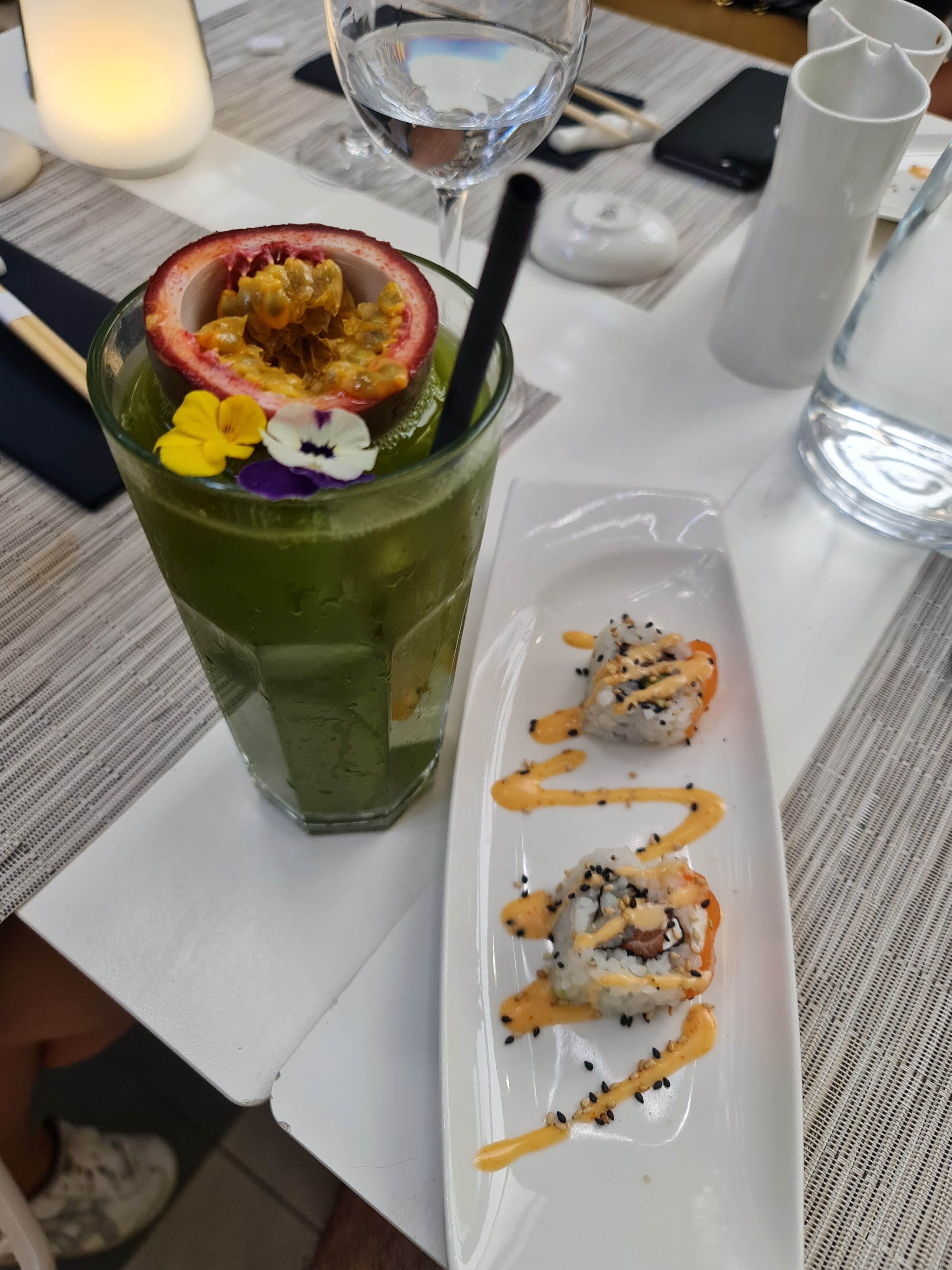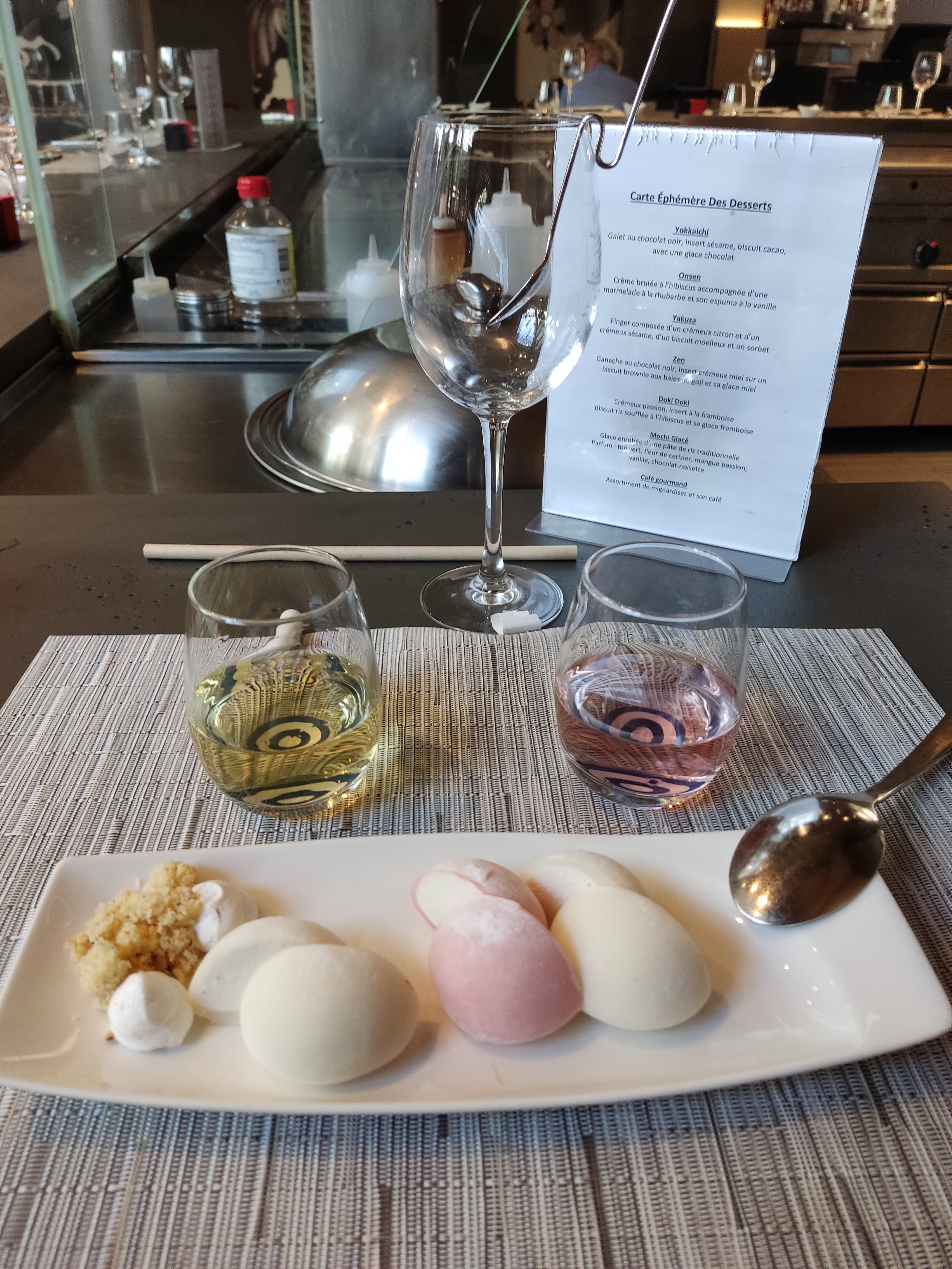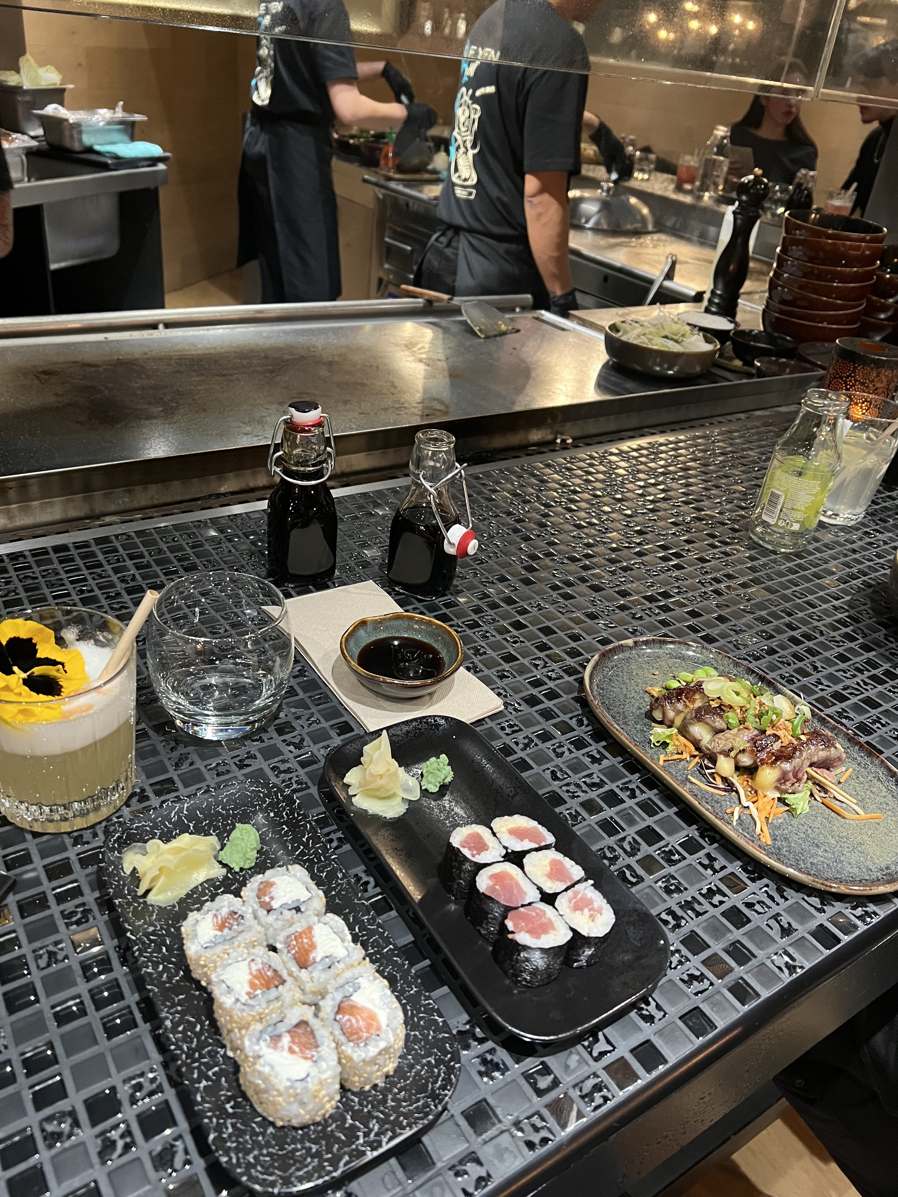 Olala tellement bon ! Coup de coeur pour les sushis anguilles une pure tuerie. L'accueil, la décoration, la vaiselle.. bref les chefs qui cuisinent devant nous.. les cocktails tellement bons. Les sushis réinventés façon gastronomie élégante. Les desserts (celui chocolat sésame vraiment hyper bon). En résumé une excellente soirée !
