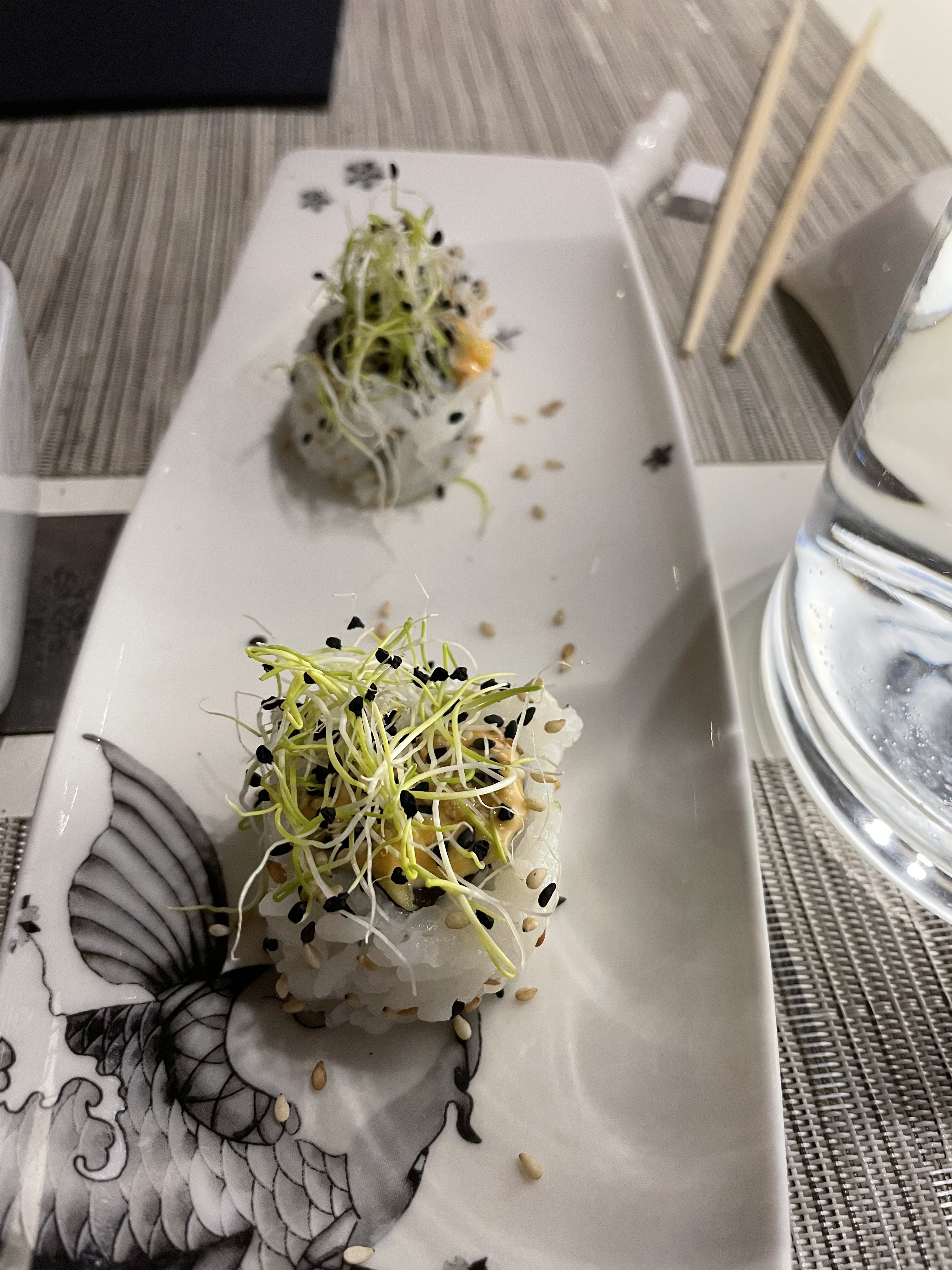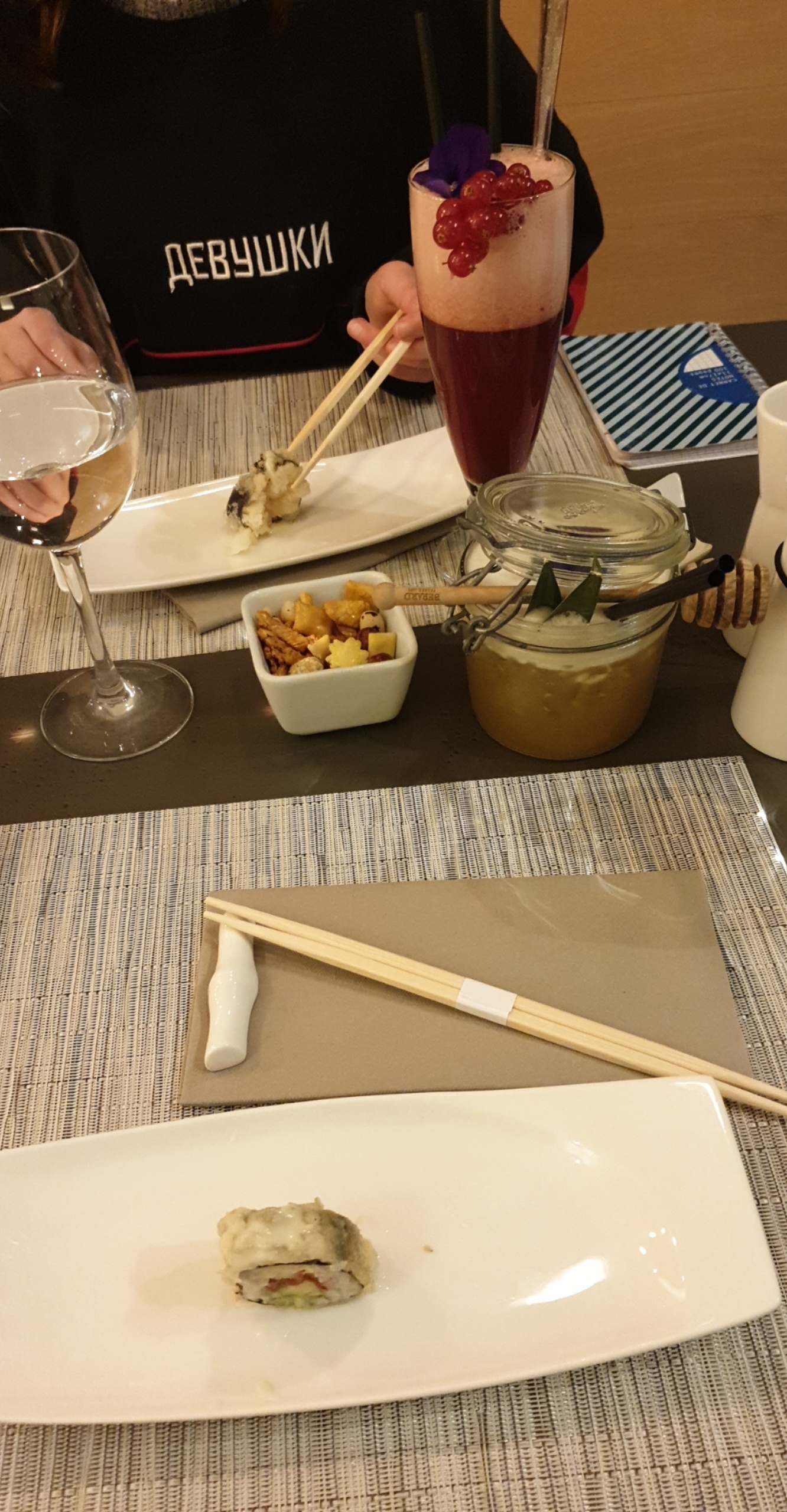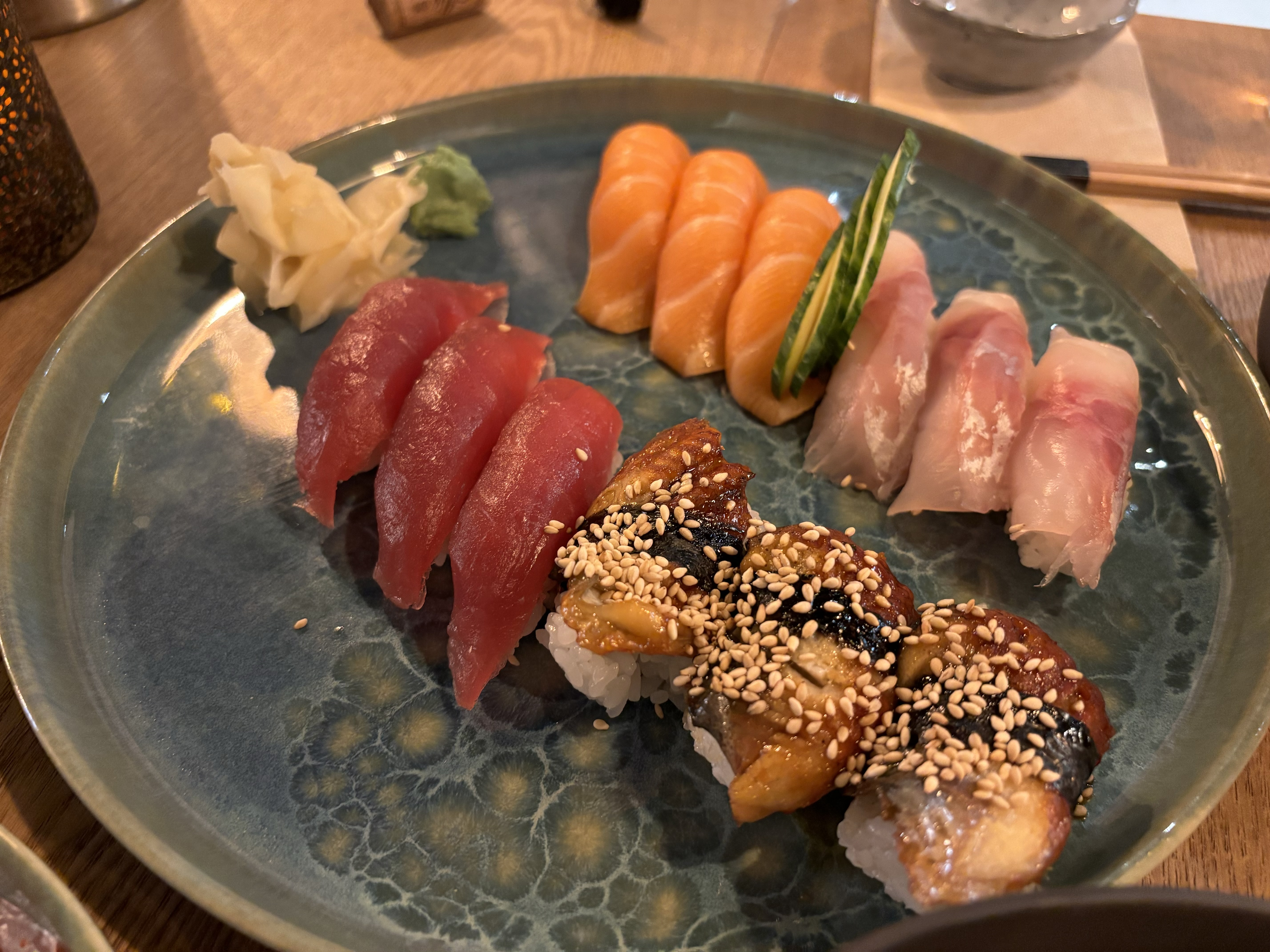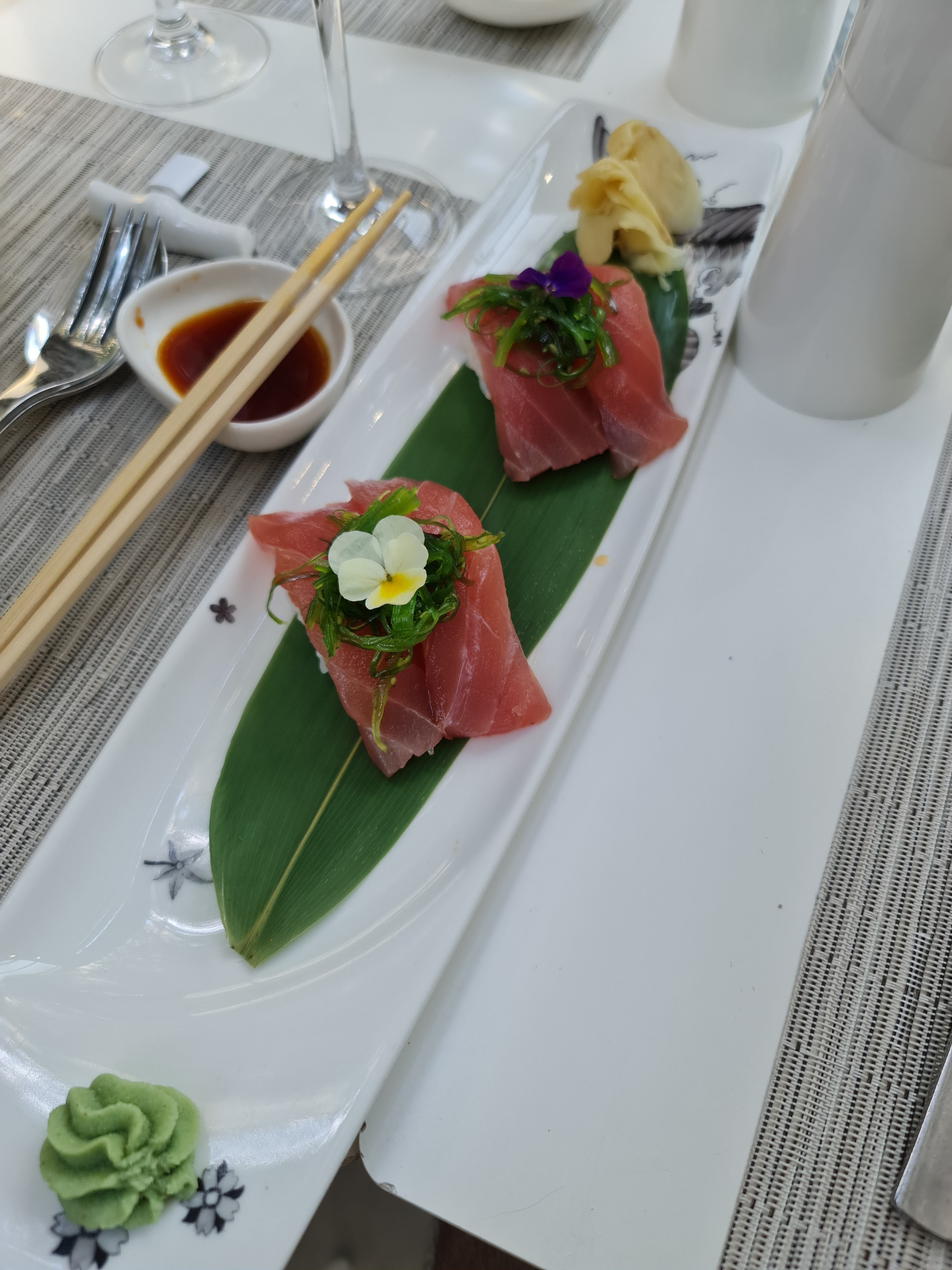 Olala tellement bon ! Coup de coeur pour les sushis anguilles une pure tuerie. L'accueil, la décoration, la vaiselle.. bref les chefs qui cuisinent devant nous.. les cocktails tellement bons. Les sushis réinventés façon gastronomie élégante. Les desserts (celui chocolat sésame vraiment hyper bon). En résumé une excellente soirée !
