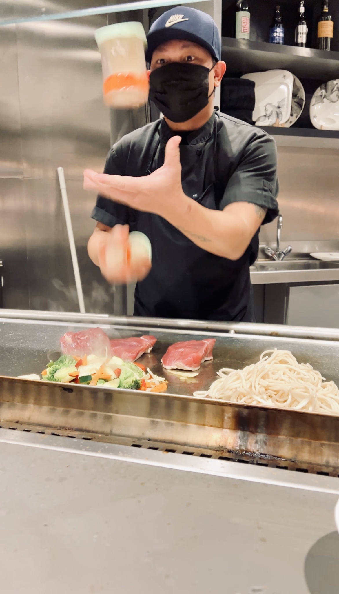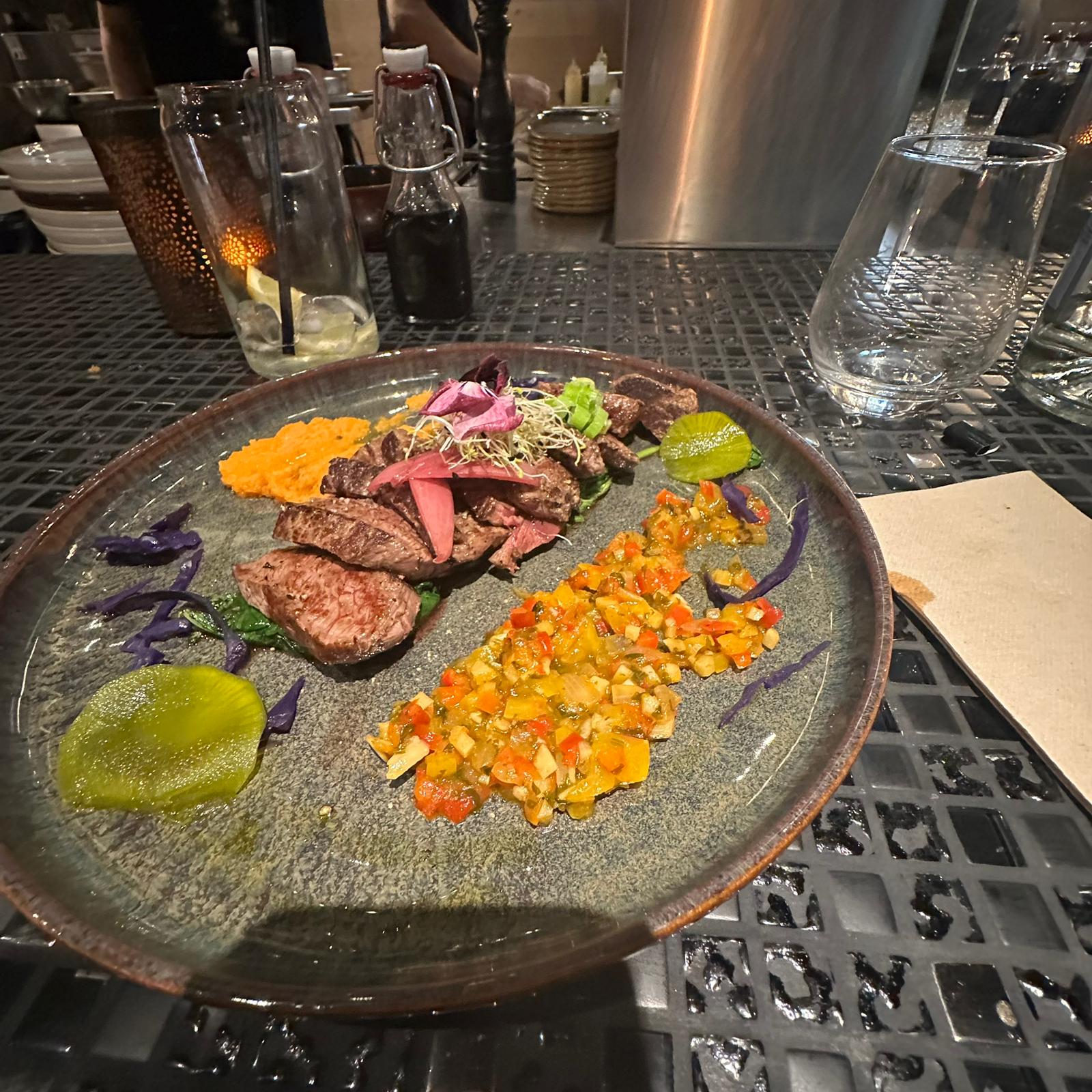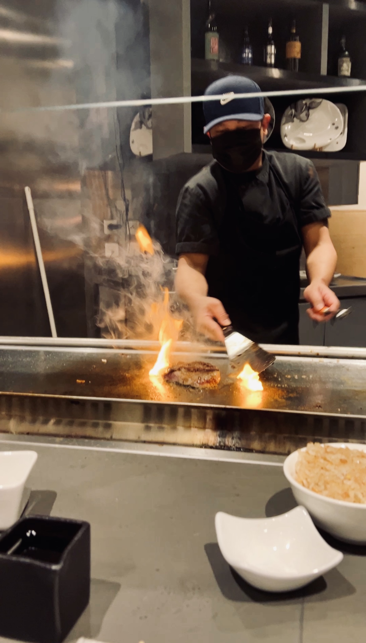 Je recommande vraiment ce resto , excellente cuisine,belle présentation dans les plats ,le chef cuisinier fait le show sur des plaques de cuisson c'est juste un beau spectacle pour les yeux 🙏 et l'ambiance extra 😍
