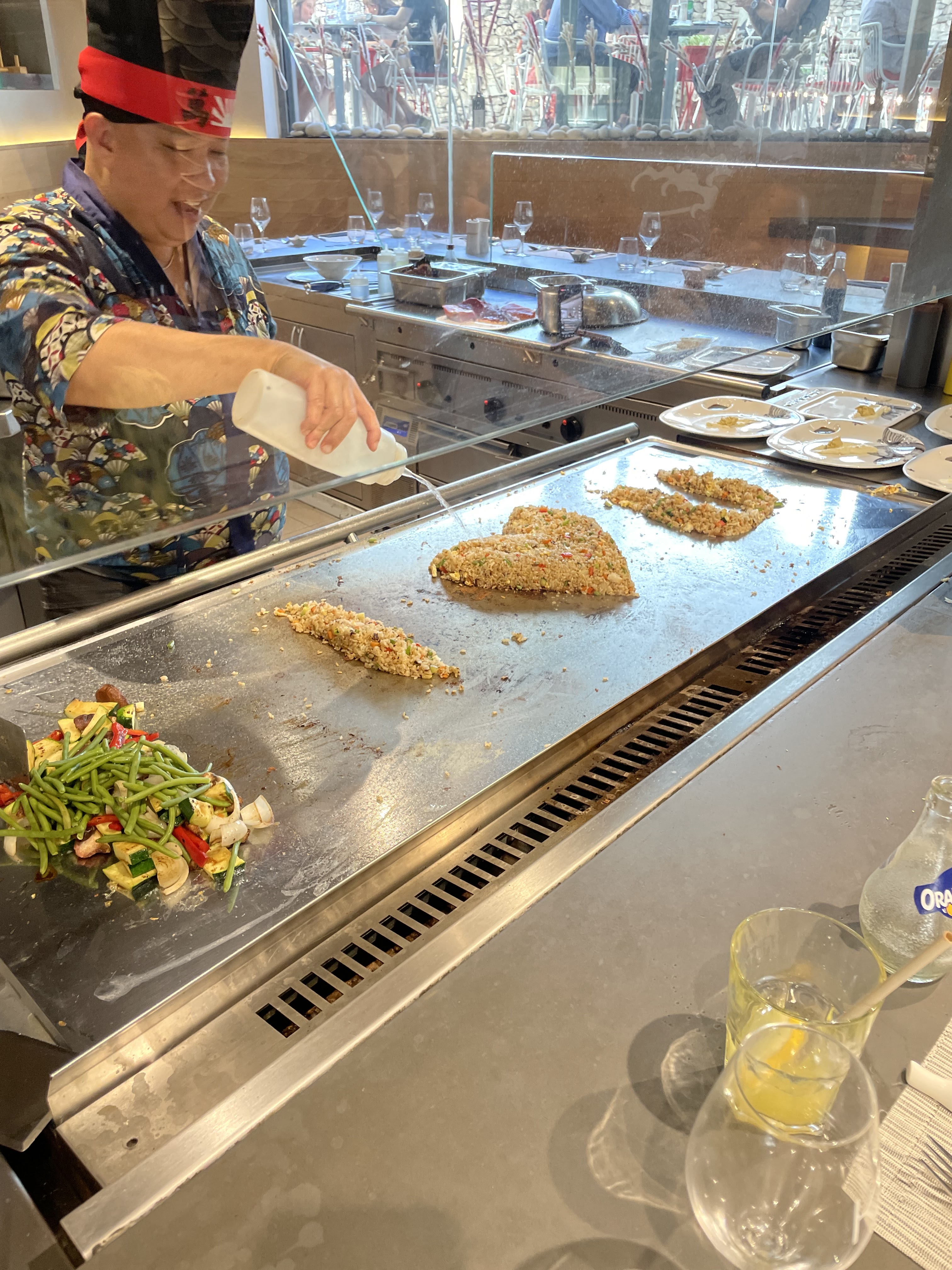 Un véritable show fait par un chef japonais, ça saute, flambe et grille sous nos yeux. L’essentiel est bien sûr de la partie: c’est très bon et copieux. Attention il faut absolument réserver.