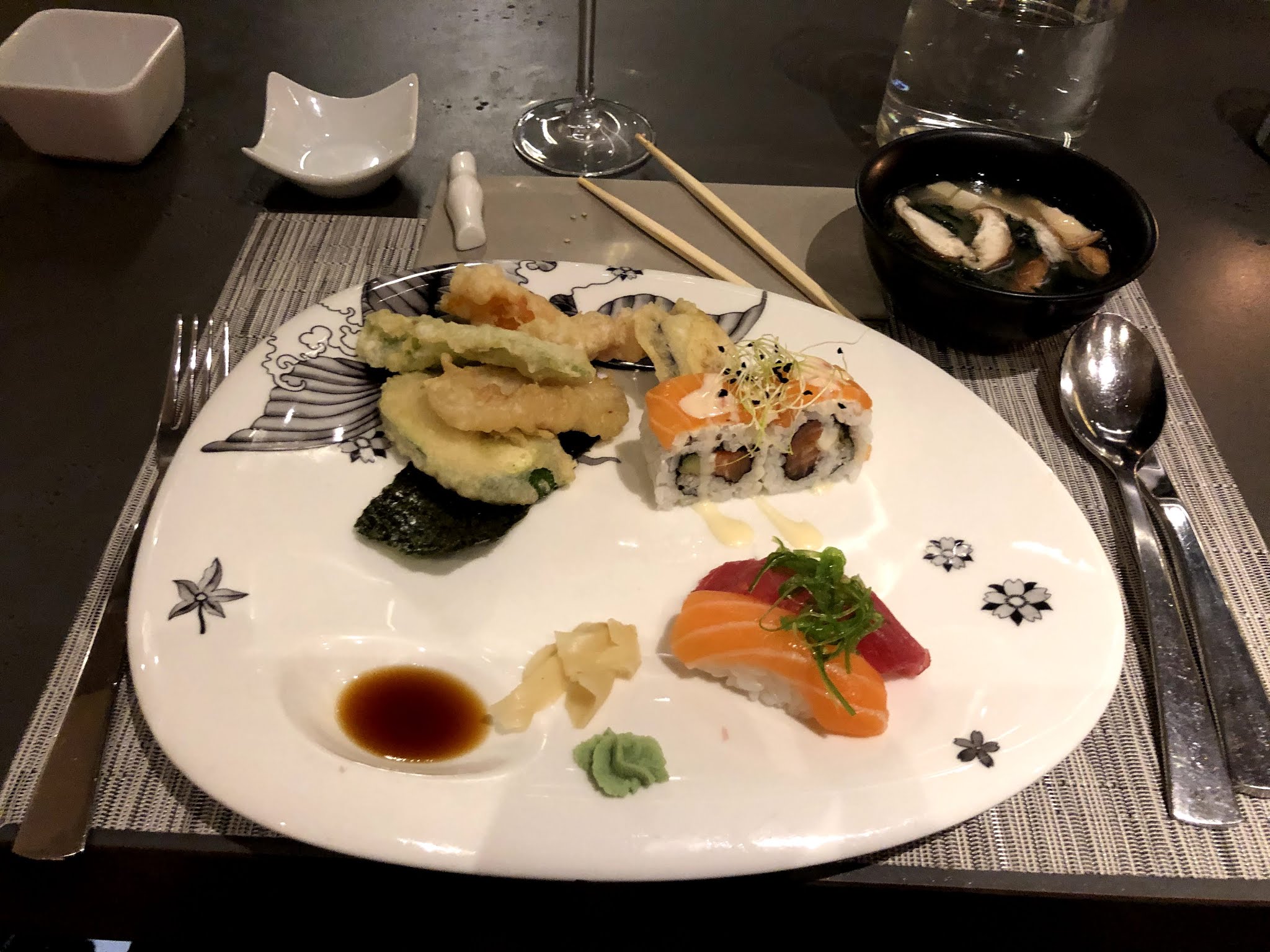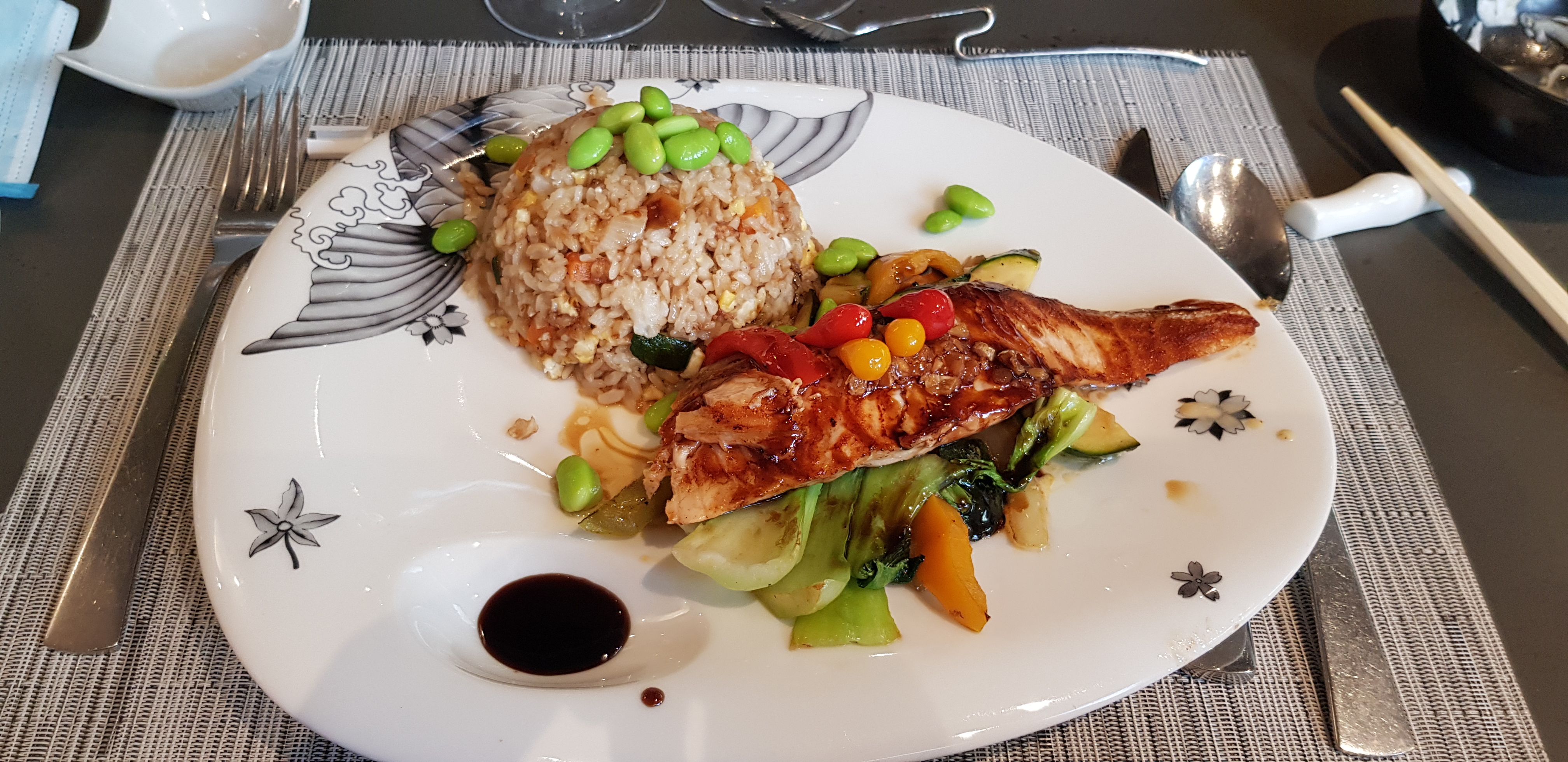 Un restaurant japonais qui emprunte aussi à d'autres cuisines asiatiques (nems, fried rice...). Les plats sont copieux. J'ai beaucoup aimé le sashimi de saumon, très tendre. Les sushis sont bons mais le riz est trop compact à mon goût. Le tori katsu ne m'a pas convaincue. Le service est rapide et agréable. A noter que le restaurant fait également teppanyaki (menu unique entrée plat dessert).
