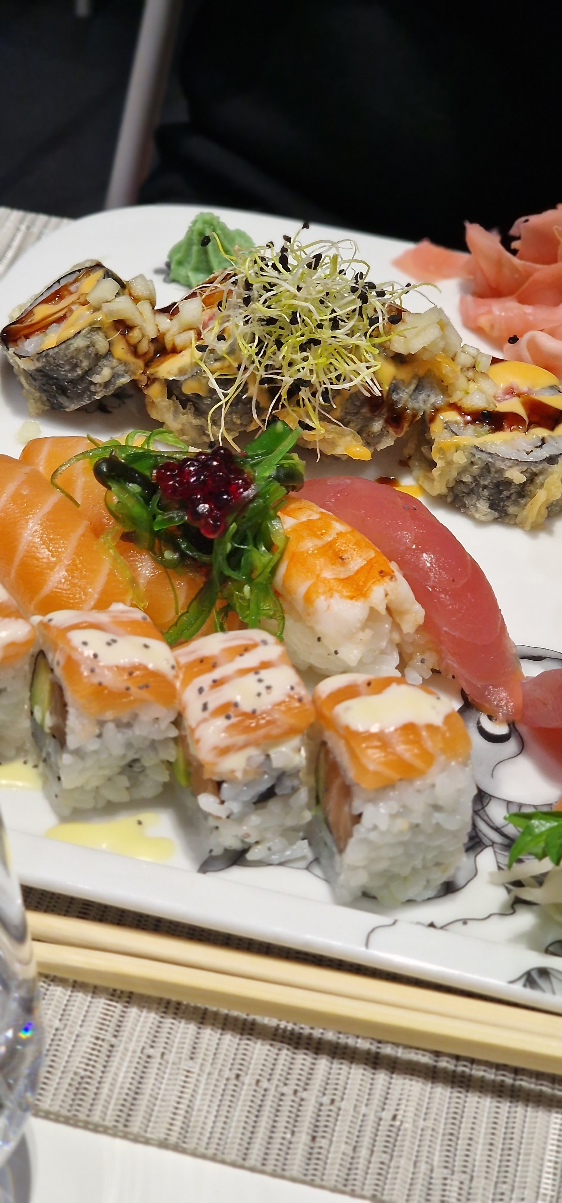 Très jolie établissement, un très bon accueil, les serveurs sont très gentil et à l'écoute. Les sushis sont très bon, un peu déçu du ramen au poulet mais le dessert incroyable.