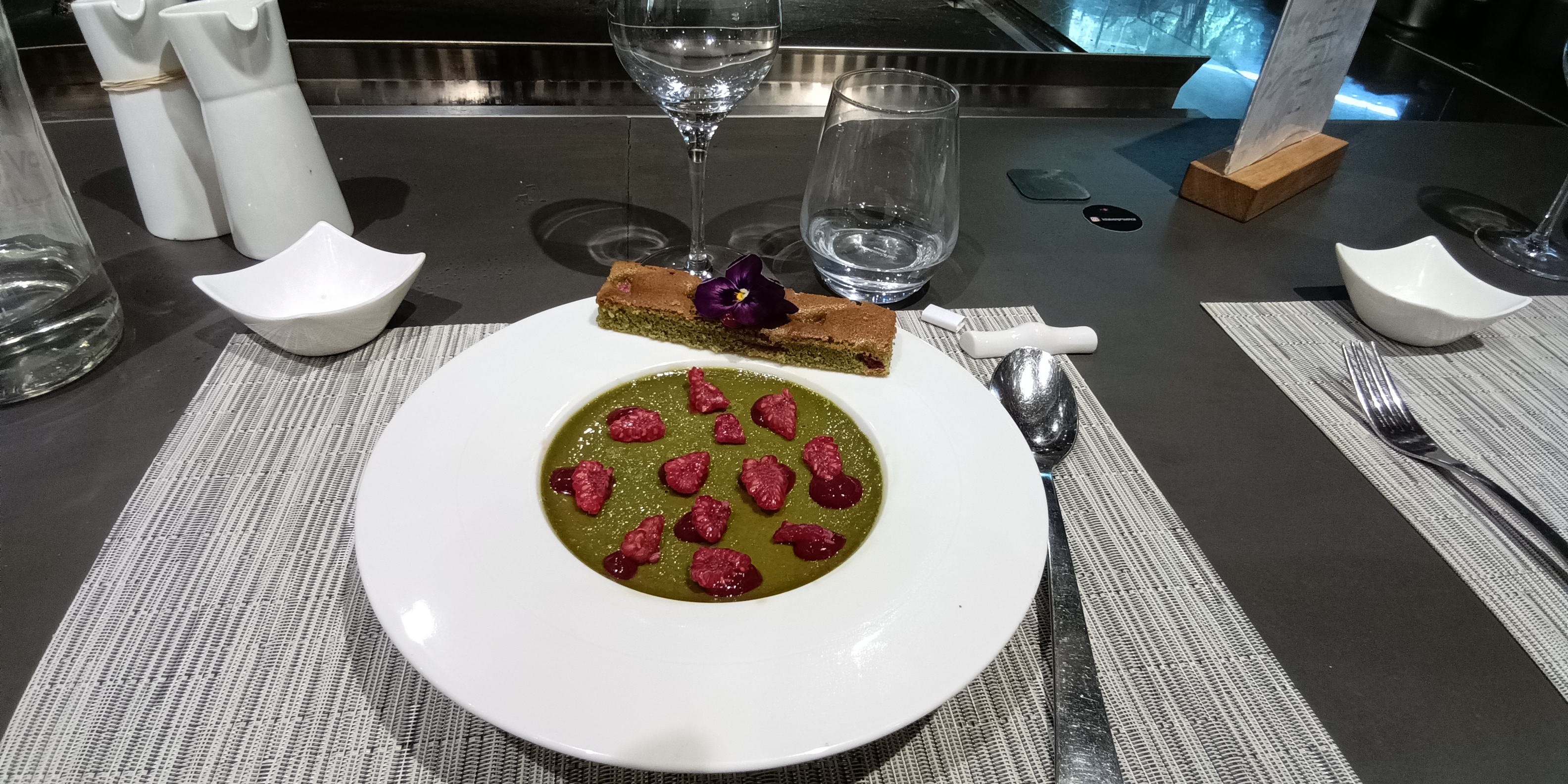 Au hasard d'une promenade, nous avons eu la chance de pouvoir y diner face au chef qui nous a offert un spectacle inoubliable, jonglant avec ses couteaux et maniant humour et cuisine haut de gamme à la perfection. Un moment inattendu, un restaurant raffiné de la décoration aux présentations des plats, en passant par un service impeccable bien que long (victime de son succès !). A faire absolument, reservation recommandée !