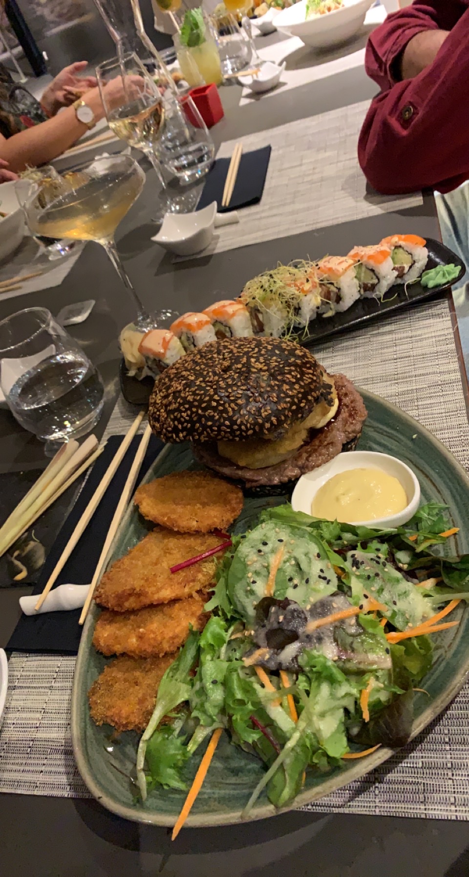 Ce restaurant est une tuerie. J’ai déjà testé plusieurs plats et je n’ai pas été déçue. Le wagyu burger (20,5€) est excellent et les sushis n’en parlons pas (le goût est à la hauteur de la présentation). Cependant le prix des sushis est assez cher si vous voulez avoir une quantité raisonnable (27,2€ les 20).