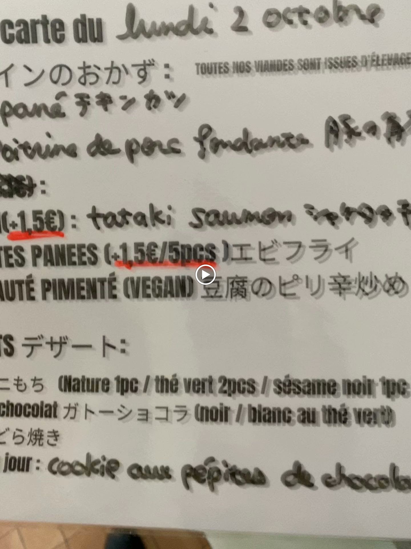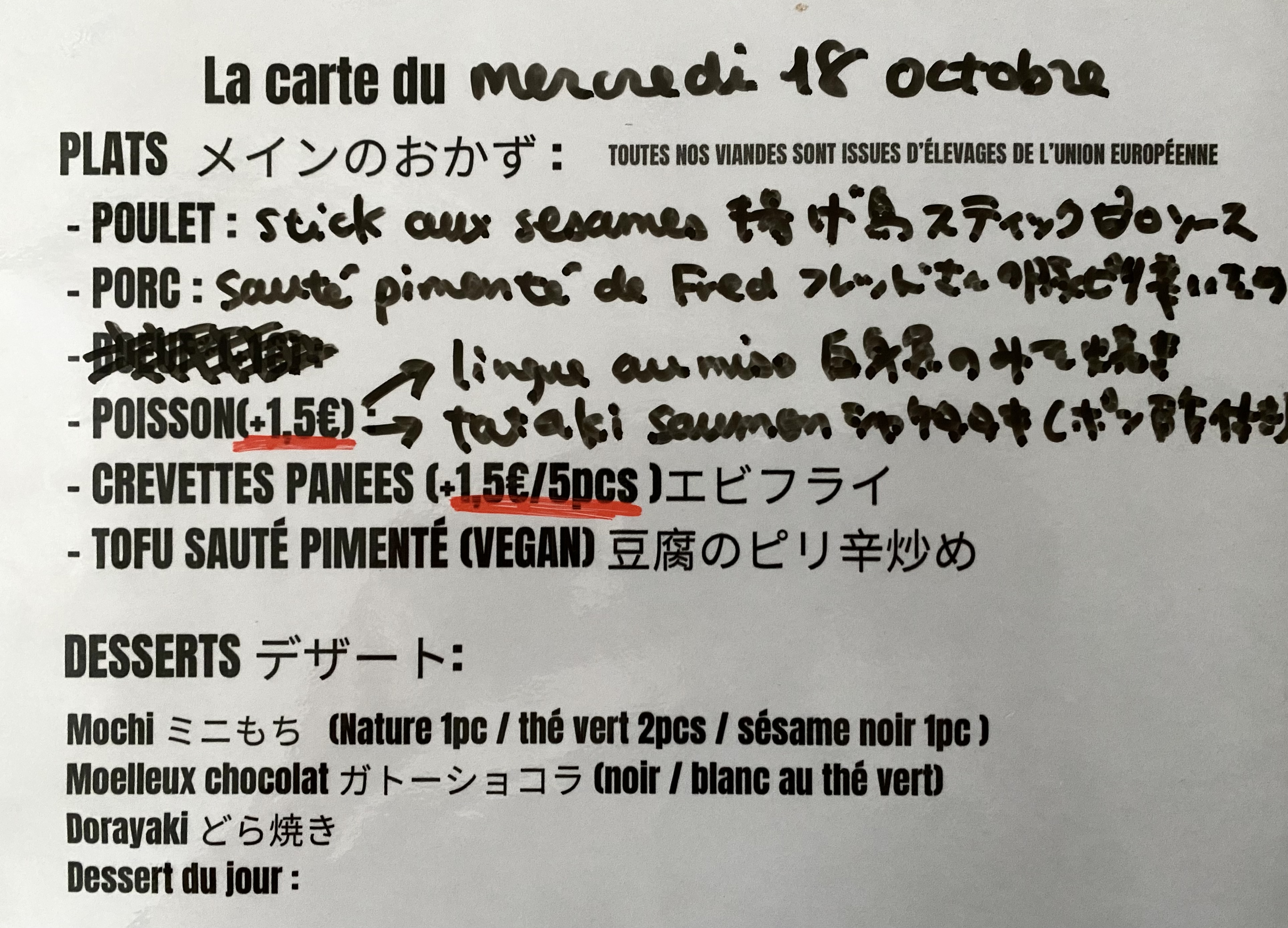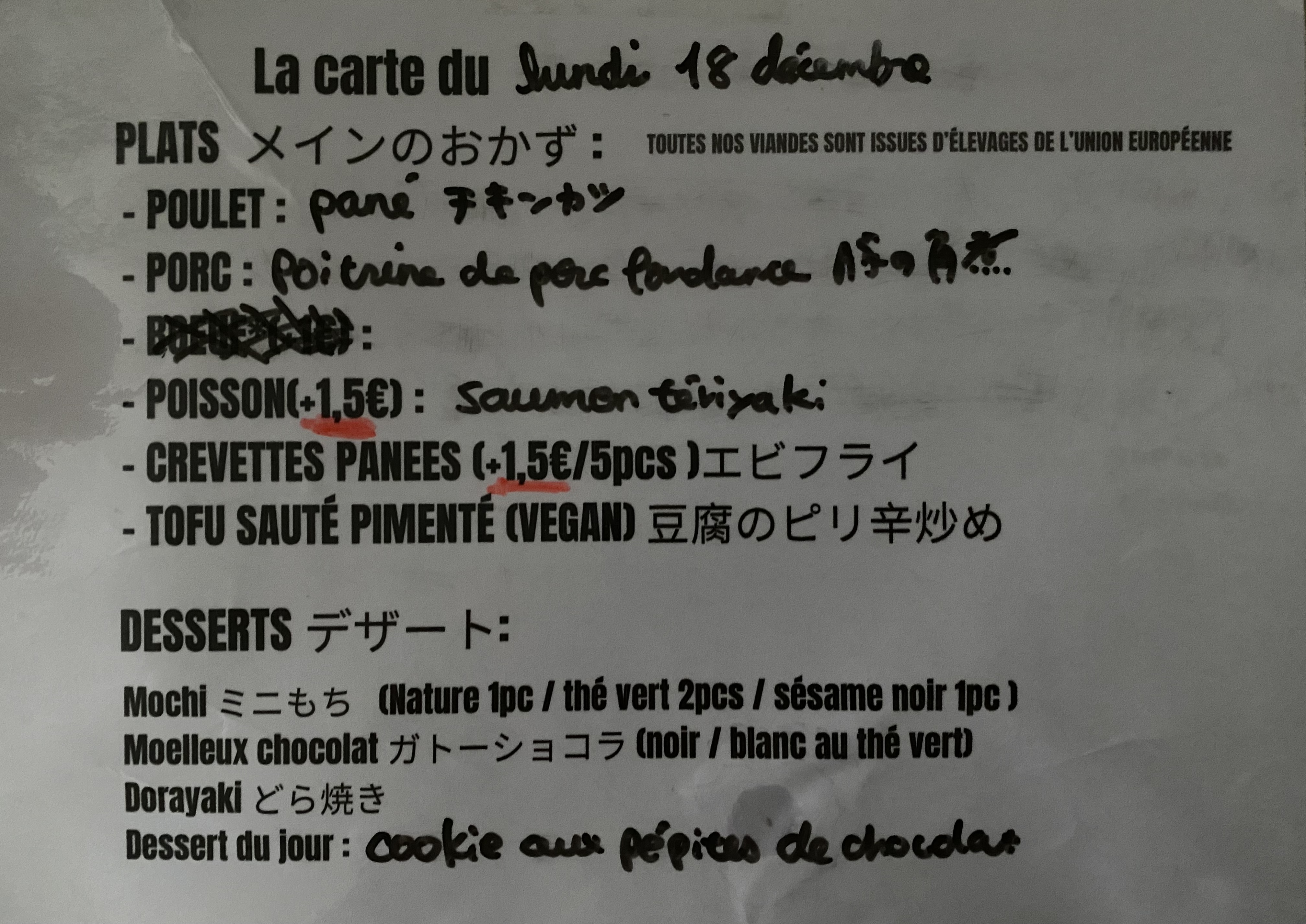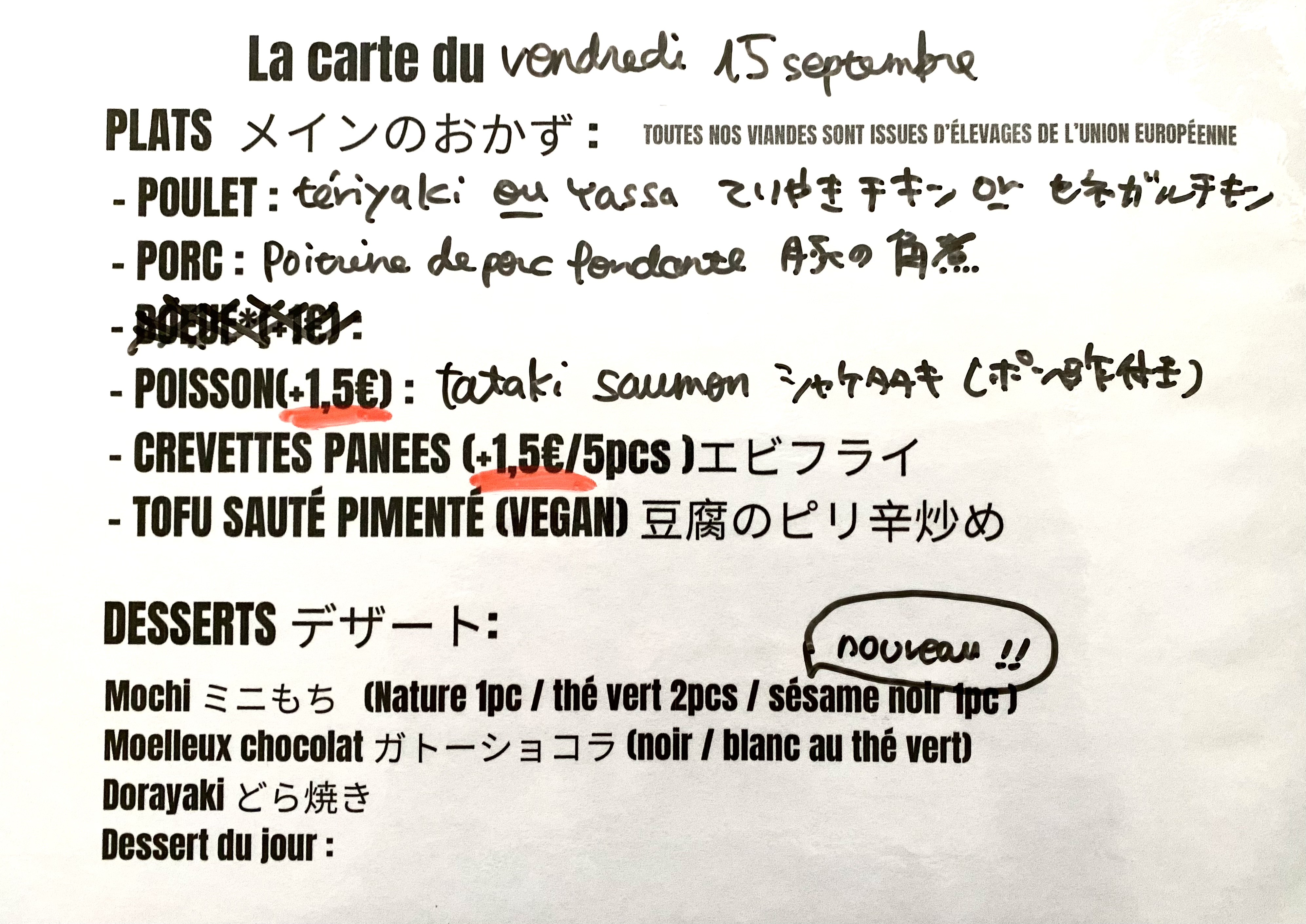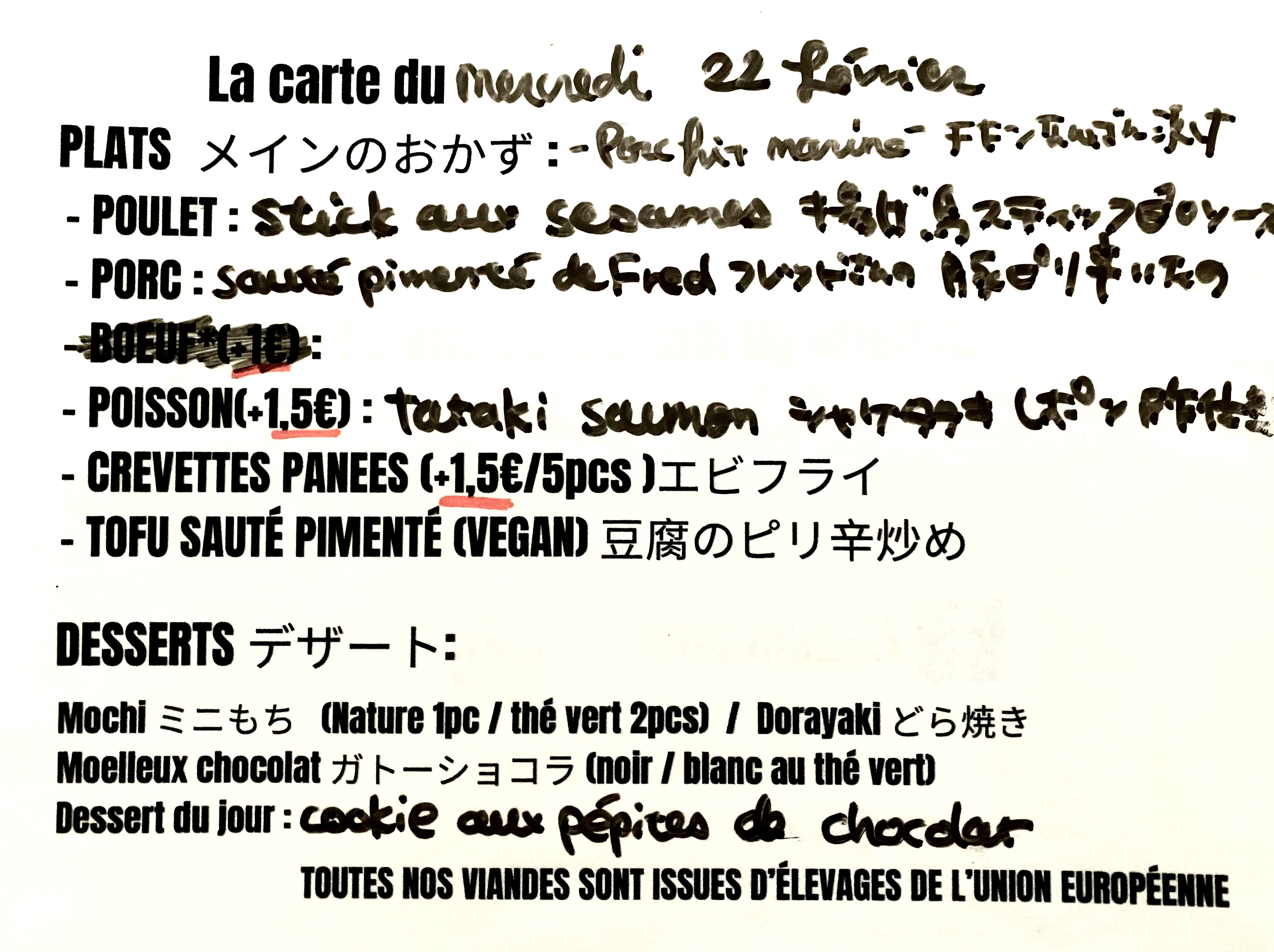 supers bentos japonais authentiques, copieux ! Attention quand même les aliments sont épicés, parfois piquants. Bons desserts aussi mais on a pas pu les manger on les a gardés pour le goûter :-) Les gens du quartier ne s'y trompent pas et il y a vite la queue... Update : seconde visite aujourd'hui après 3 mois passés. Pas de changement à signaler. Le poulet aujourd'hui était préparé avec une recette différente mais a choisir avec le boeuf ou le saumon tataki, le porc sauté épicé ou le tofu épicé c'est toujours le poulet qui remporte les suffrages pour nous.