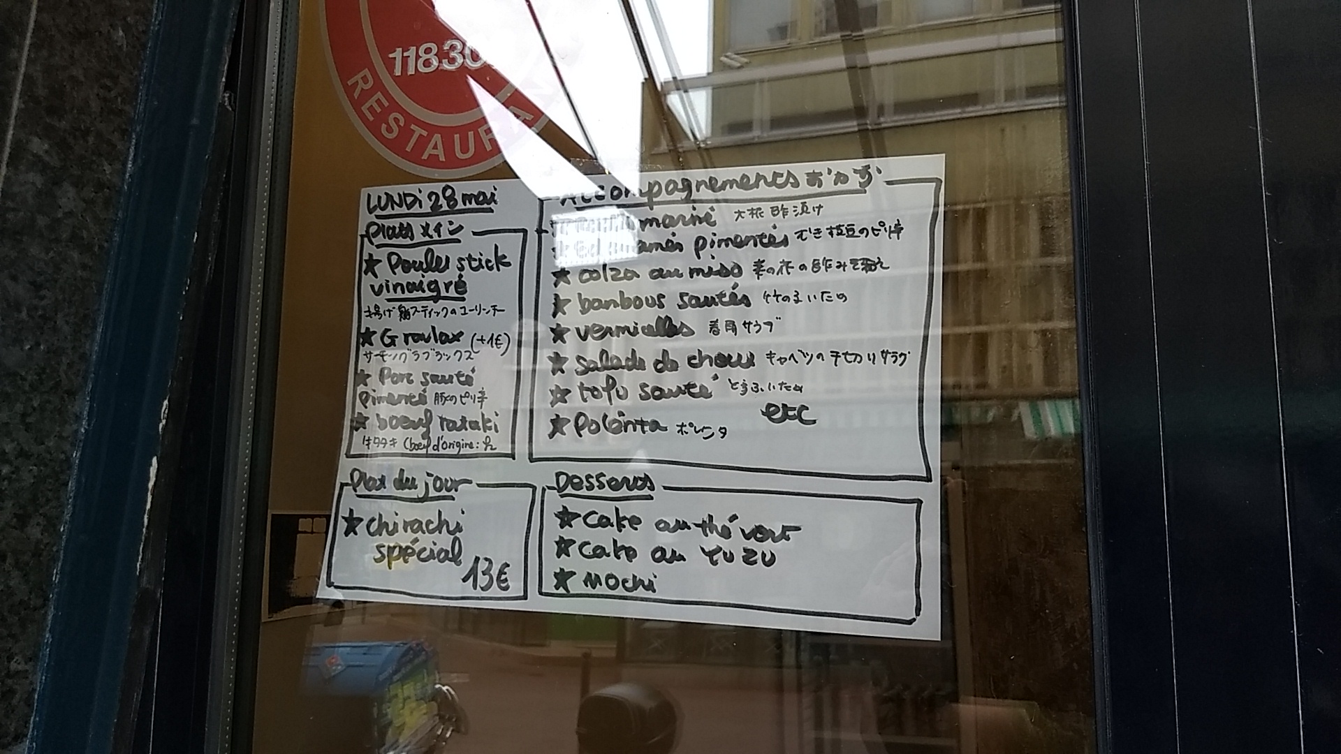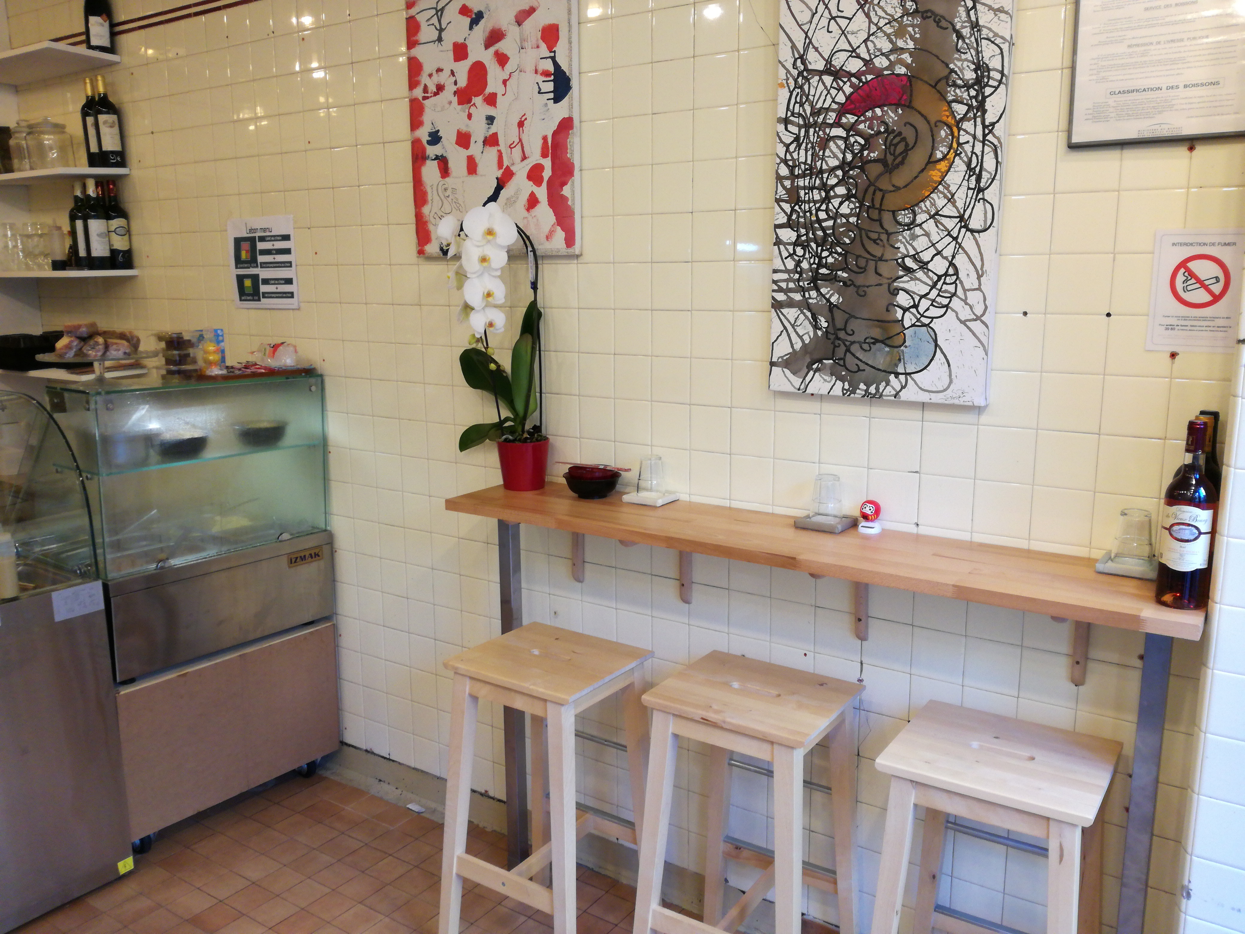 Cuisine japonaise traditionnelle. Ce petit kiosque est tenu par un couple Franco-japonais. La carte est courte, des bento traditionnels, une petite sélection de sushis et chirashi et un ou deux plats du jour. Bon le tarif est assez élevé, comptez en moyenne 15€ si vous rajoutez une soupe miso maison (excellente par ailleurs), il faut évidemment tenir compte du quartier.