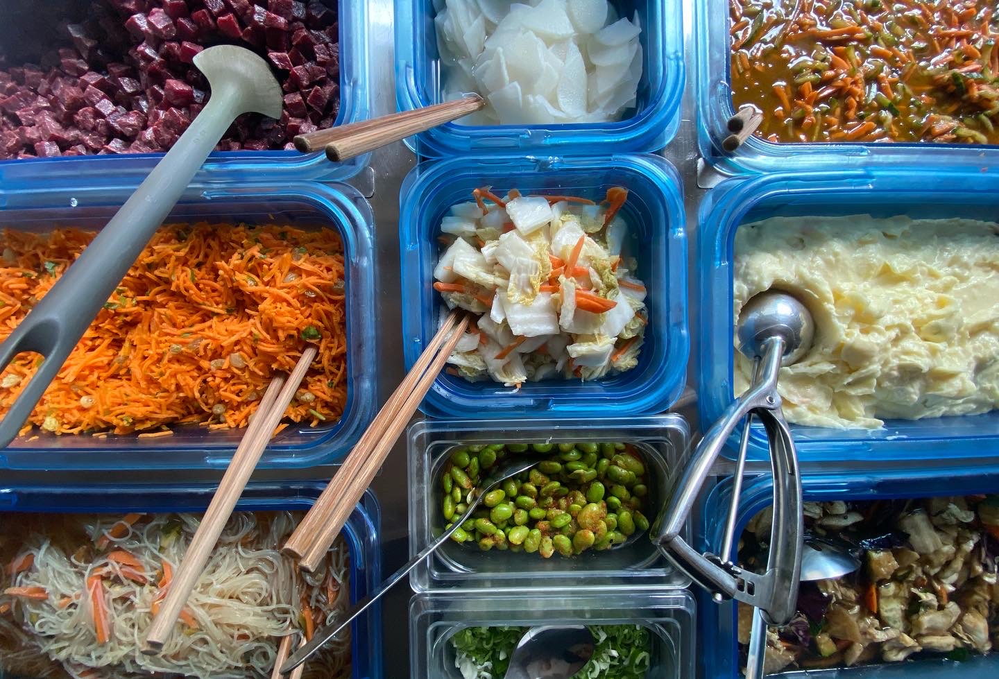 super concept: vous composez votre plateau avec une viande ou un poisson, du riz nature, 1 2 ou 3 accompagnements. La carte change tous les jours, les produits sont frais, les plateaux sont copieux, et l'équipe très sympathique