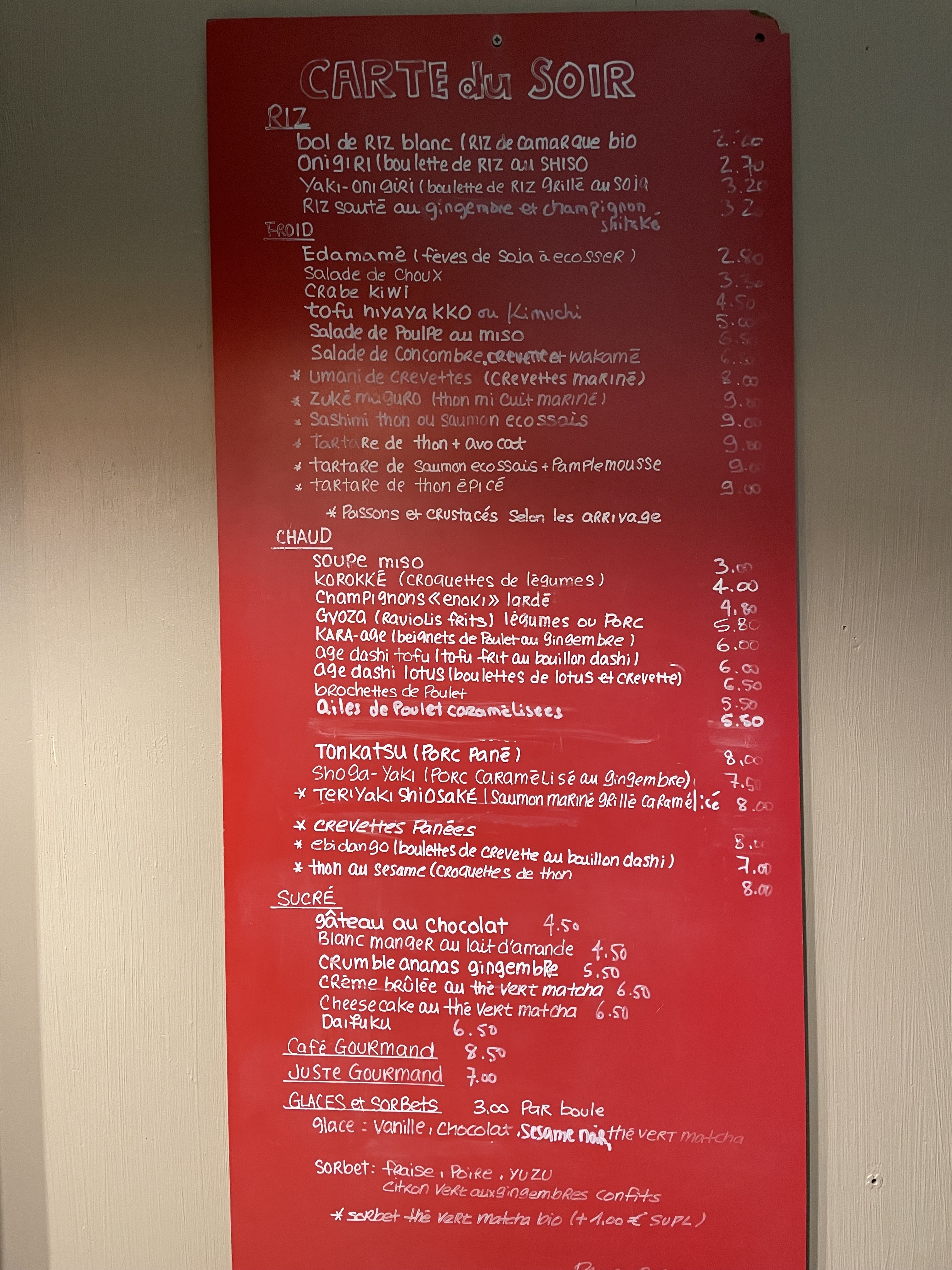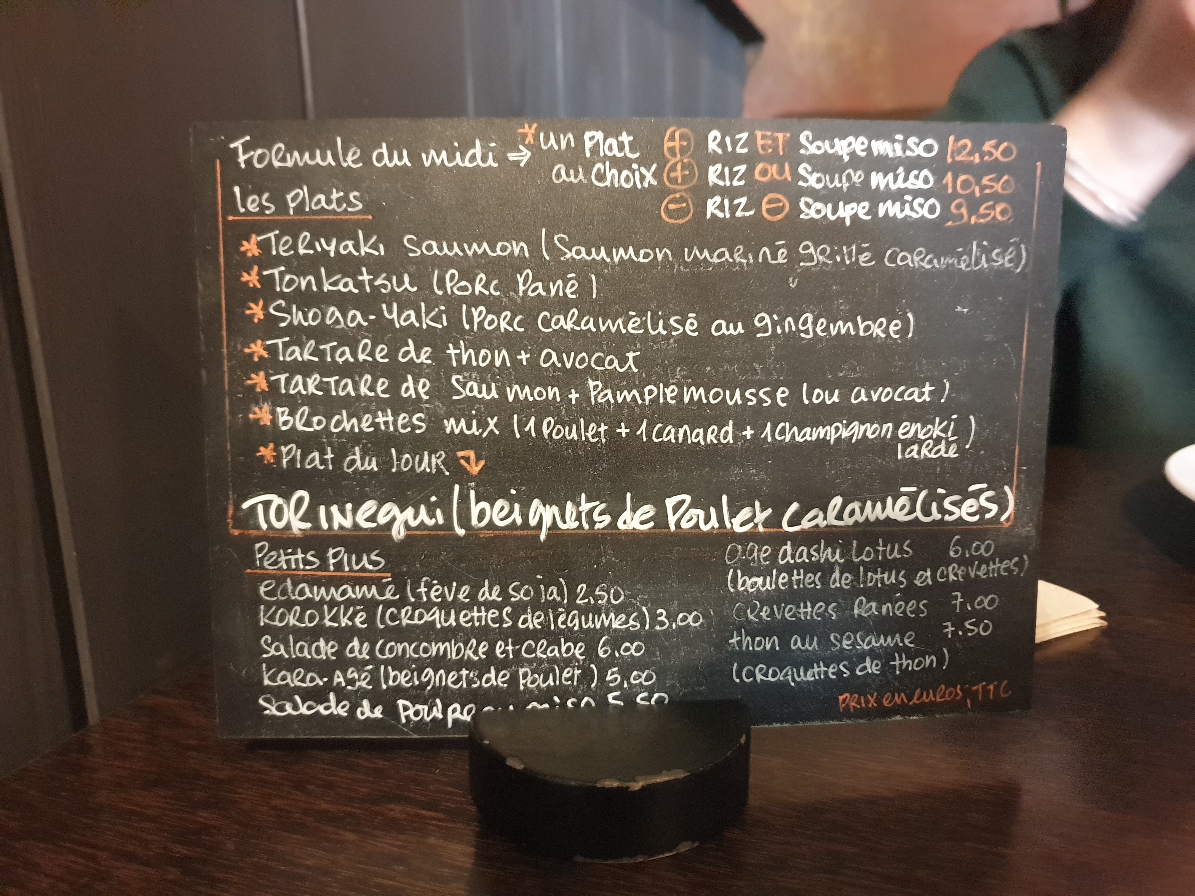 Très bon bistrot japonais où il fait bon déjeuner ou dîner avec une carte Eloignée des sempiternels sushis laissez vous tenter par le tataki de thon, le tonkatsu, une soupe miso excellentissime et un daifuku un singulier dessert aux fruits et farine de riz. Pour arroser tout cela adoptez une bière coedo ou un junmai un saké qui sait si bien se poser sur les spécialités maison. C est pas si loin le Japon finalement ...😀
