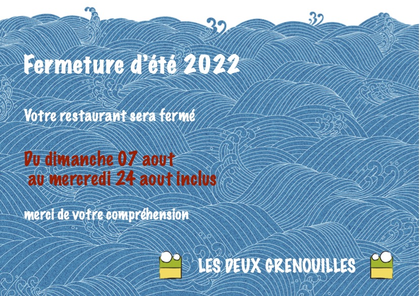 6 mois que j'essaie de commander à emporter, 6 mois que je fais face à des refus toujours plus lunaires... C'est presque devenu un running gag entre amis; Quelle sera donc la raison invoquée aujourd'hui pour ne pas nous servir ? Godzilla qui attaque Castelnau le lez, le retour du seiitaishōgun, Tsukuyomi à Sablassou, L'Empereur Jinmu qui privatise le restaurant, une ningyo qui débarque sur les plages de Palavas etc... Bref, vous l'aurez compris, si vous désirez manger aux deux grenouilles armez vous de patience car l'attente sera longue et comme le disent si bien nos confrères nippons ishi no ue nimo sannen (la patience vient à bout de tout mais surtout de la faim ^^) SAYONARA ! PS : Je vous mets 5 étoiles parce que je suis gentil et que mon commentaire ne concerne pas votre KOUISINE !