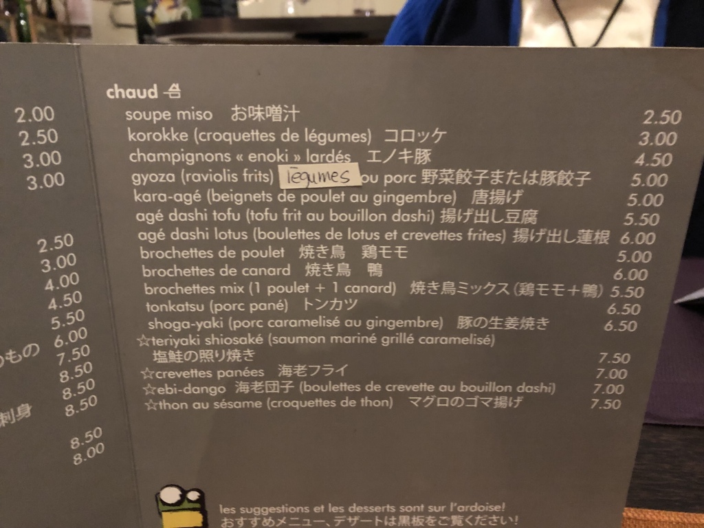 Vous en avez marre que la cuisine japonaise se résume aux sushis ? Allez donc faire un tour au deux grenouilles, vous y découvrirez une autre facette, plus authentique, de la cuisine japonaise faites avec des produits frais et du jour. Une excellente carte des vins et de saké. Je vous conseille le tonkatsu, les Kara-age, les onigiris ou encore le tofu hiyayakko.