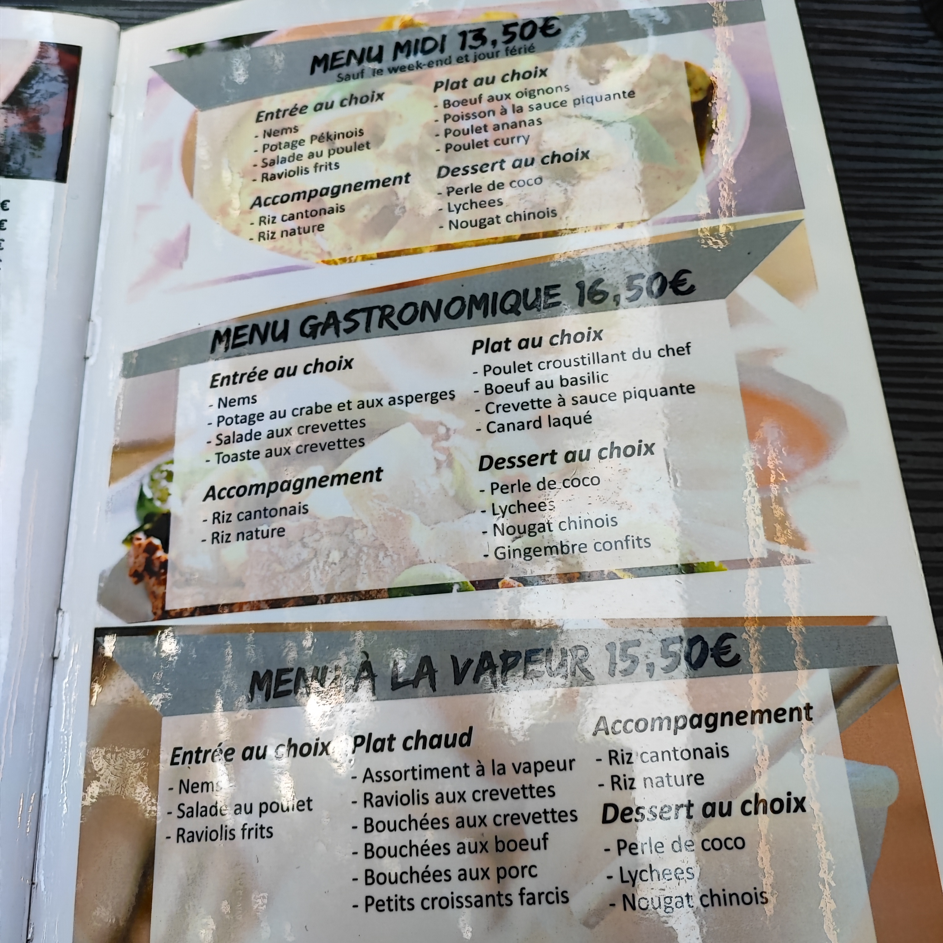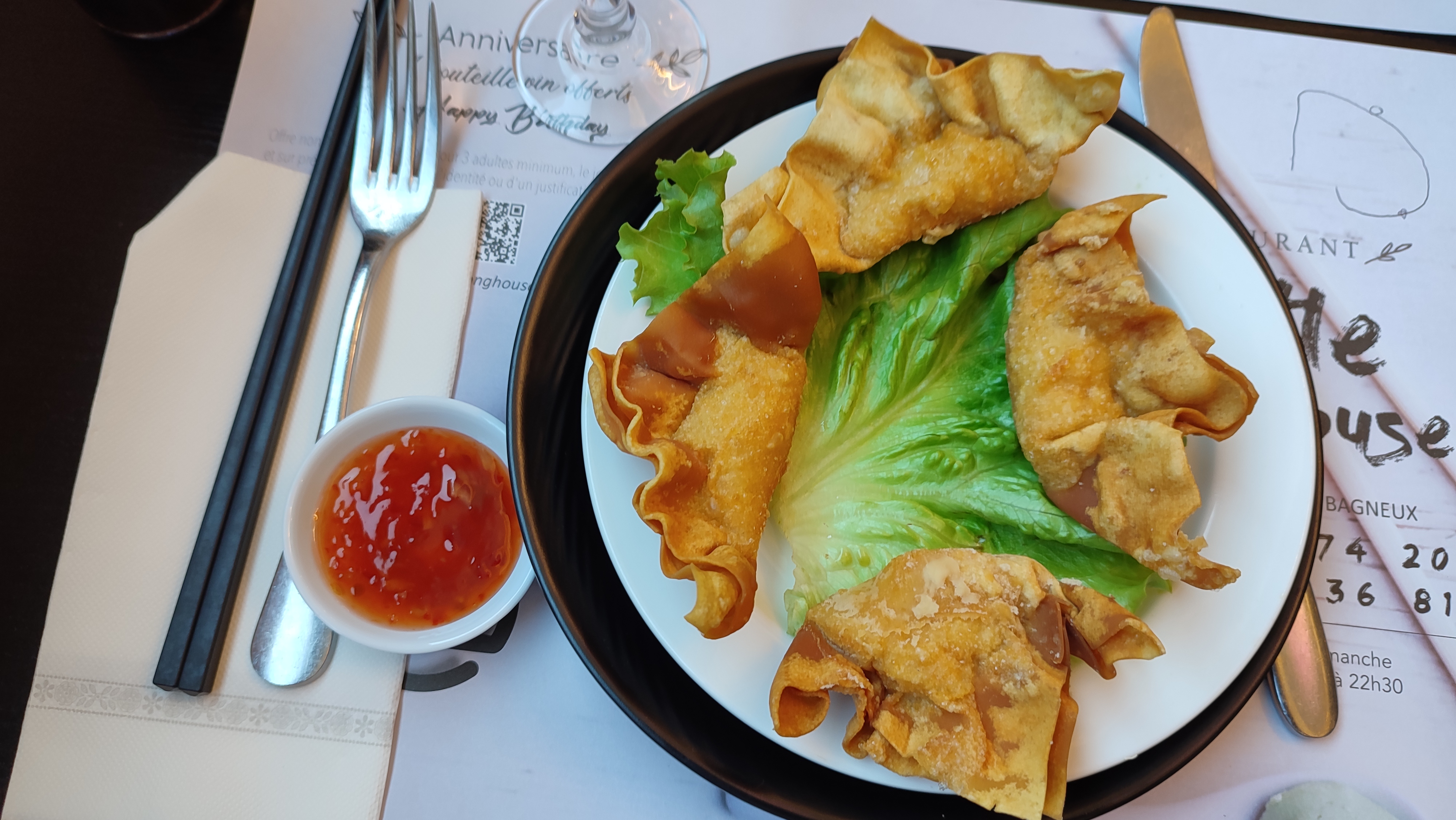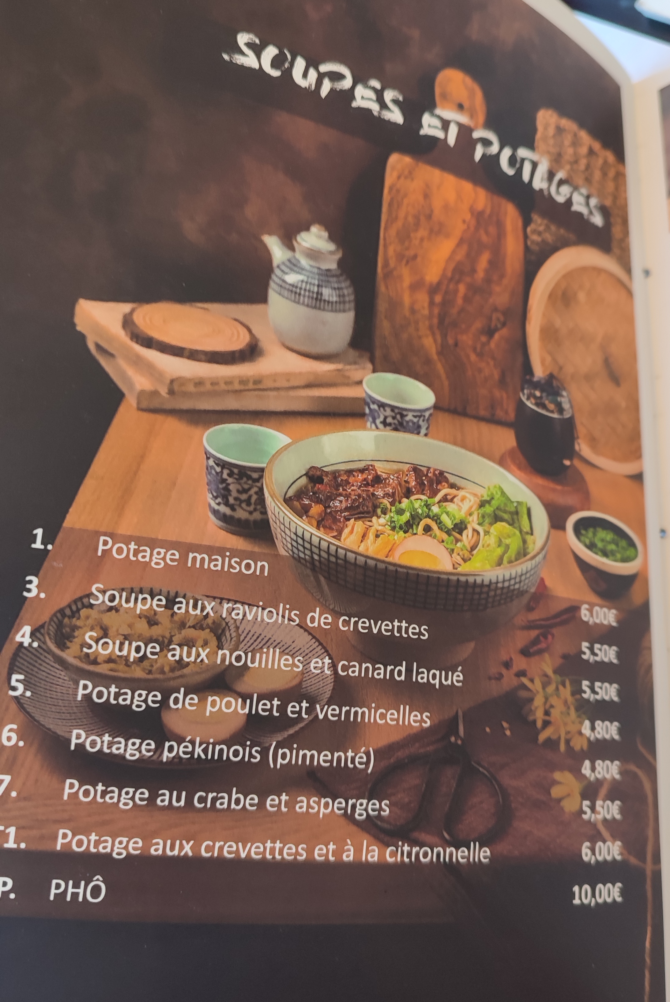 Bon point, le personnel est agreable et le bouillon de la soupe pho etait bon. Mauvais point par contre, les legumes chop suey etait essentiellement des pousses de bambou sans gout et dans une grande quantité de gras, les raviolis pekinois sans saveur particulière non plus et les lamelles de boeufs de la soupe aurait mérité d'etre coupées plus finement. Dans l'ensemble la nourriture est très moyenne, je ne pense pas maison sur certain plat. La carte etant sans fin avec presqu'une centaine de plats... Heureusement l'équipe de salle est agreable.