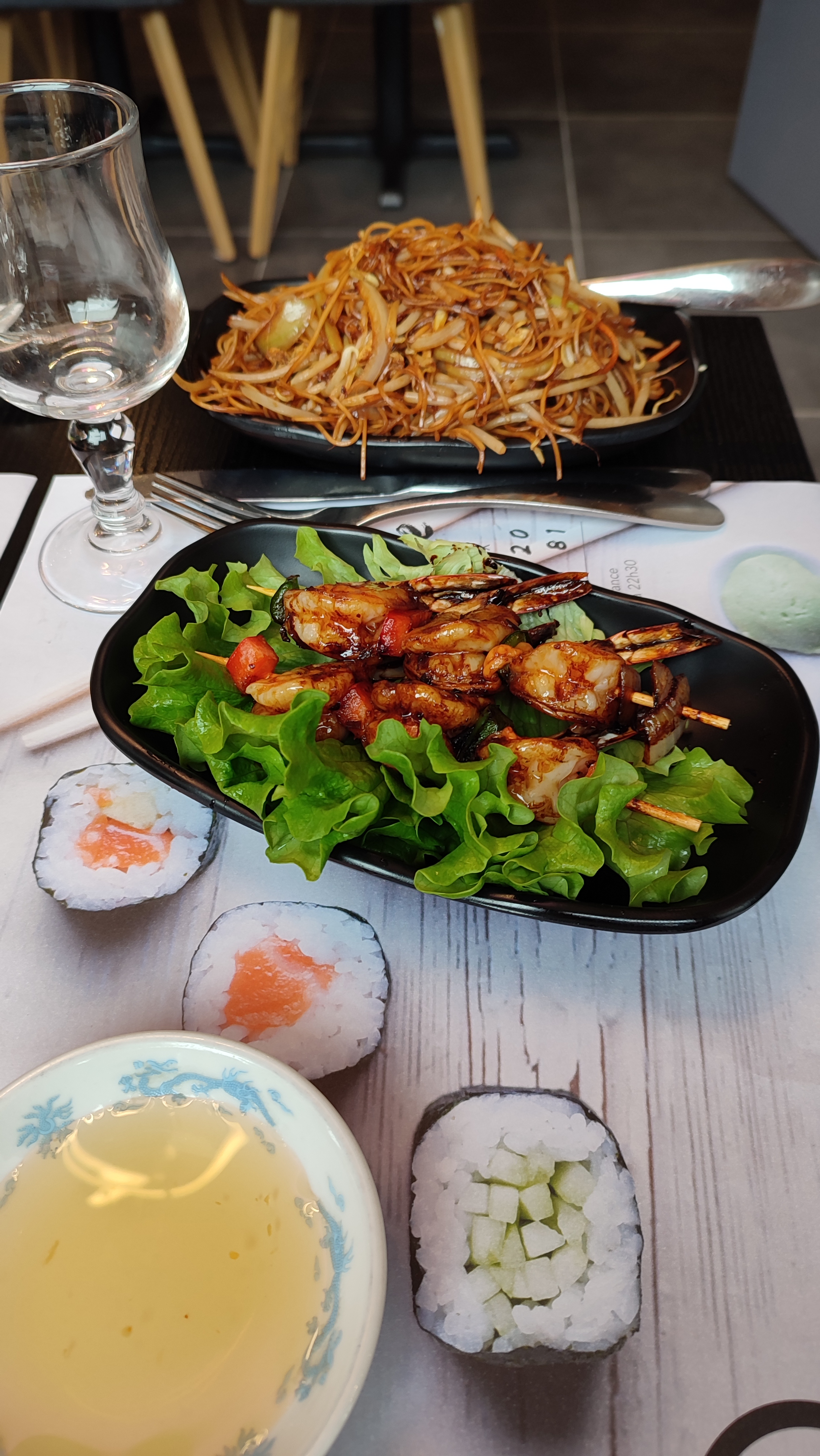 La décoration est belle, le service est très bien et il y’a un grand nombre de choix que ce soit japonais ou chinois.