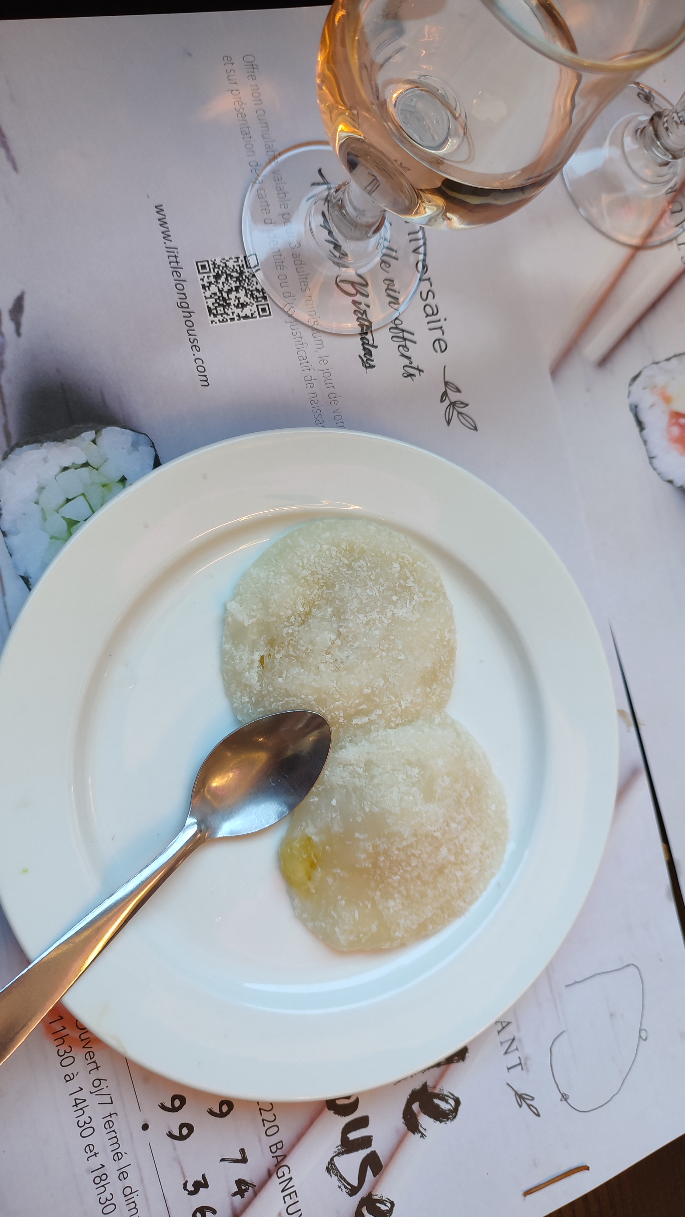 D'excellents petits plats pour réveiller les papilles ! Je me suis régalé avec les gyozas et le canard laqué est une tuerie !!! Les perles de coco m'ont fait penser à des moshis, très délicates. J'y suis allé en soirée en semaine, service rapide et sympa 😀 Bref, allez y, revenez y, vous ne serez pas déçu !!