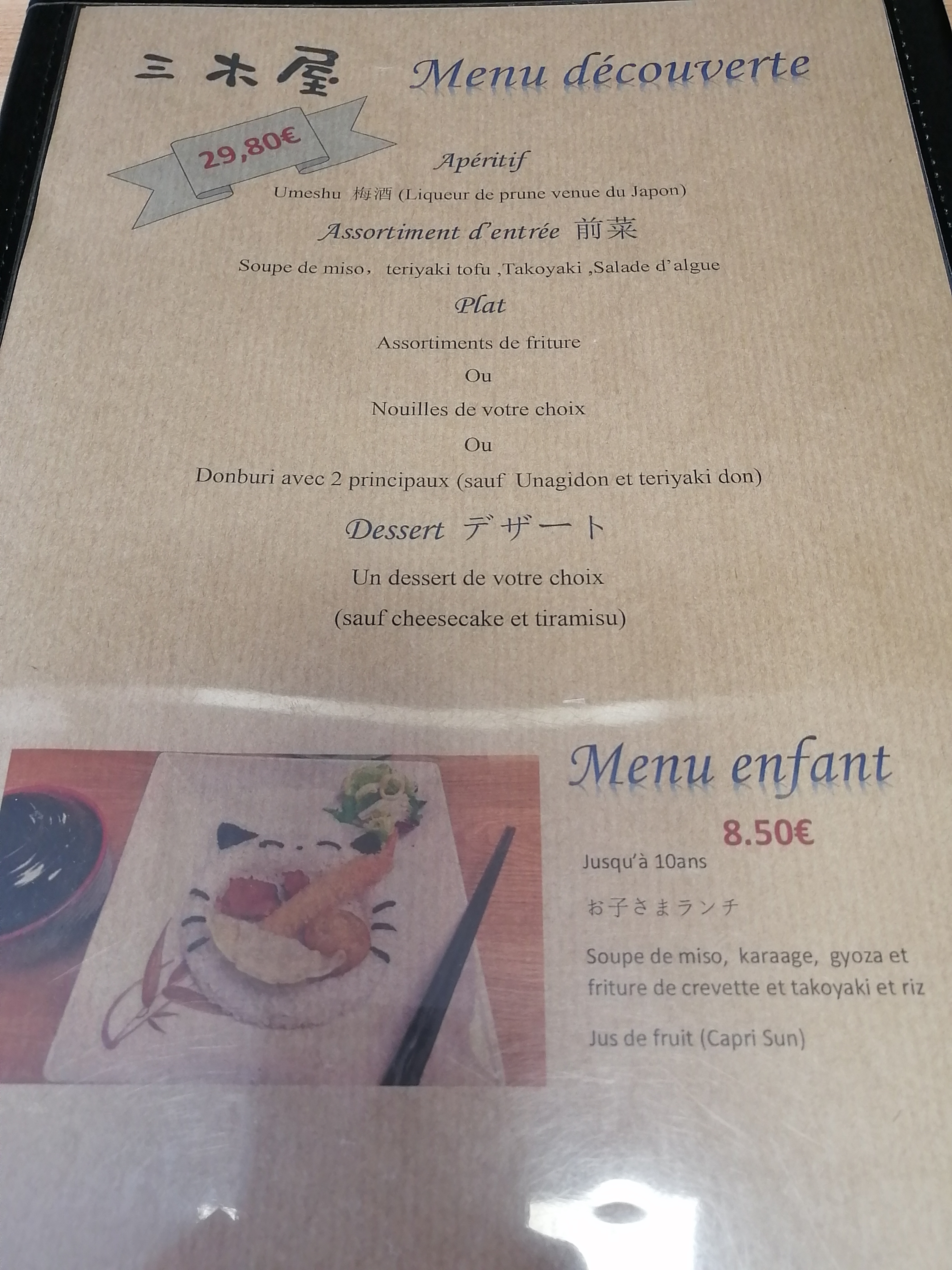 Globalement, tout était bon, notamment l'Oyako don (omelette de poulet) ! Dommage que les mochis et le dorayaki ne soient pas fait maison. Quant au service, nous l'avons trouvé un peu long mais nous n'étions pas pressés. Nous recommandons ce restaurant japonais.