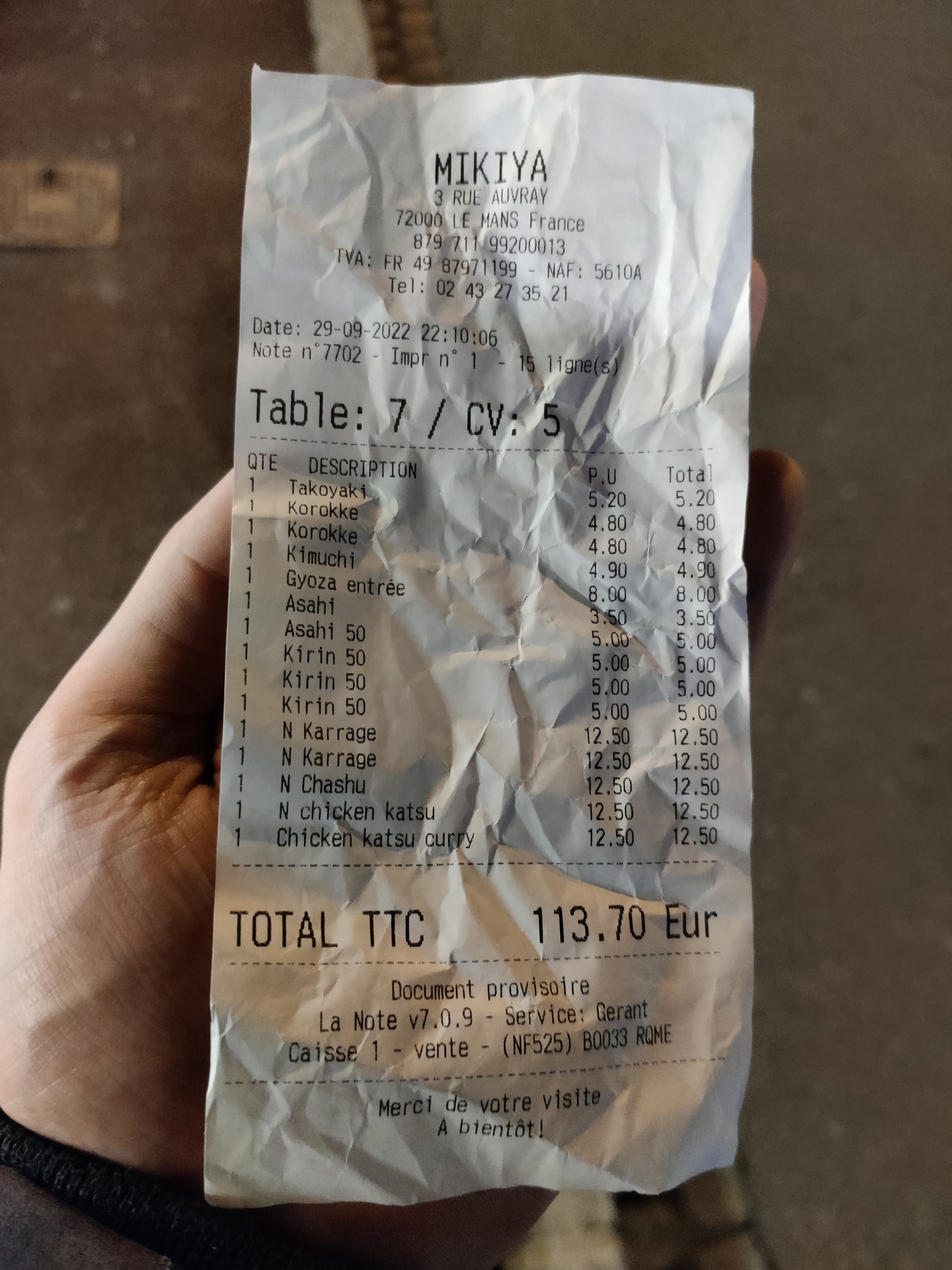 J'ai pris un ramen mais la qualité n'est même pas proche d'un ramen japonais. Très triste car il n'y a pas d'autre ramen japonais au Mans. J'ai également essayé le gyoza et ce n'était pas meilleur que le gyoza congelé que vous pouvez trouver dans un magasin Picard.