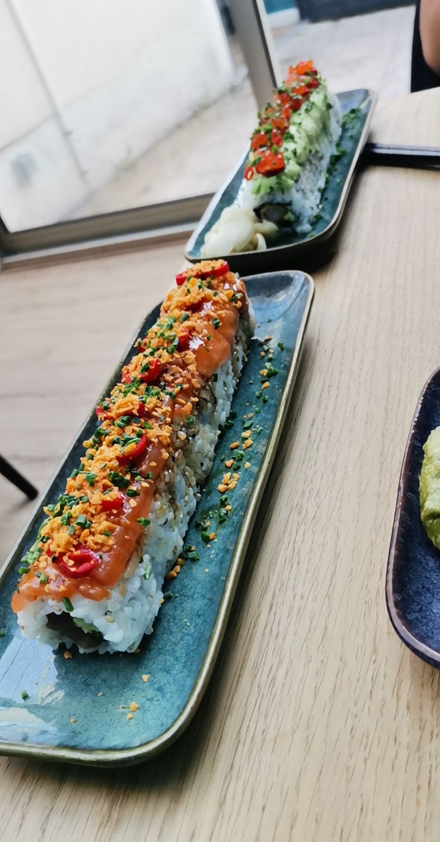 Excellent !! Sushi frais ! Très bien présenté Des springs rolls au saumon avec de la menthe.. Un régal 👌
