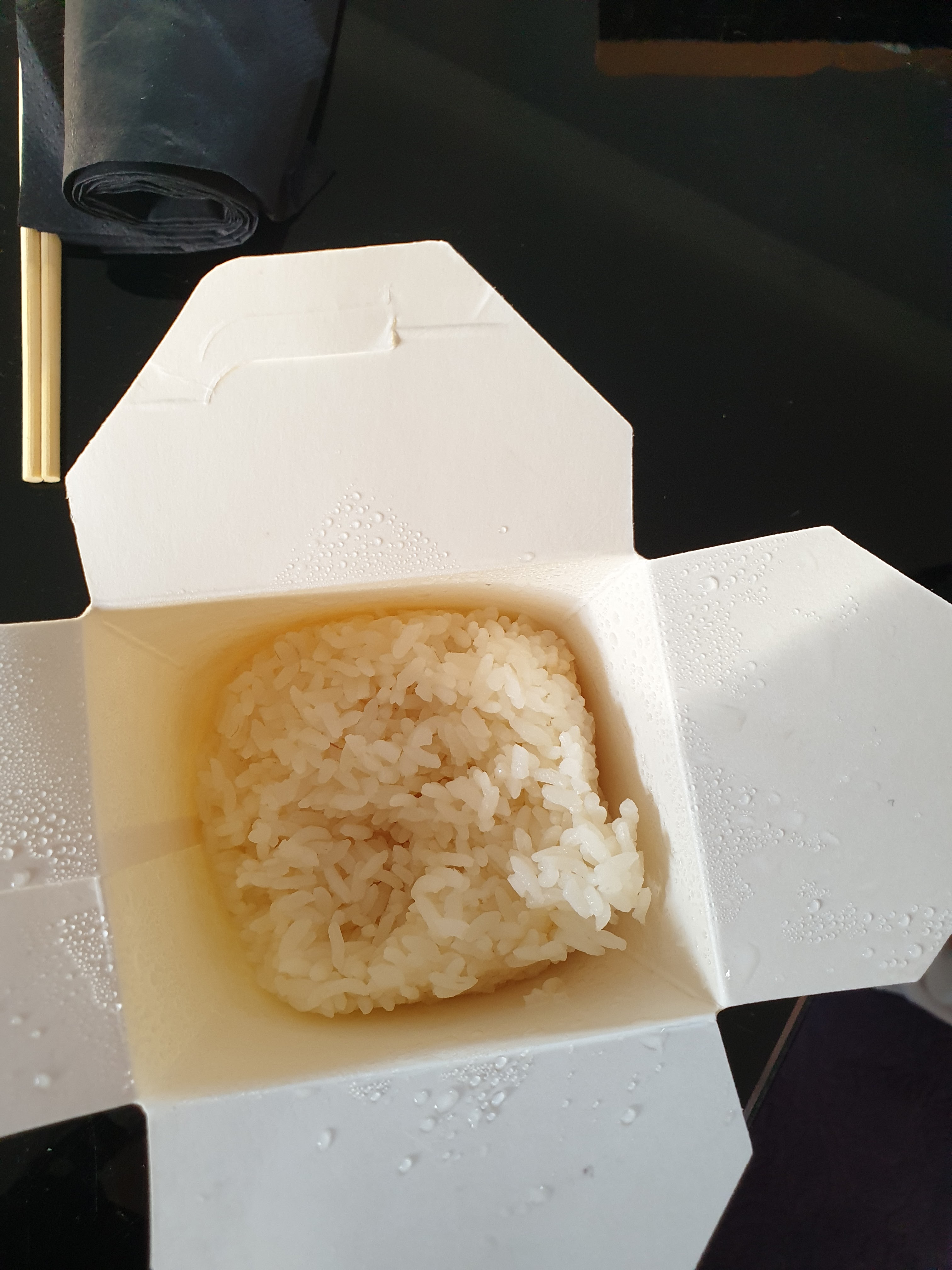 Temps d attente raisonnable. Saumon et avocat bons. Riz très mal cuit Très peu de Quantité pour un prix exorbitant.