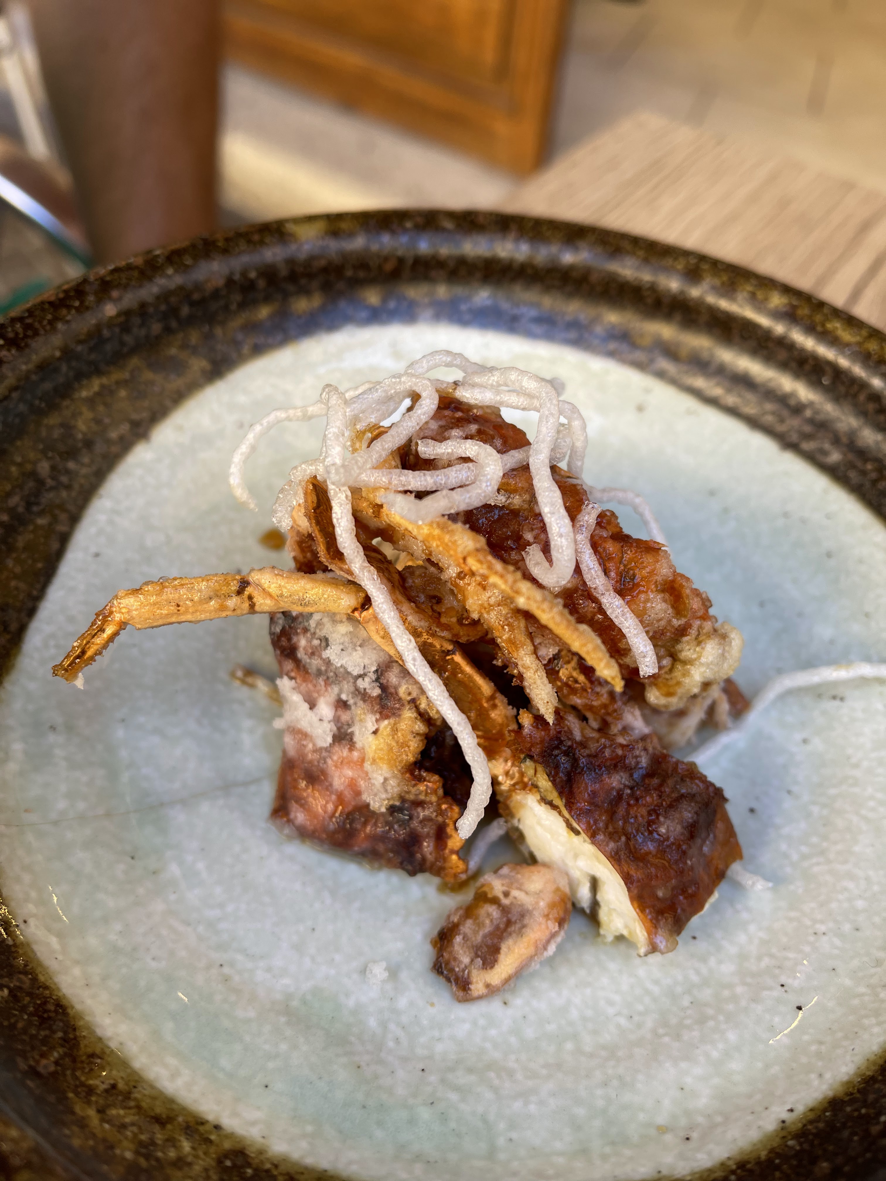 Un japonais qui sort des sushis brochette et qui fait voyager. Très bonne adresse Le crabe a carapace molle est assez surprenant. Petit restaurant mais agréable avec petite terrasse dans la rue piétonne. Bonne chance pour avoir une table :D mais la dame fait au mieux 👍