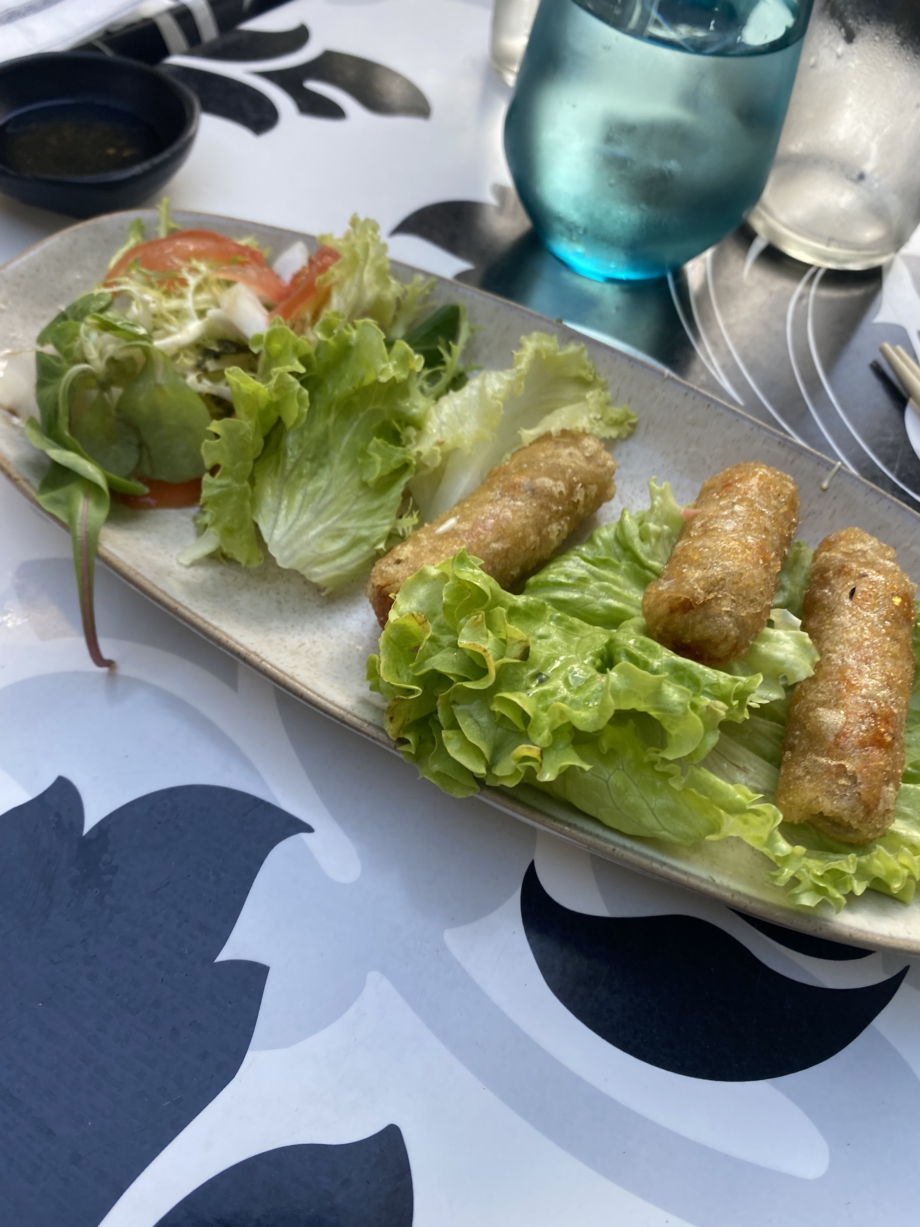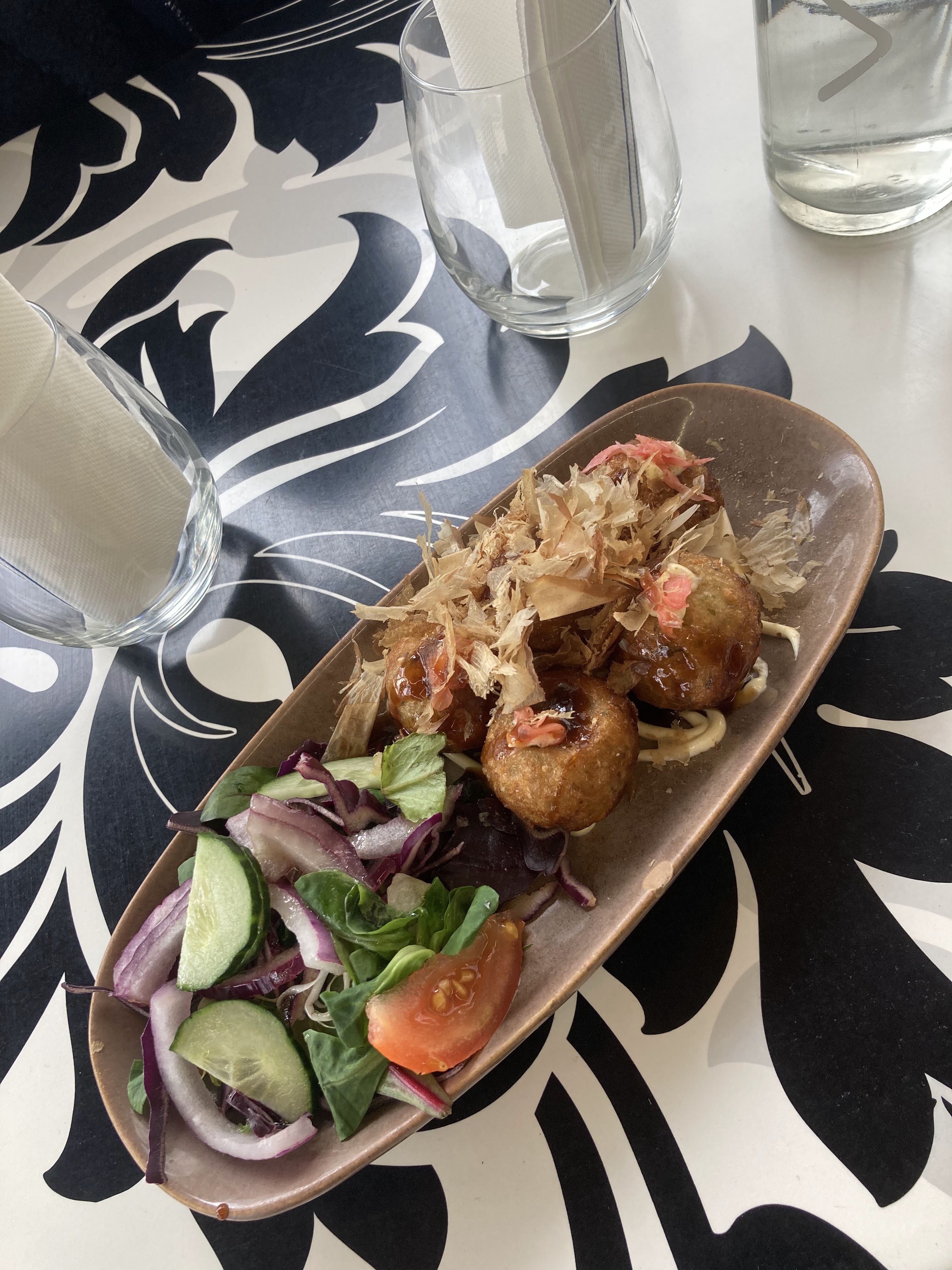 Une super surprise ! Un service agréable et rapide, des plats délicieux et bien présentés ! Très satisfaite des nems au porc et des sushis saumon- crème de fromage qui était excellent, la soupe miso est simple, bien salé mais très bonne, choux très bien assaisonné. On a eu une bonne surprise sur les tokoyami ( boulette de poulpes), moules bien assaisonnées et les frites sont excellentes. Niveau prix il faut bien compter 20€, à la carte c’est assez onéreux mais en menu c’est correct pour la qualité qu’on retrouve. L’intérieur est très bien décoré, la terrasse toujours très agréable avec la musique et le port. Au plaisir de revenir vite !